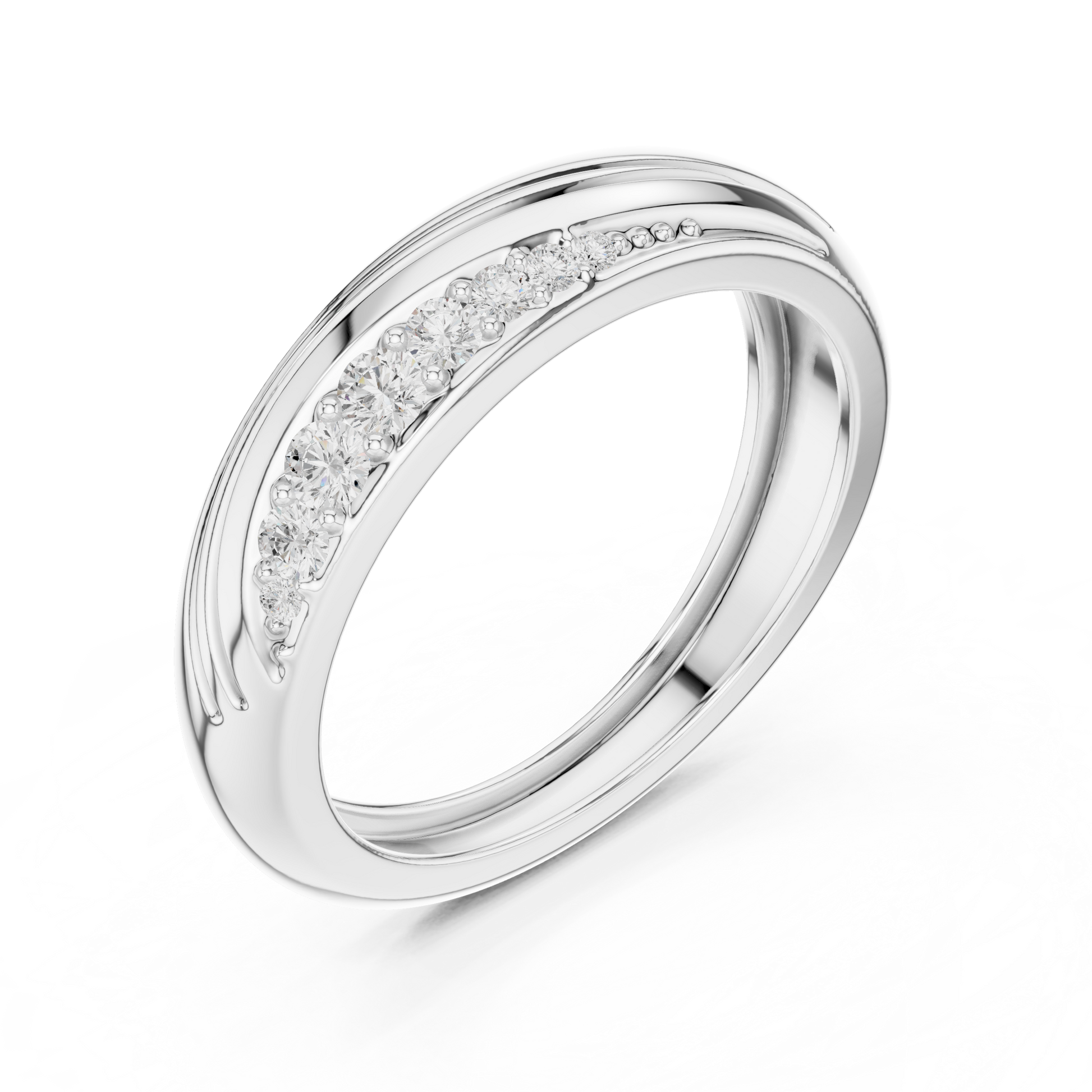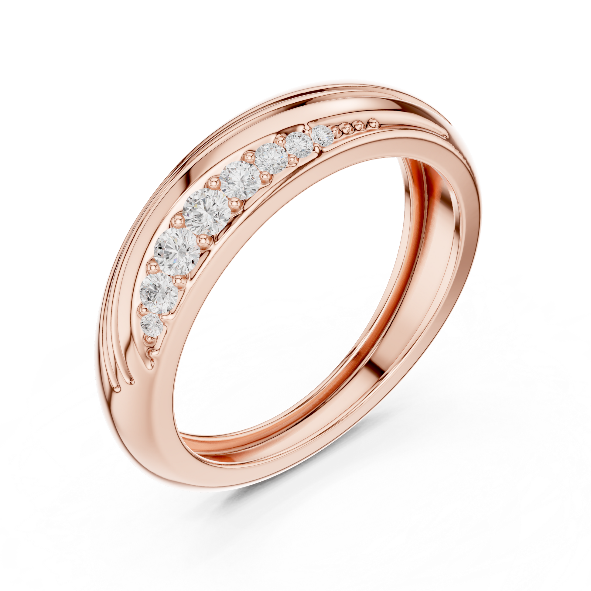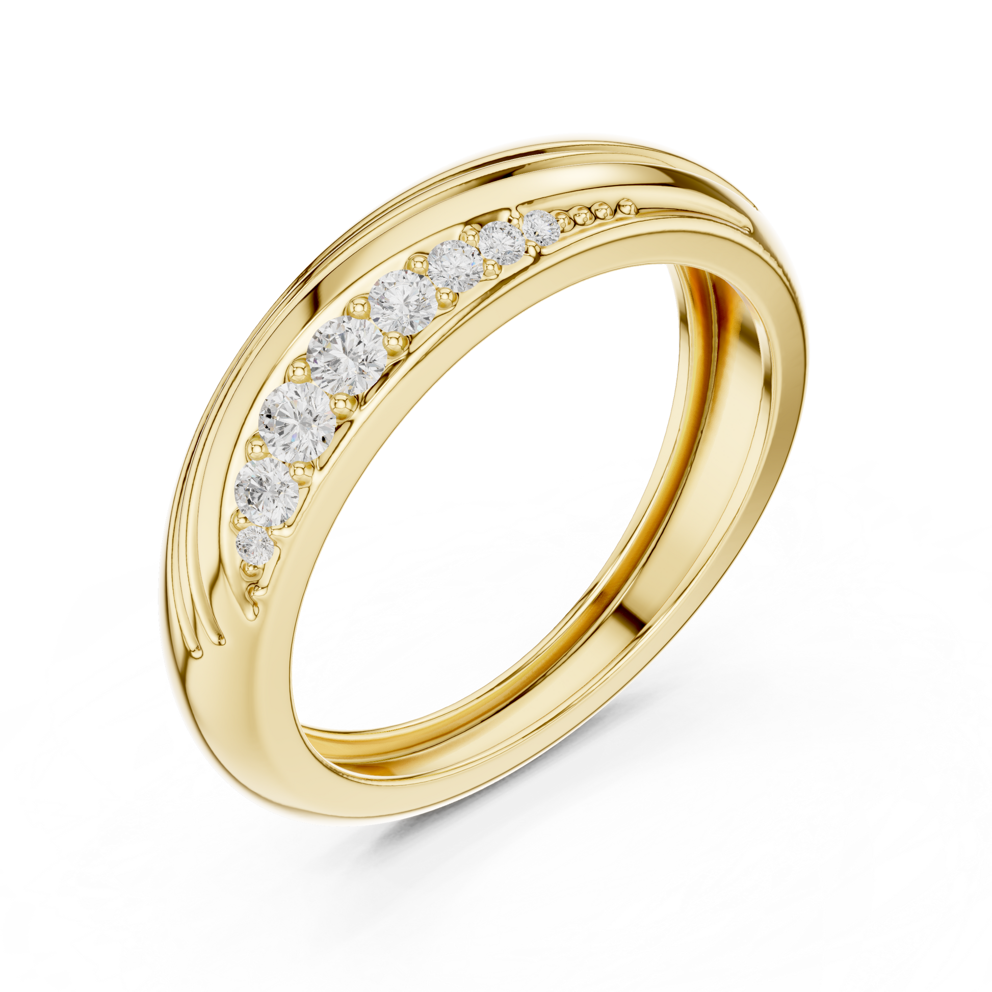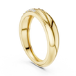 Crafted to embody movement, harmony, and modern luxury, this exquisite band features softly sculpted curves that flow effortlessly around the finger. The high surface reflects light with a warm, luminous glow, while a delicate row of precision-set diamonds is seamlessly embedded along the contour, adding a refined sparkle without overpowering the design.The fluid form creates a sense of natural motion and understated sophistication, making this ring ideal for those who appreciate subtle detail and contemporary craftsmanship.