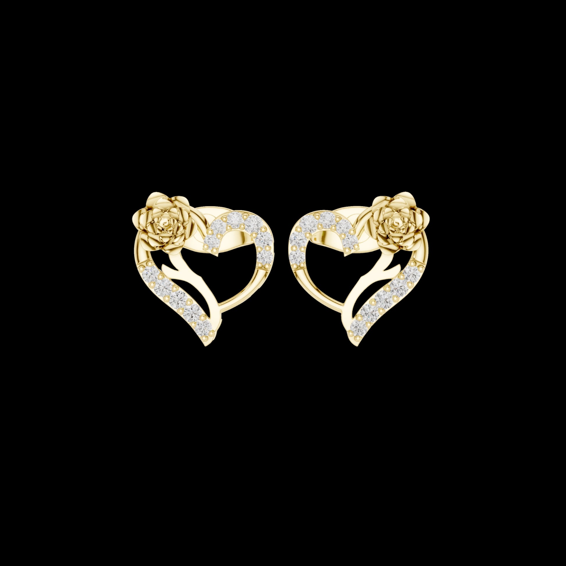 Celebrate love and elegance with these luxury heart-shaped diamond earrings, beautifully crafted in premium gold. The graceful open-heart design is accented with brilliant round diamonds, while a delicate gold rose motif adds a romantic and artistic touch. A perfect blend of romance, elegance, and luxury. Perfect for anniversaries, weddings, or everyday luxury,