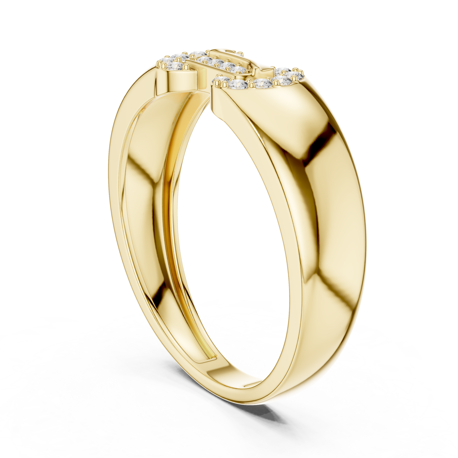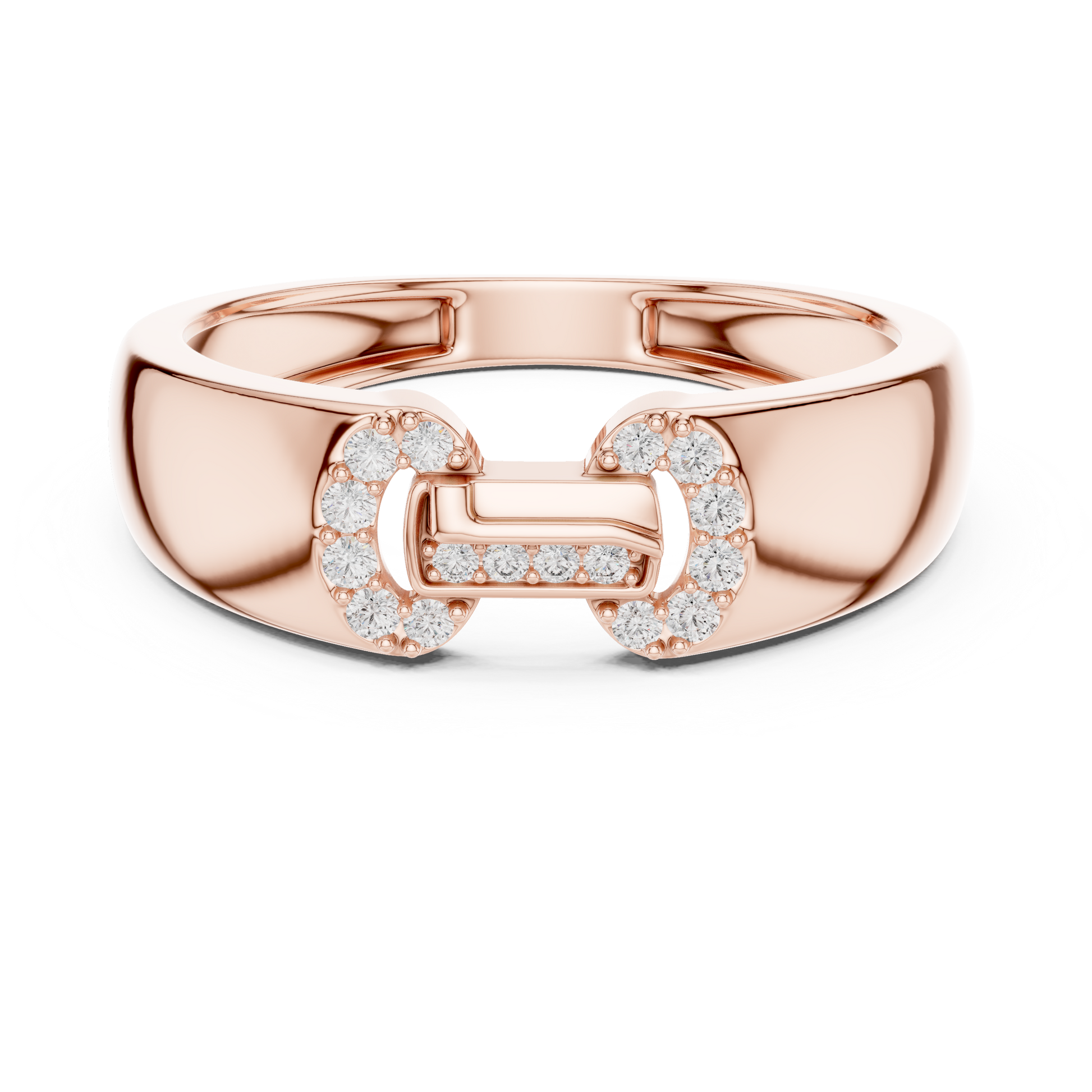 Crafted with bold sophistication, this exceptional ring from IVEVAR LUXURY embodies modern elegance and powerful design. Featuring a high-polish gold band with a distinctive diamond-encrusted buckle link centerpiece, this ring blends contemporary style with timeless luxury. The smooth, wide band offers a confident presence, while the precisely set round diamonds add refined brilliance without overpowering the design.
