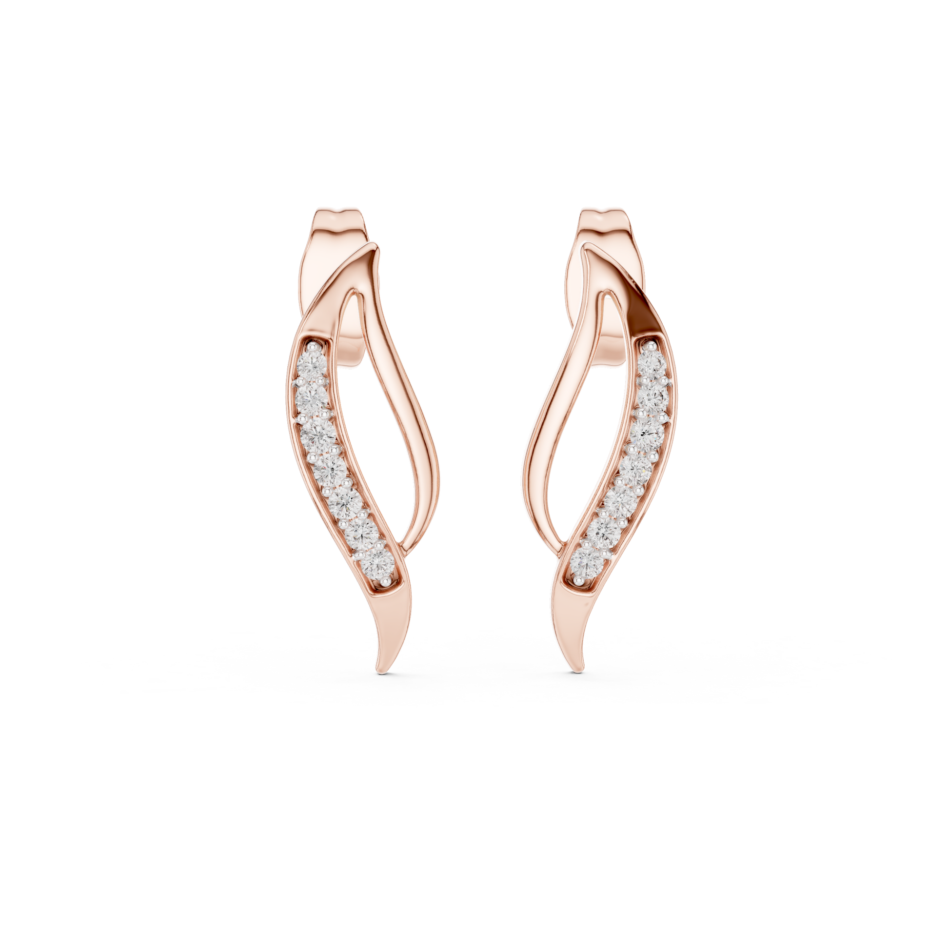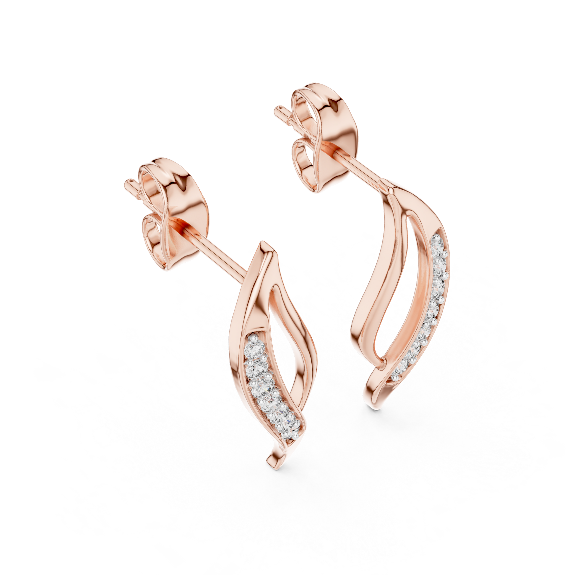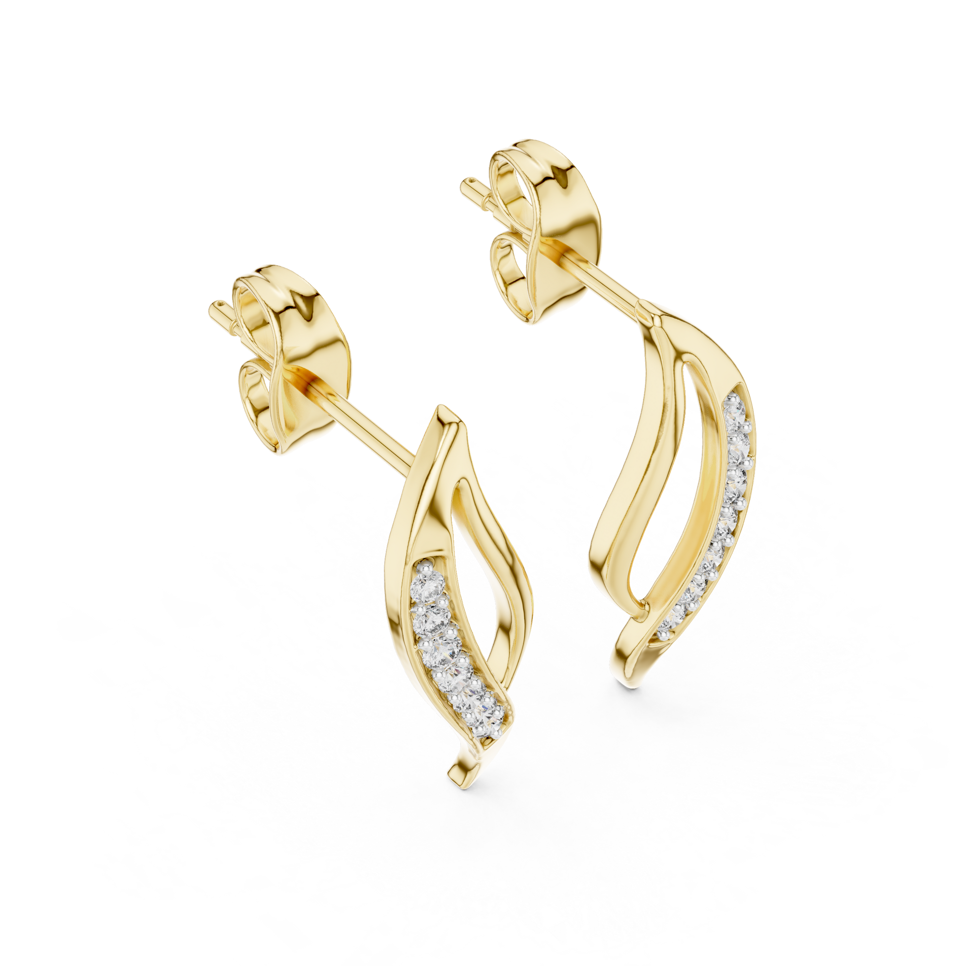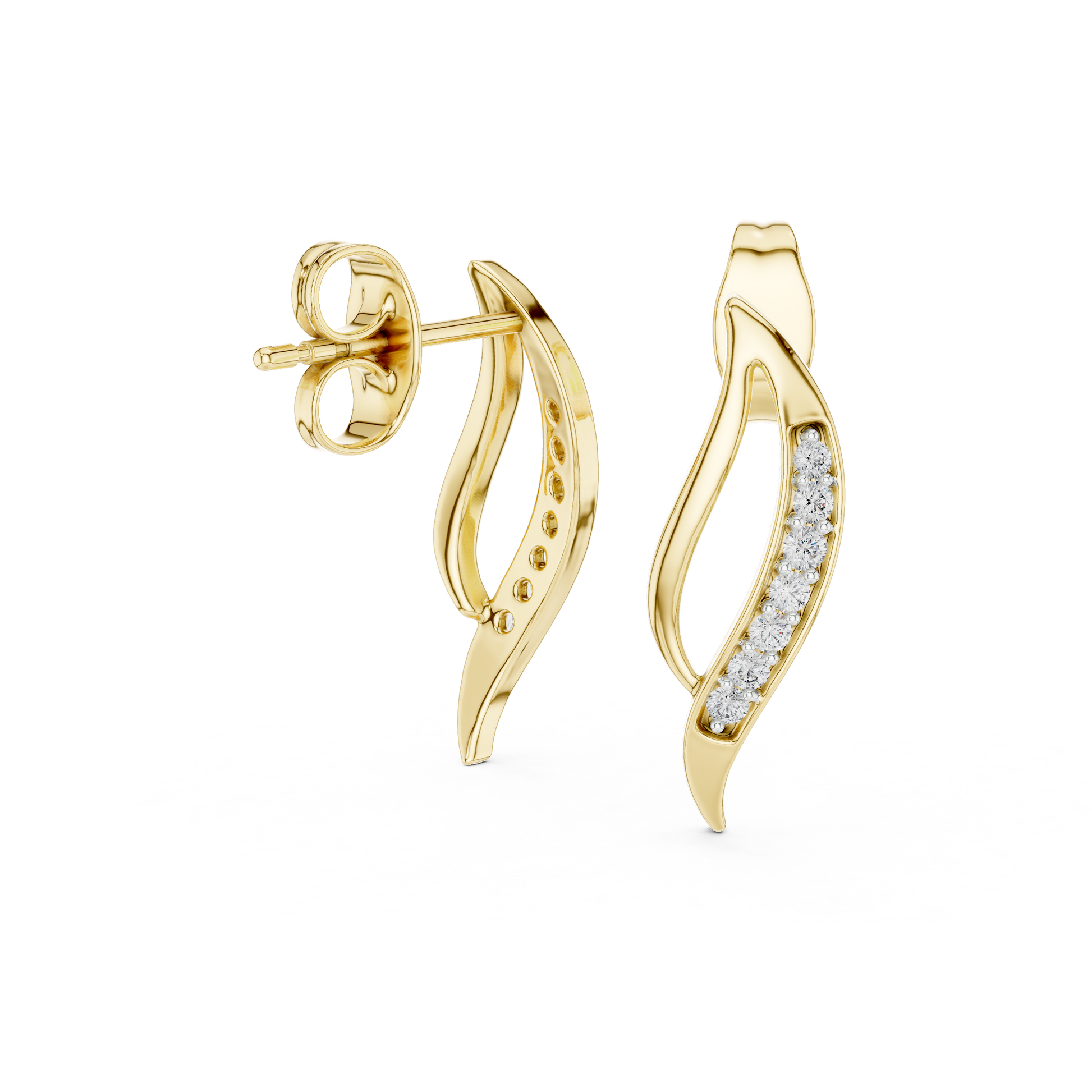 The serenova curve gold stud earrings embody modern elegance through a graceful flowing silhouette. Crafted in polished gold, each stud features a soft open arc accented with a sleek channel of shimmering round diamond stones, creating a refined balance of movement and sparkle. The sculptural curve hugs the ear beautifully, offering a contemporary yet timeless look. Ideal for everyday sophistication or elevated evening wear, these studs are designed for effortless luxury and enduring style.