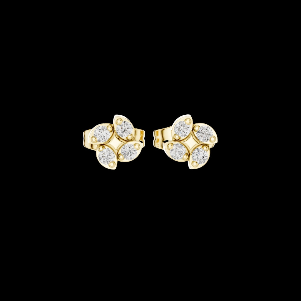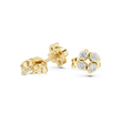 These modern diamond stud earrings feature a soft floral silhouette formed by gently curved gold petals. Each petal cradles a brilliant round diamond, creating a harmonious balance of sparkle and smooth gold contours. The open center adds lightness and contemporary appeal, while the rounded edges offer a refined, wearable elegance. Perfect for daily luxury or understated occasions, these studs blend modern design with timeless diamond brilliance.