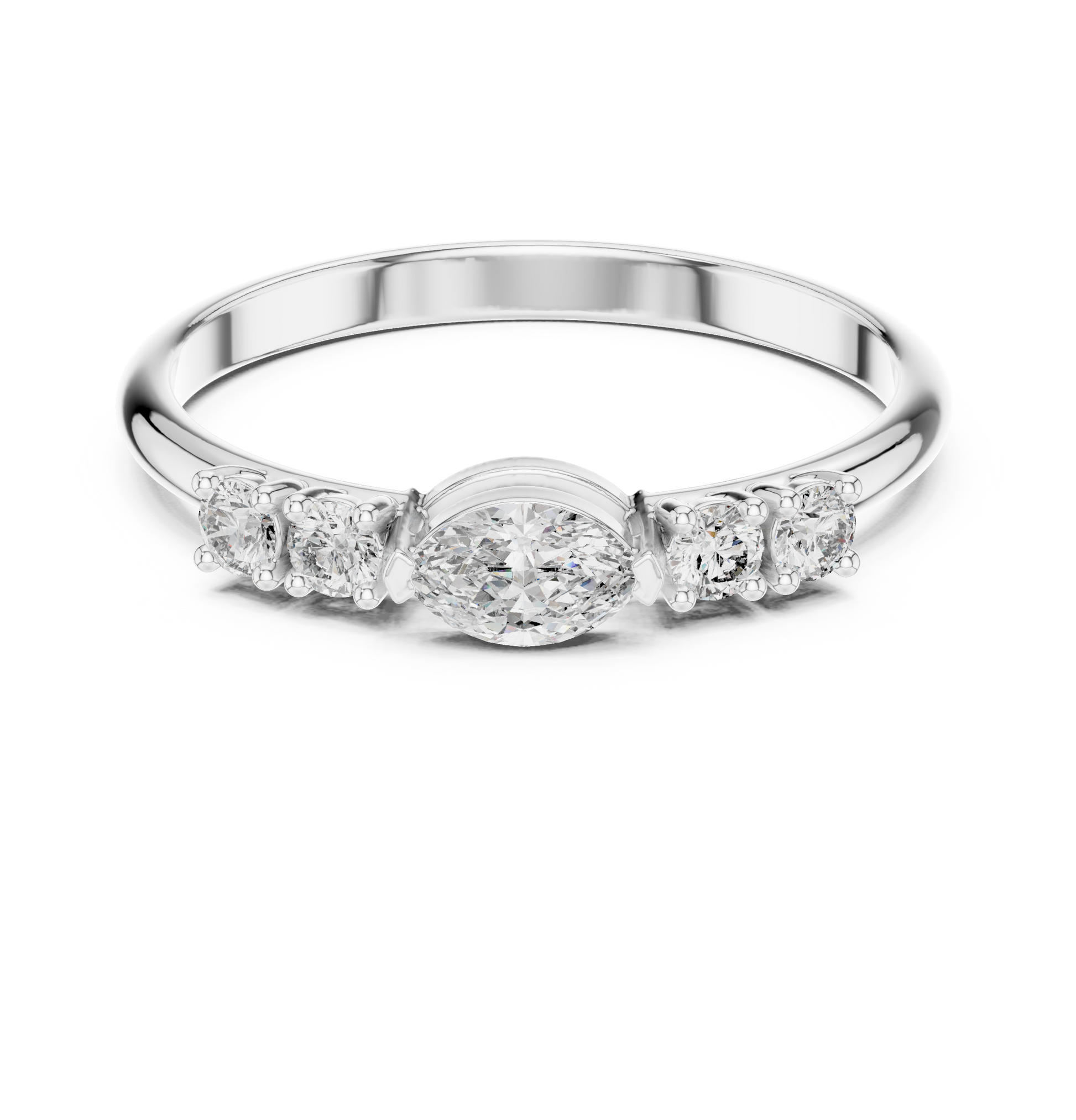 Crafted in polished gold, this refined diamond band features a striking marquise-cut center stone framed by precisely set round side diamonds. The sleek silhouette and balanced proportions create a timeless yet modern look, ideal for engagements, meaningful gifts, or everyday luxury wear. Designed for comfort and brilliance, this ring blends minimal elegance with enduring craftsmanship.