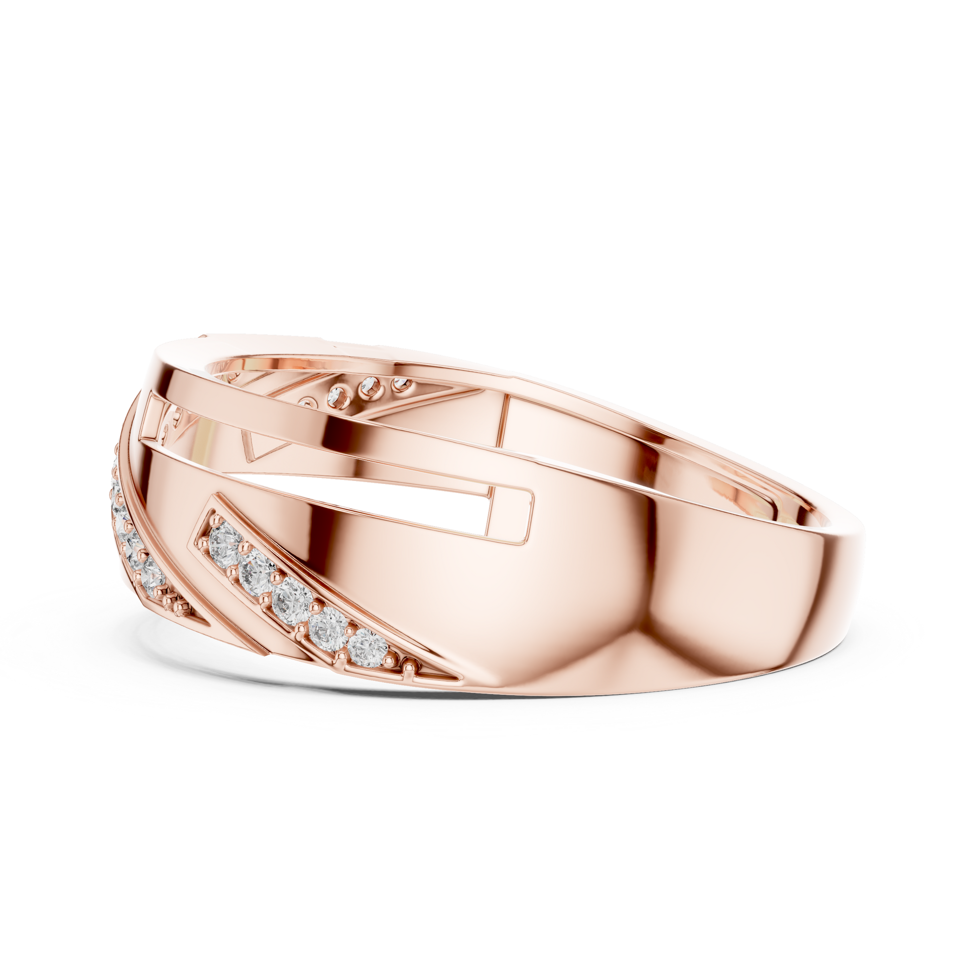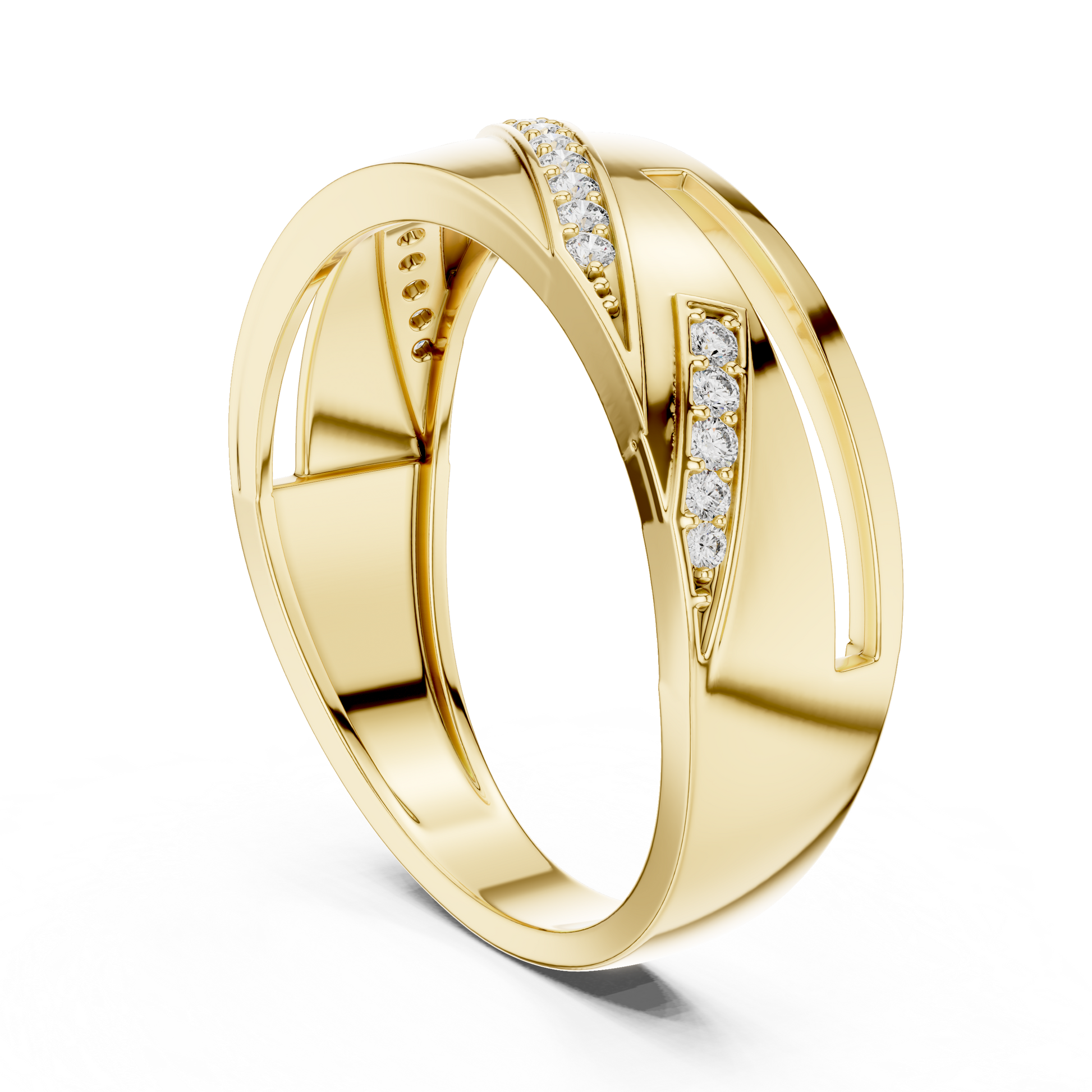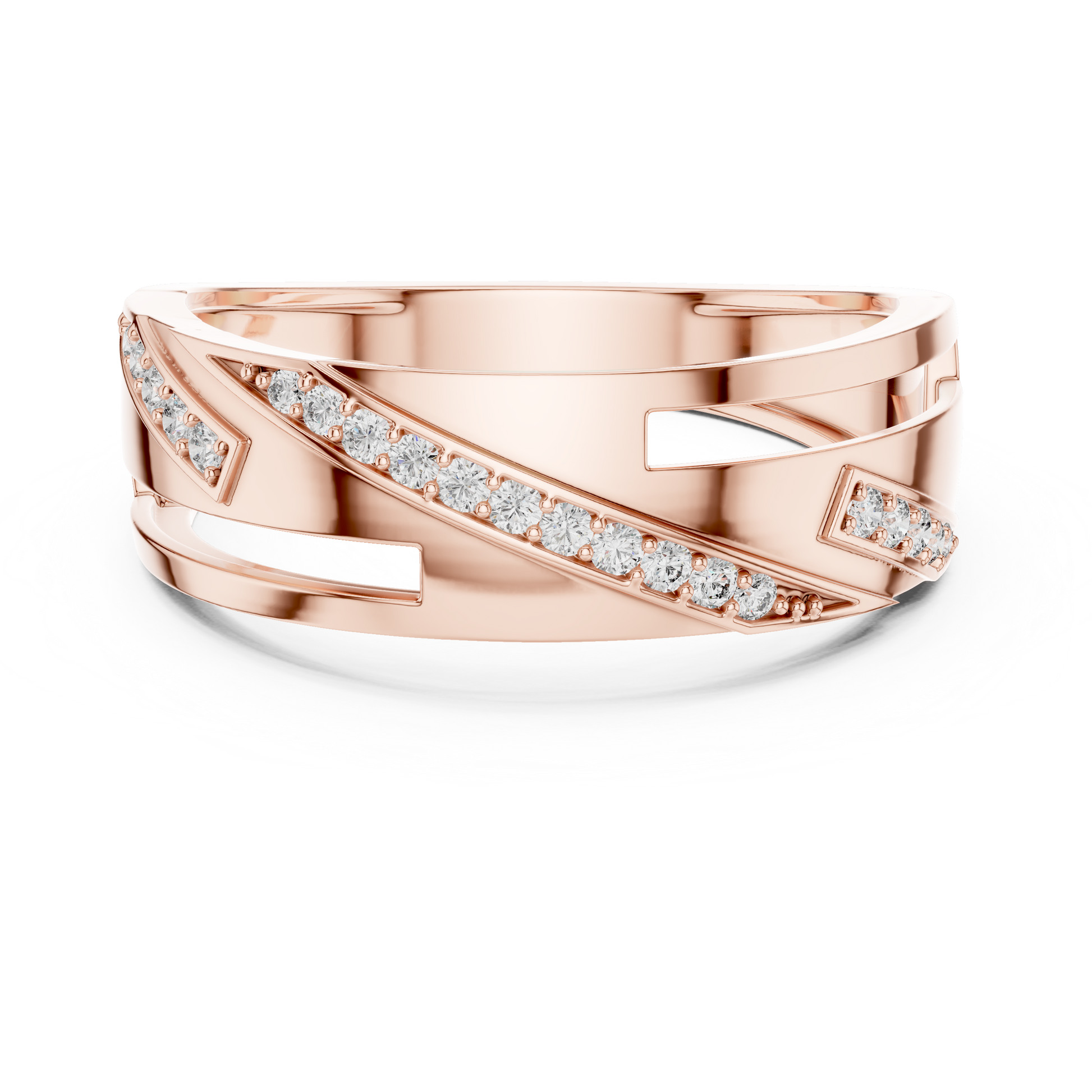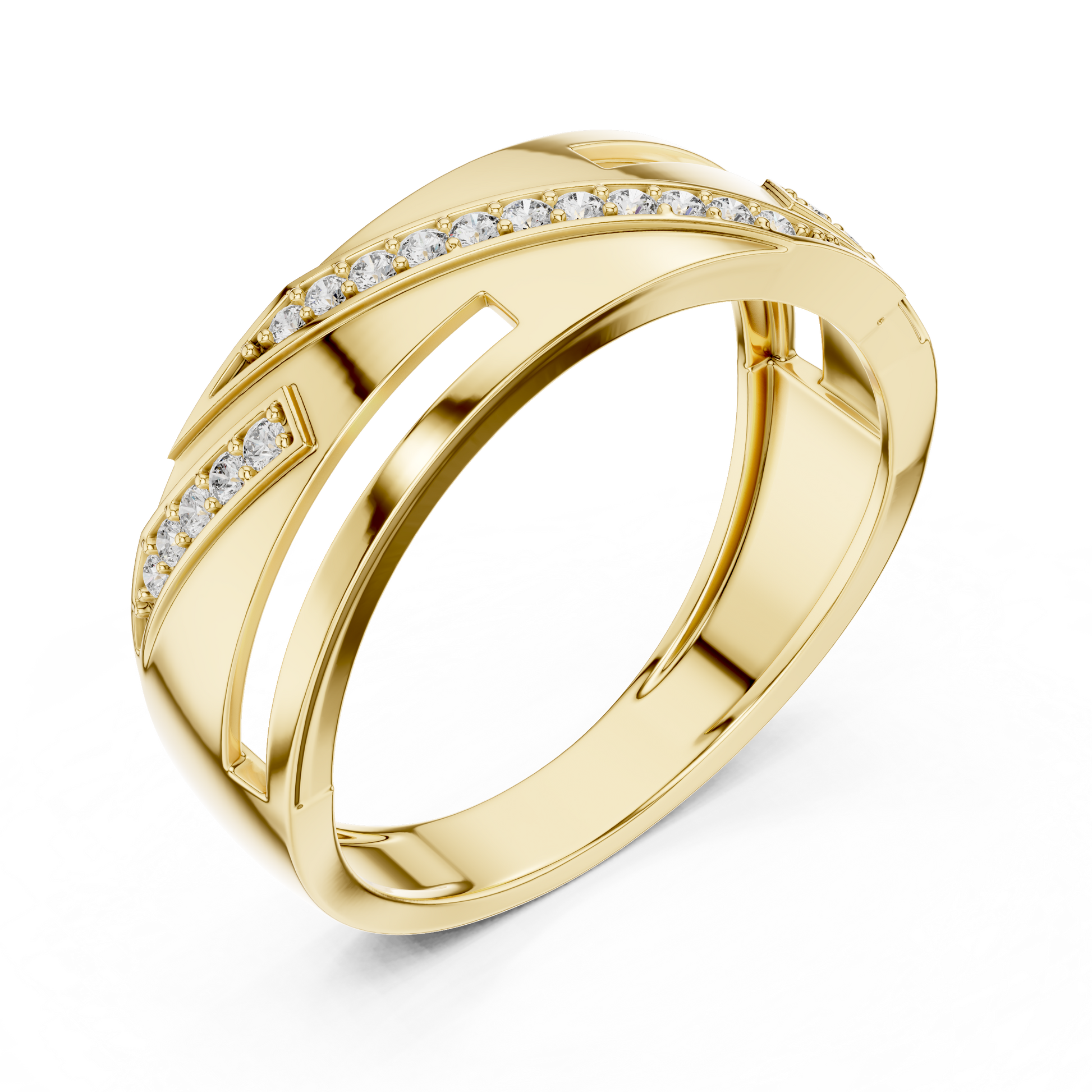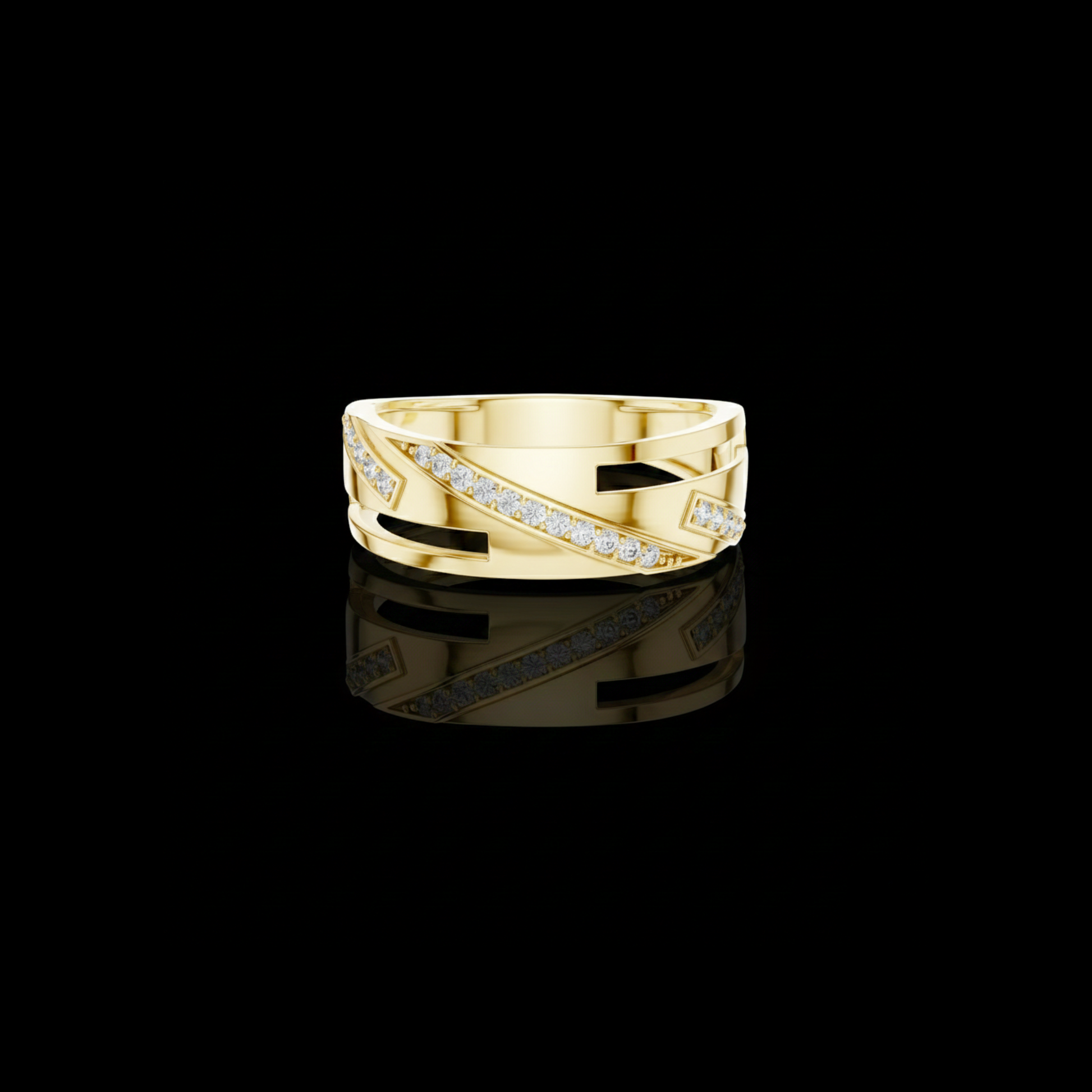 this exquisite ring from Ivevar Luxury showcases a striking geometric openwork pattern crafted in radiant gold. Brilliant pavé-set round diamonds are elegantly embedded along sculpted diagonal channels, creating a refined balance of sparkle and modern architecture. The smooth high-polish finish enhances the ring’s luxurious appeal while ensuring exceptional comfort for everyday wear.