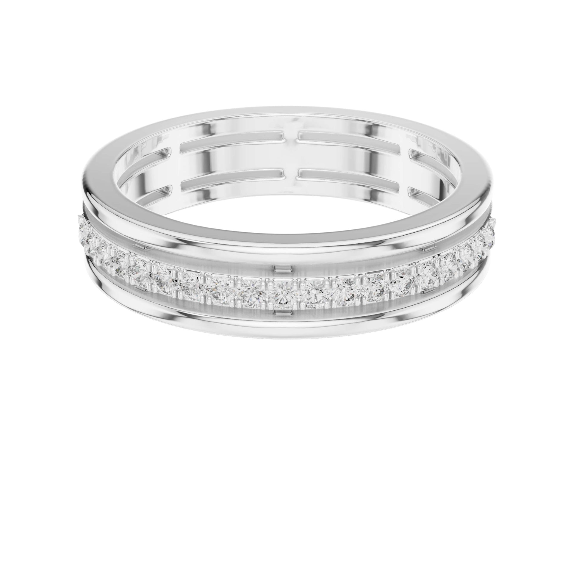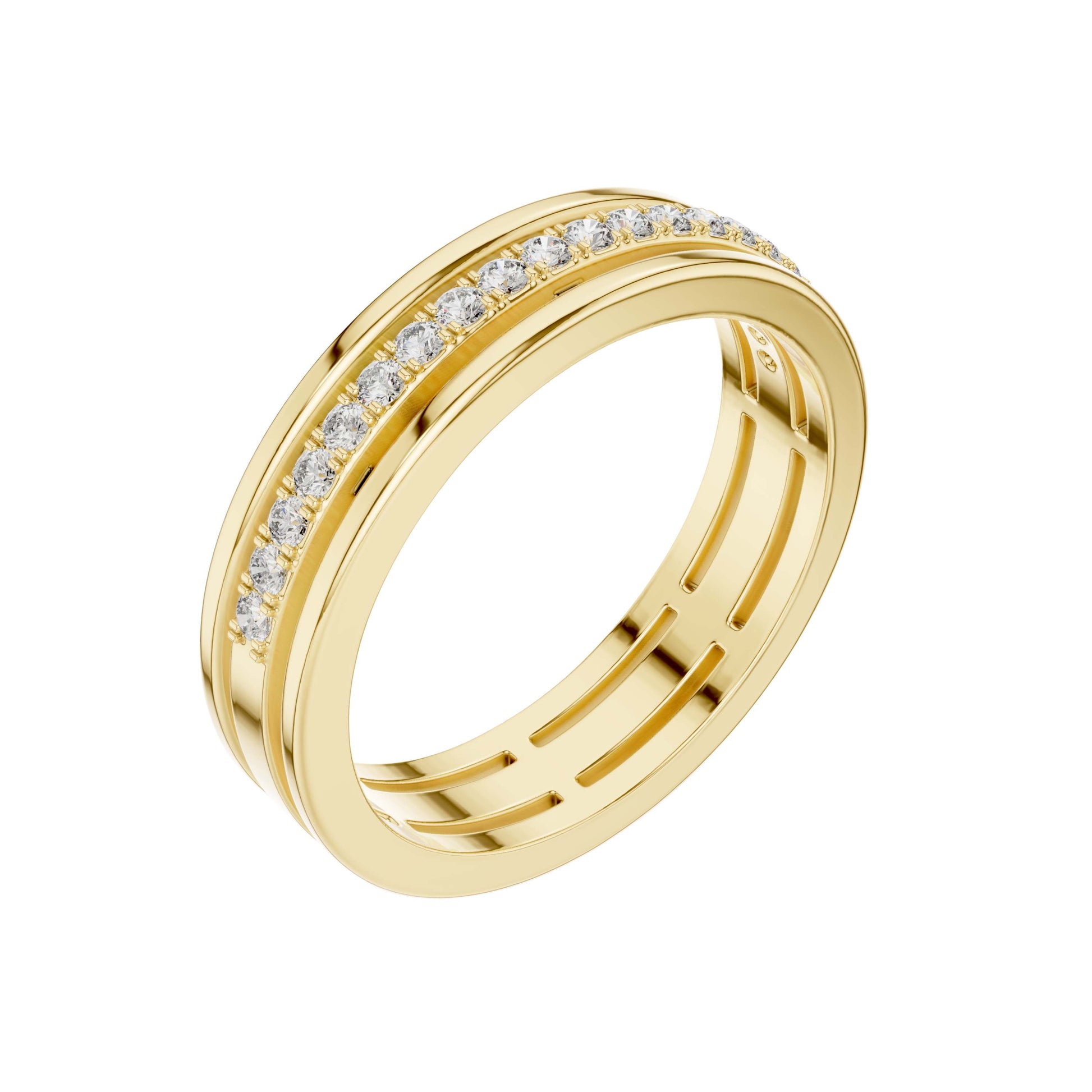 This refined gold band features a continuous row of round brilliant diamonds expertly channel-set along the center, creating a sleek and sophisticated look with enduring appeal. The smooth, high-polish gold edges frame the diamonds beautifully, offering both security and brilliance while maintaining a clean, modern profile. Perfect as a wedding band, anniversary ring, or elegant everyday piece, this timeless design delivers understated luxury and effortless versatility for any occasion from Ivevar.
