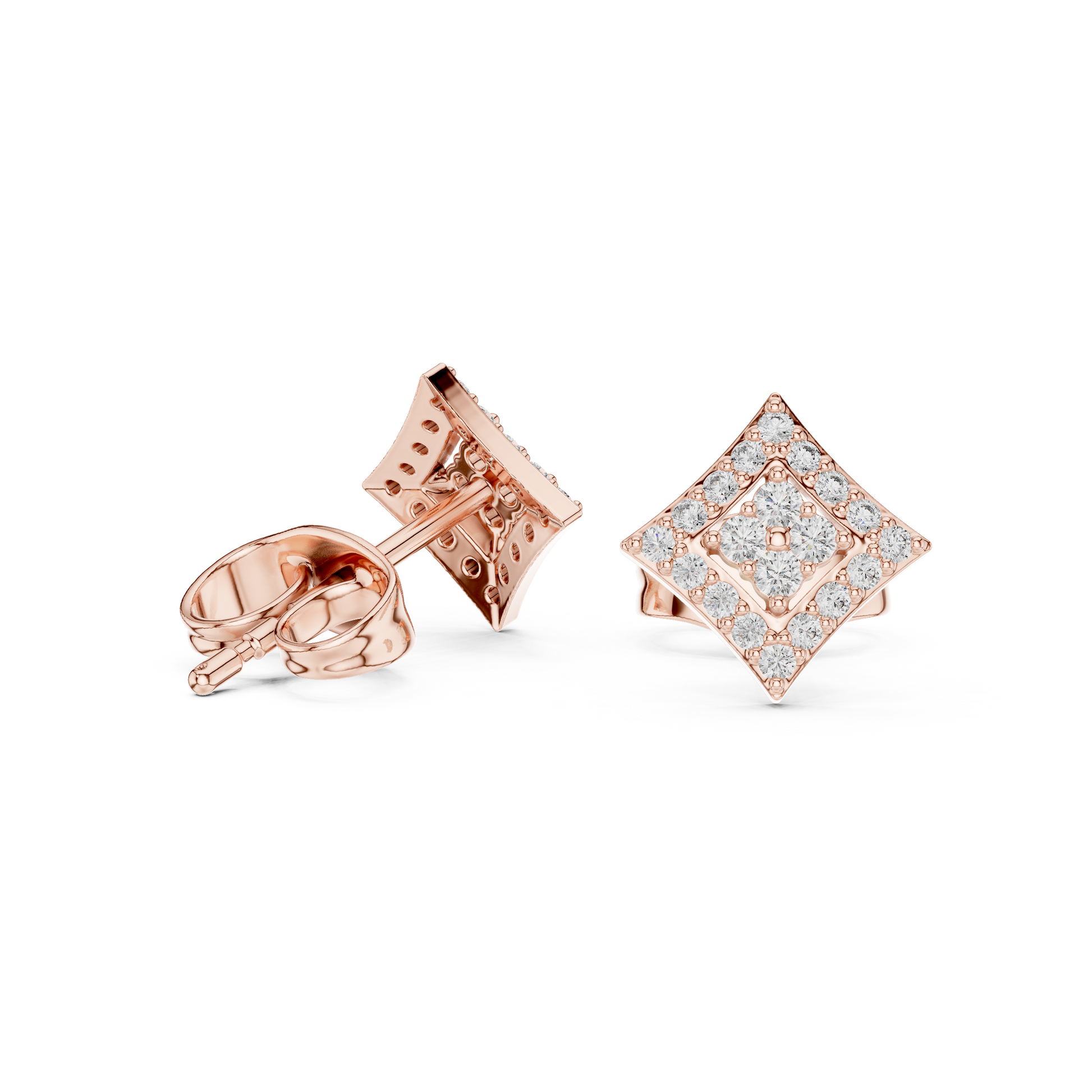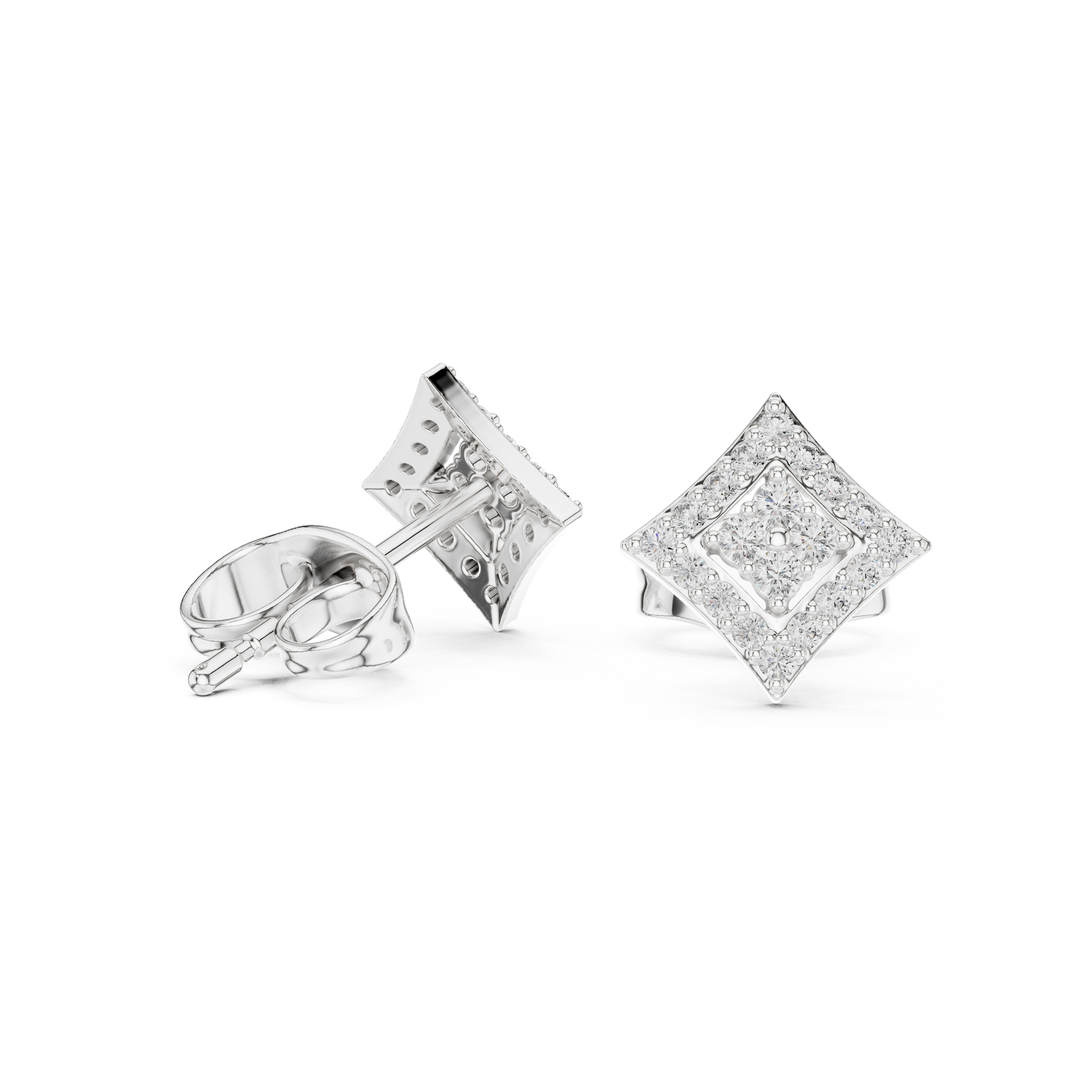 Make an impression with these luxurious square diamond stud earrings, crafted to showcase exceptional brilliance and symmetry. Featuring a layered square silhouette adorned with multiple round-cut diamonds, each stud radiates light from every angle. The structured design blends modern geometry with timeless elegance, making these earrings ideal for special occasions or elevated everyday wear. A true celebration of fine craftsmanship and radiant luxury, perfect for those who appreciate bold sophistication.