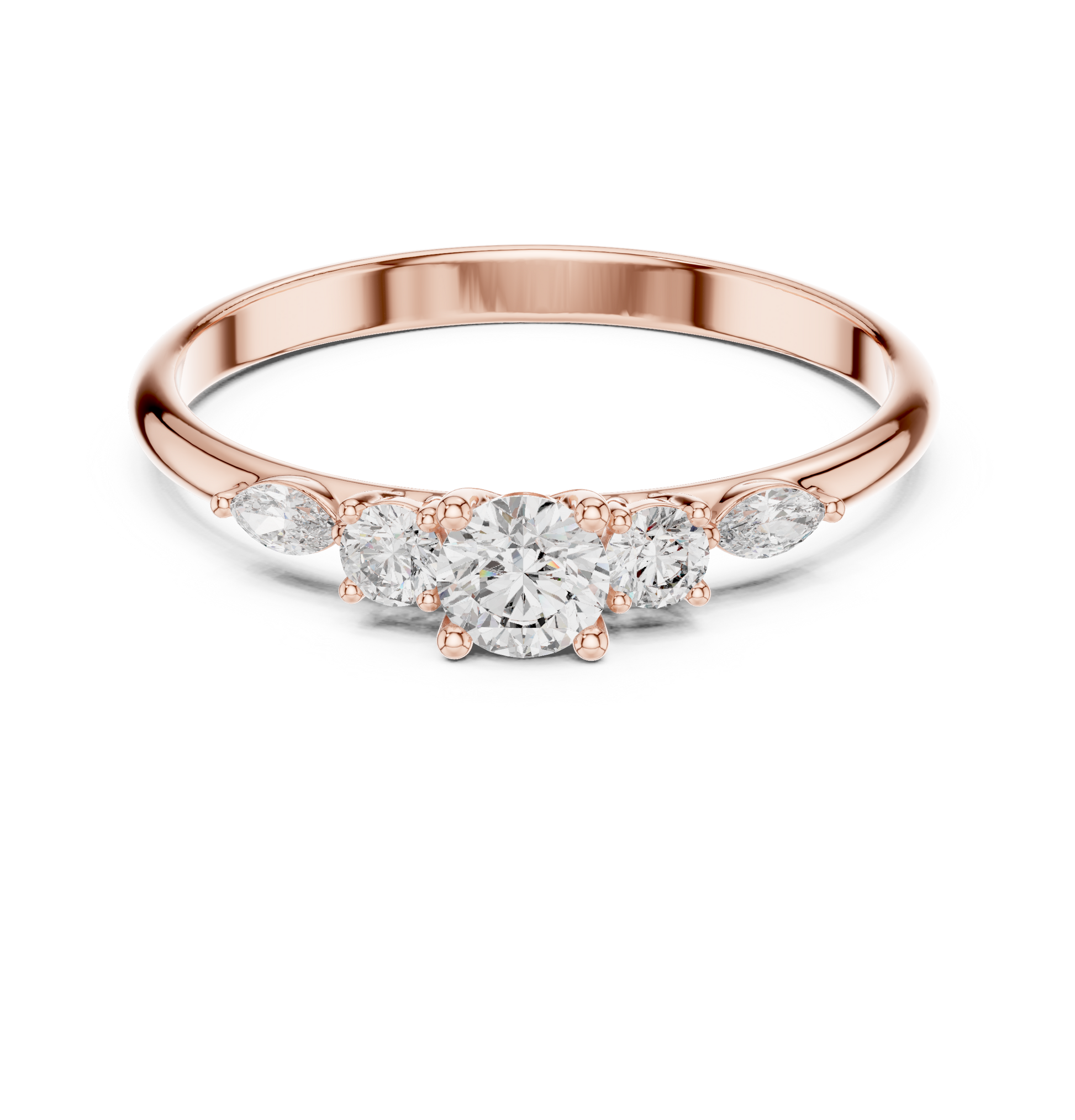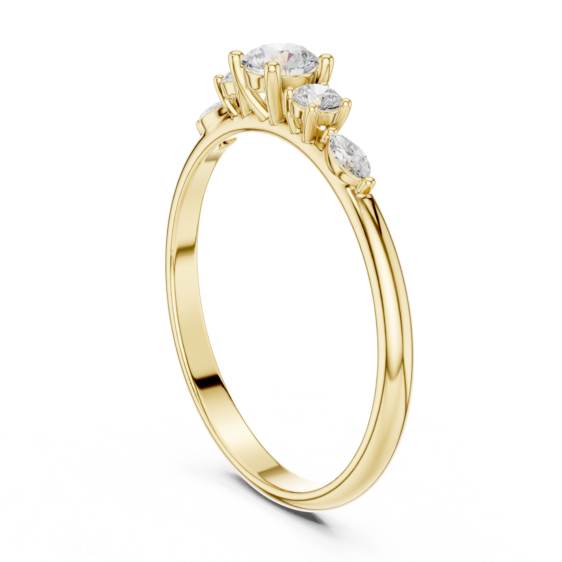 This elegant gold ring features a refined graduated arrangement of round diamonds, with a luminous center stone framed by softly tapering side diamonds. The sleek gold band enhances the brilliance of each diamond, creating a balanced design that feels both timeless and modern. Perfect for stacking, gifting, or wearing solo, this ring offers understated luxury and everyday sophistication with exceptional sparkle.
