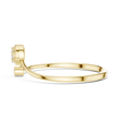 Discover a masterpiece of modern elegance with this handcrafted open-band ring, designed for those who adore subtle luxury. The smooth gold band curves gracefully into an open silhouette, showcasing a brilliant cluster of diamonds on one side and a sparkling Round diamond on the other. This asymmetrical design creates a look that is both artful and captivating, perfect for everyday wear or special occasions.