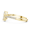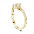 This elegant gold ring features a striking princess-cut diamond at the center, surrounded by a radiant cluster of round diamonds for enhanced brilliance. The refined split-shank band is accented with pave diamonds, adding depth and sparkle from every angle. Designed for timeless sophistication, this ring is perfect as an engagement piece, anniversary gift, or a luxurious everyday statement.