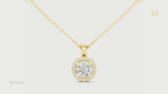 This exquisite round halo diamond pendant showcases a brilliant center round-cut diamond, encircled by a delicate halo of shimmering diamonds set in high. The refined four-prong setting enhances the diamond’s natural fire while the surrounding halo amplifies its depth and brilliance.Perfect for everyday sophistication or special celebrations, this pendant embodies classic luxury, enduring beauty, and graceful charm—a timeless piece destined to be treasured for generations.