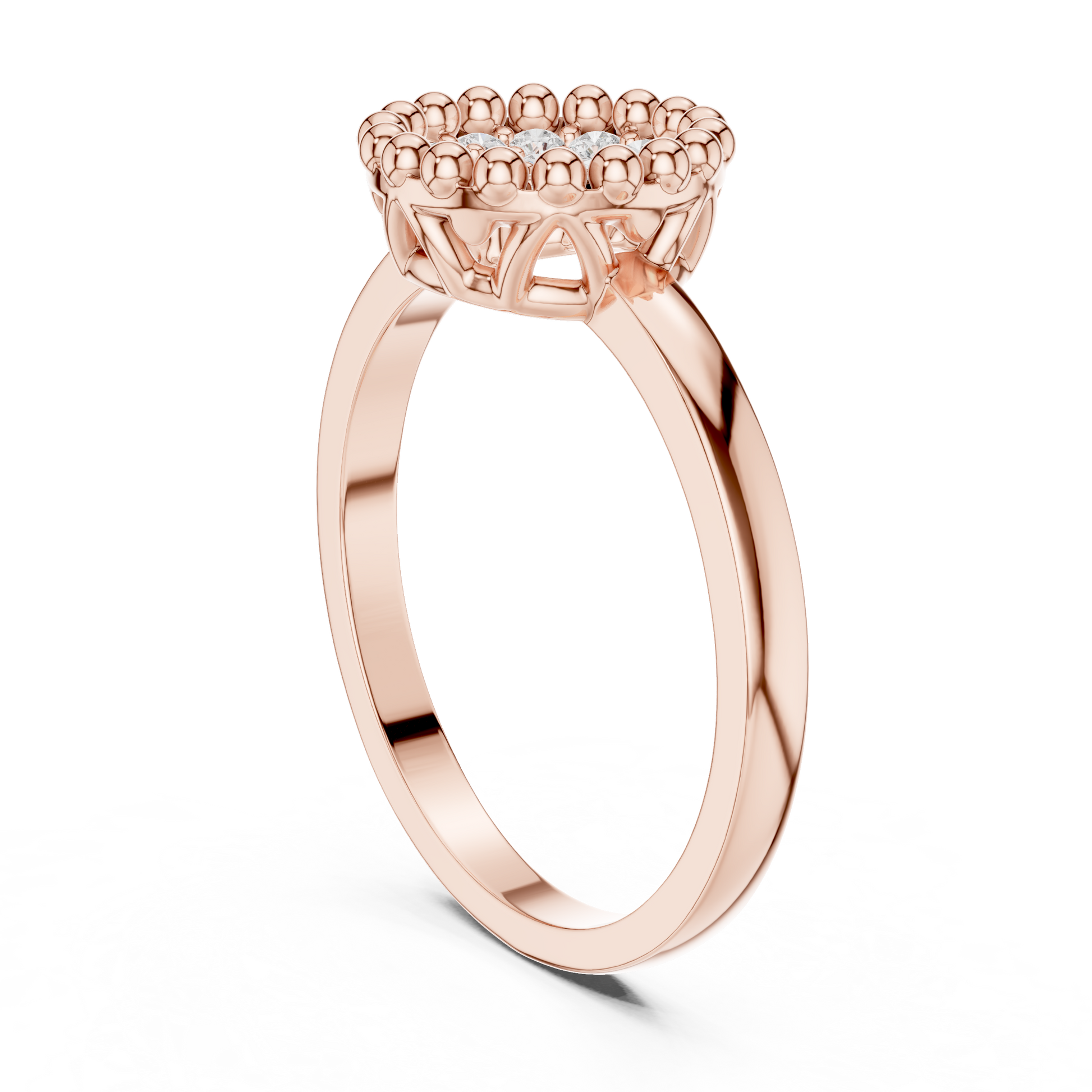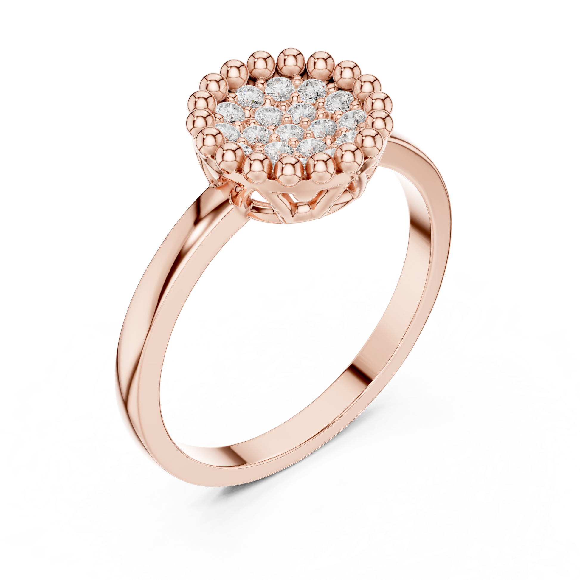 Introducing an exquisite creation from Ivevar Luxury, this ring embodies the beauty of refined craftsmanship through its radiant, symmetrical round diamond cluster. Each stone is arranged with precision to form a shimmering mosaic that catches light from every angle. A bold beaded gold halo enhances the centerpiece with depth and a touch of timeless elegance. Completed with a smooth, this piece blends modern simplicity with classic luxury—perfect for everyday wear or gifting someone truly special.