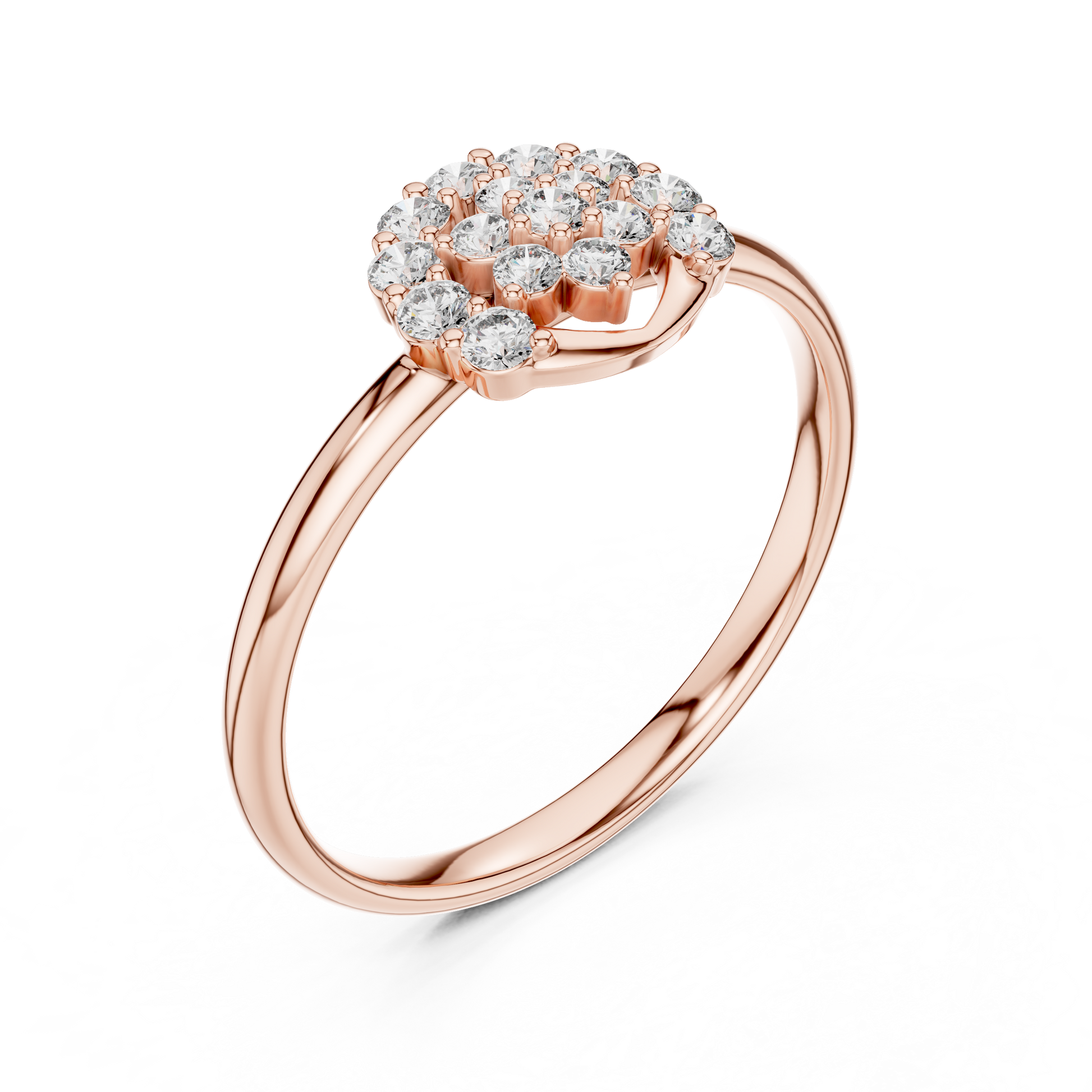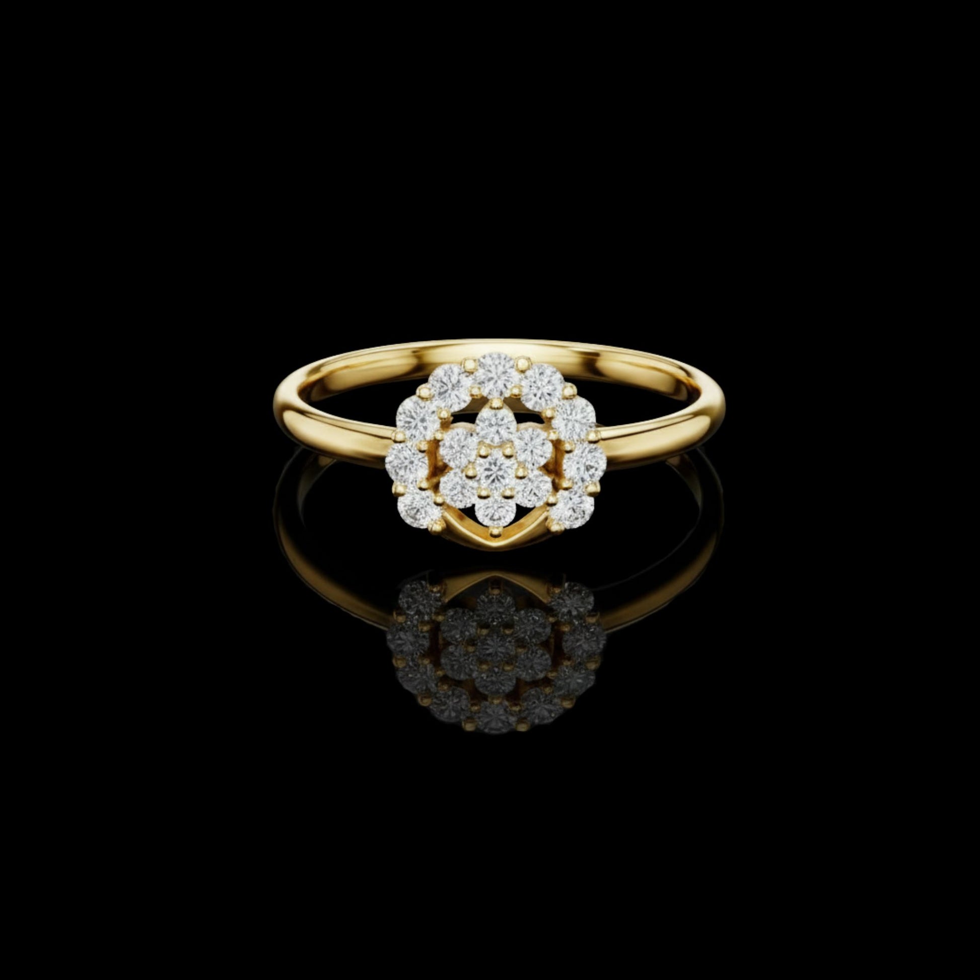 This exquisite floral cluster ring features shimmering round diamonds arranged in a beautifully layered flower design, set on a polished gold band for a luxurious finish. Its intricate craftsmanship makes it perfect for gifting or adding elegance to your own collection. This masterpiece delivers diamond brilliance, gold shine, luxury appeal, and timeless beauty in every detail.
