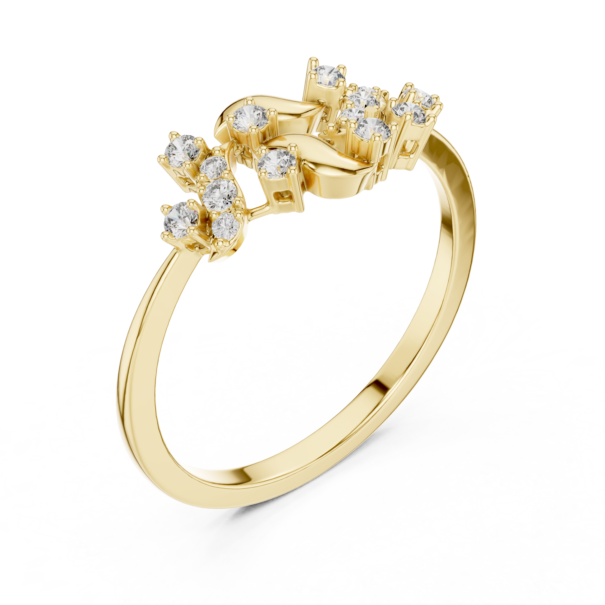 race meets brilliance in this stunning gold twisted vine diamond ring, inspired by the natural flow of delicate vines and blooming florals. The softly curved gold design intertwines gracefully, while brilliant round-cut diamonds are arranged like sparkling blossoms, adding depth and radiant charm. Crafted with precision and passion, this ring embodies fine craftsmanship, natural elegance, and the signature sophistication of Ivevar Luxury.