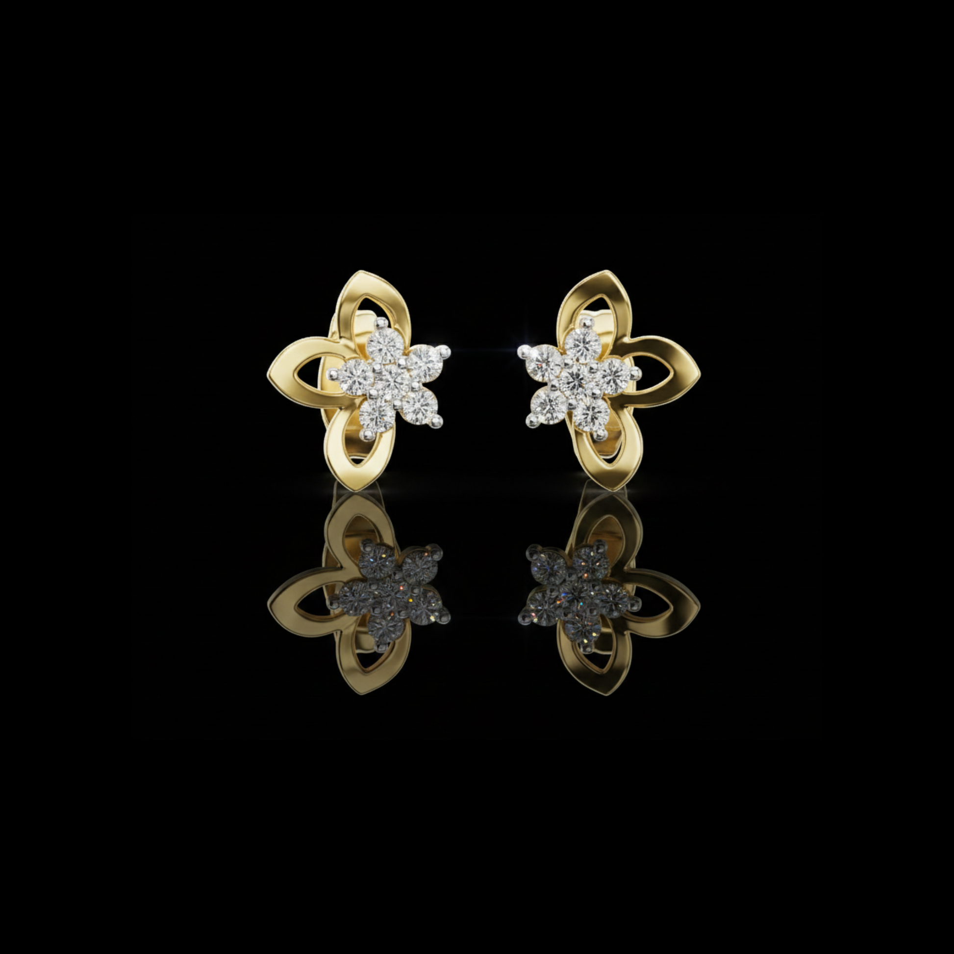 0.18 TCW Celestial Floral Knot Lab Diamond Stud Earrings with Petals and Cluster Round CutCenter