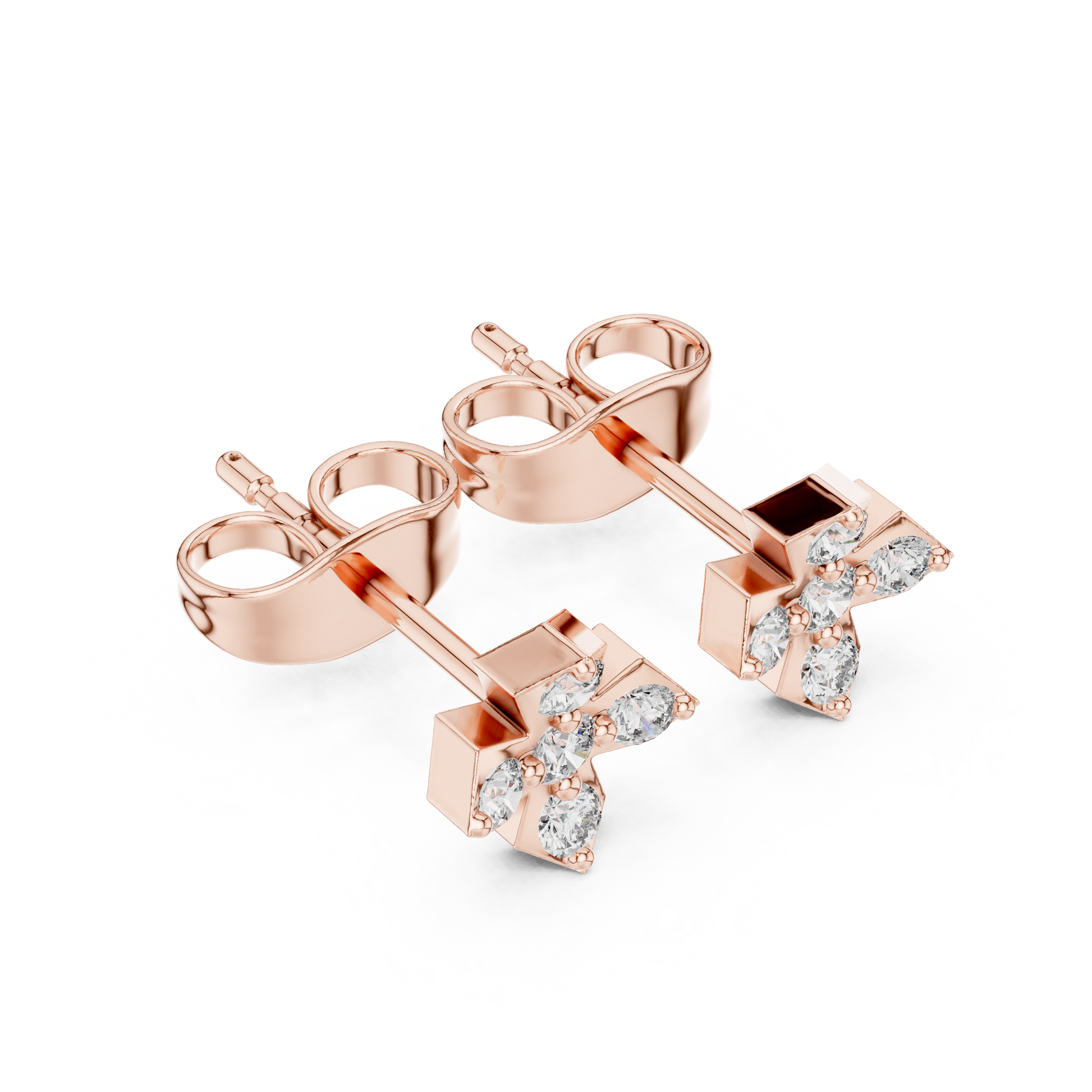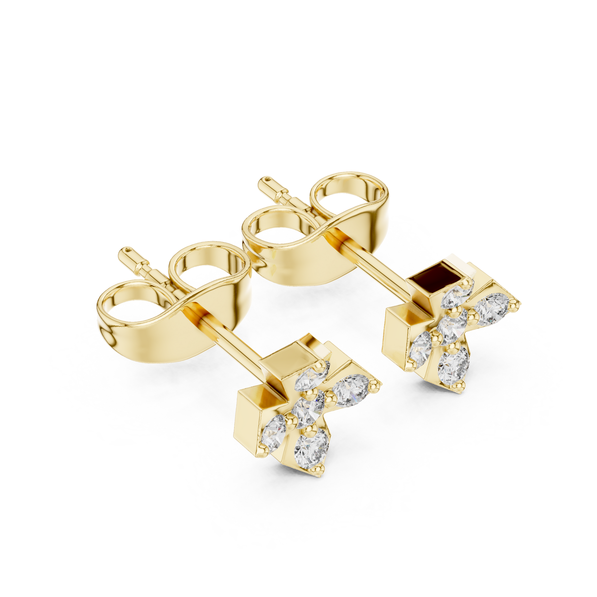 These sophisticated diamond stud earrings feature a clean geometric cross silhouette crafted in polished gold. Five brilliant round diamonds are precisely arranged to form a balanced cluster, delivering radiant sparkle from every angle. Smooth gold edges frame each stone, creating a structured yet elegant look that blends modern design with timeless luxury. Ideal for everyday refinement or meaningful gifting, these studs offer enduring beauty, symmetry, and exceptional craftsmanship.