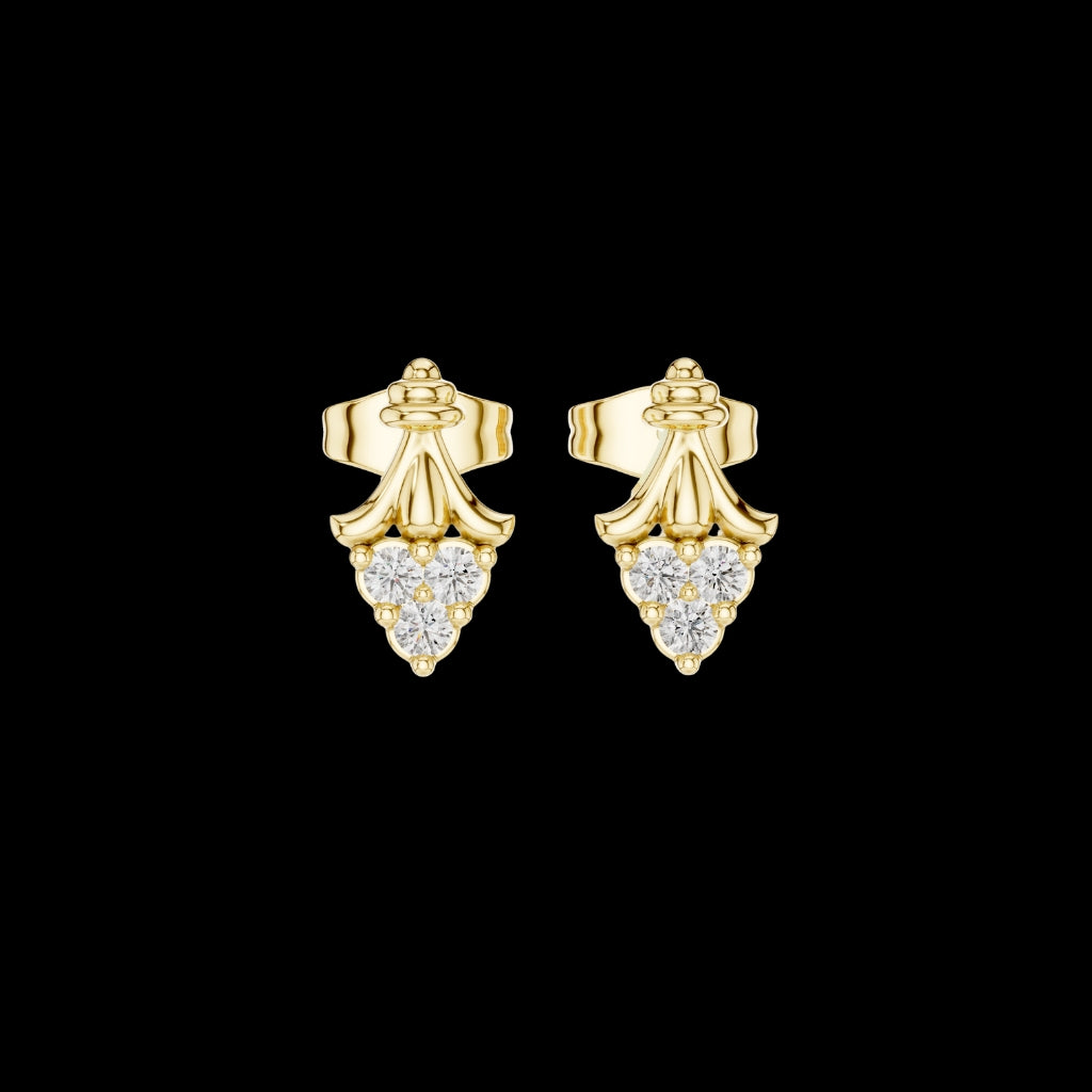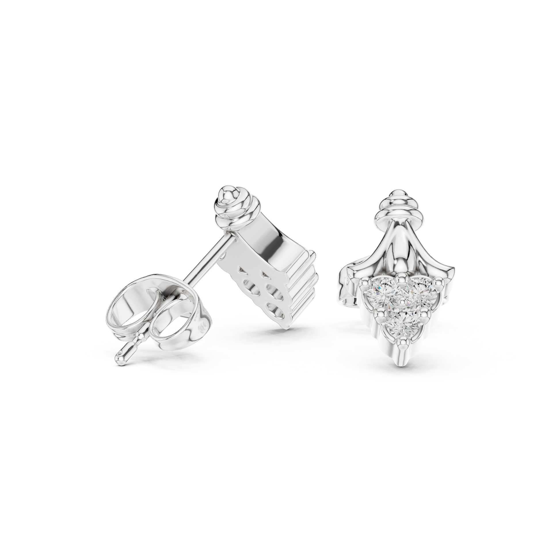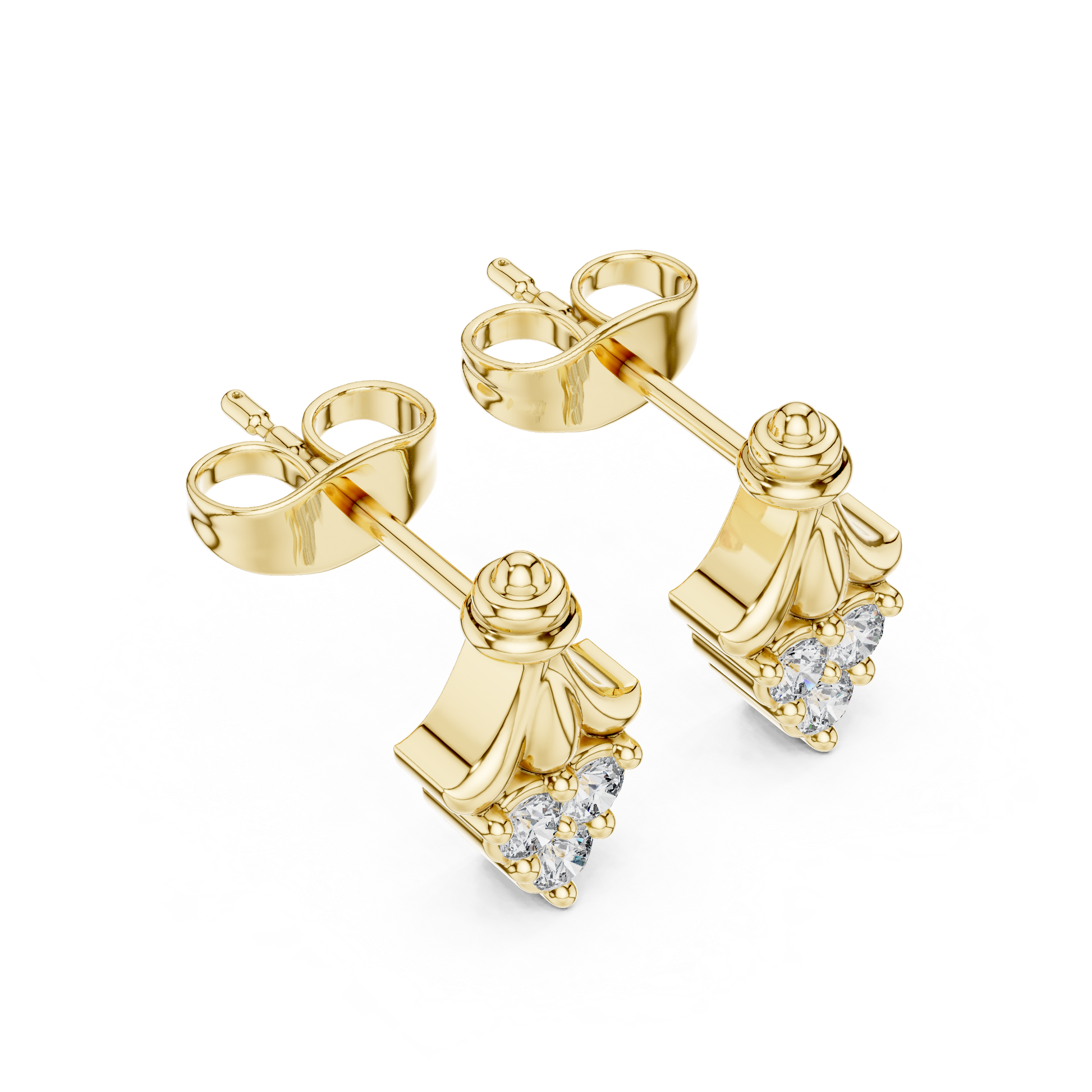 These elegant diamond stud earrings feature a graceful vintage scroll design crafted in polished gold. A trio of sparkling round diamonds forms a classic cluster beneath an ornate crown-inspired accent, blending old-world charm with refined brilliance. Perfect for lovers of timeless jewelry, these studs add sophistication to everyday wear while making a beautiful statement for special occasions or meaningful gifting.