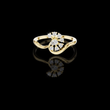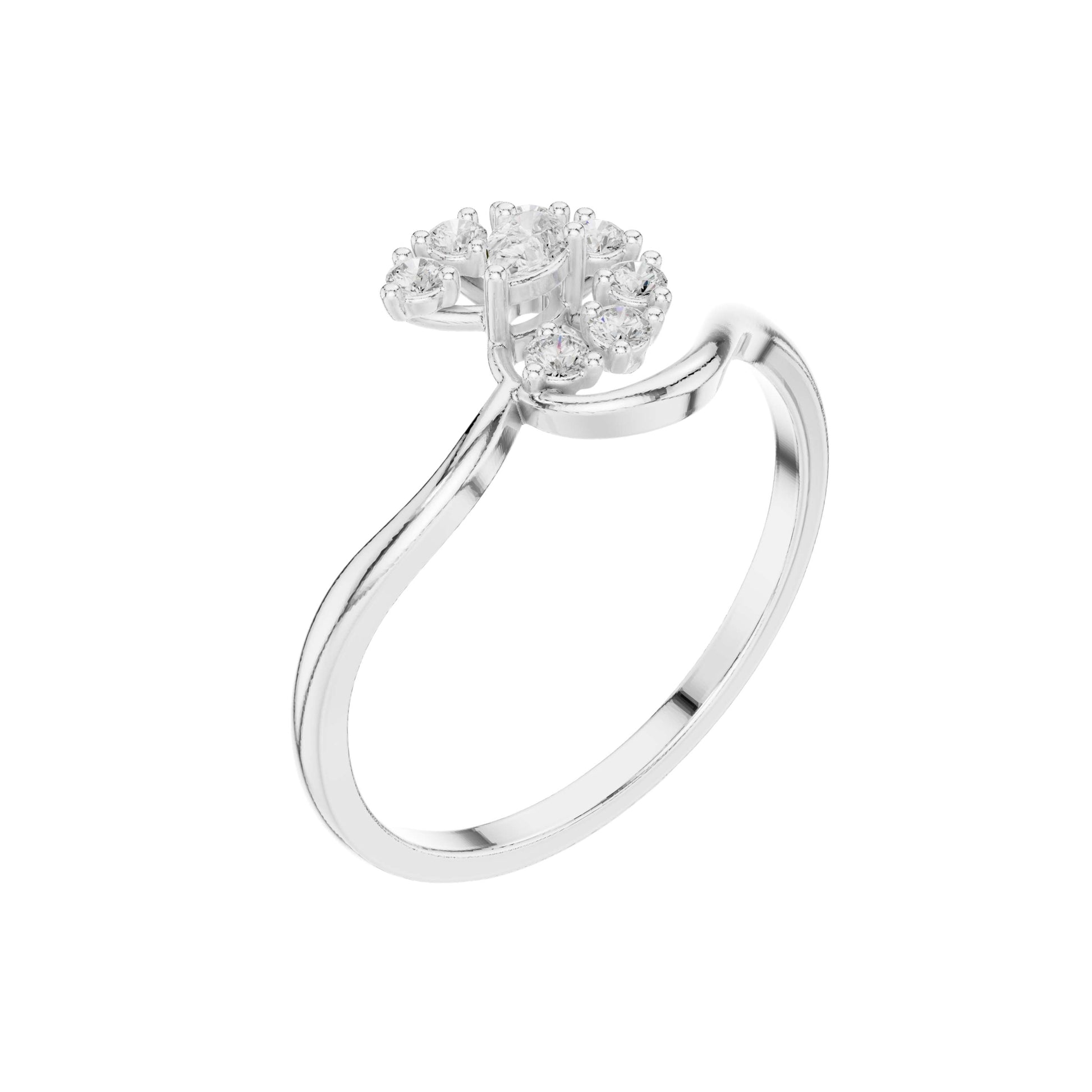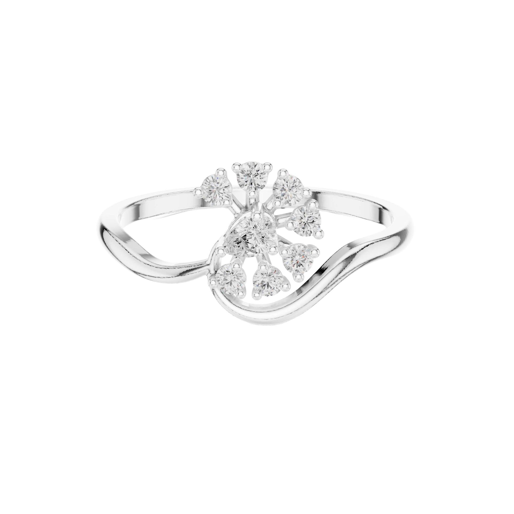 This elegant ring features a graceful floral-inspired cluster of brilliant diamonds, delicately arranged to bloom at the center of a softly contoured gold band. The flowing, wave-like silhouette adds movement and femininity, while the prong-set diamonds create radiant sparkle from every angle. Refined yet romantic, this design captures the beauty of nature with a modern touch, making it a perfect statement for everyday luxury or a meaningful gift for special moments from Ivevar.