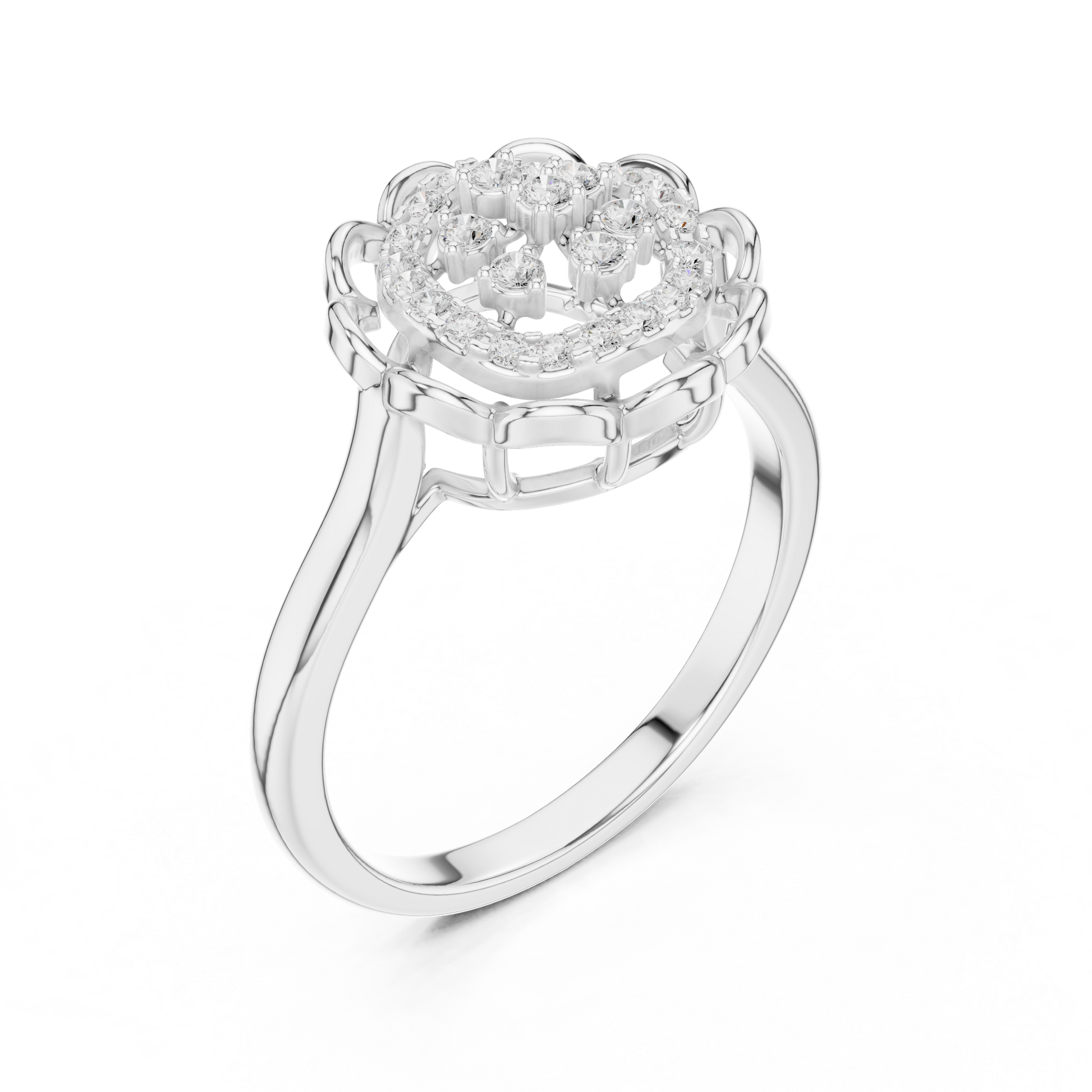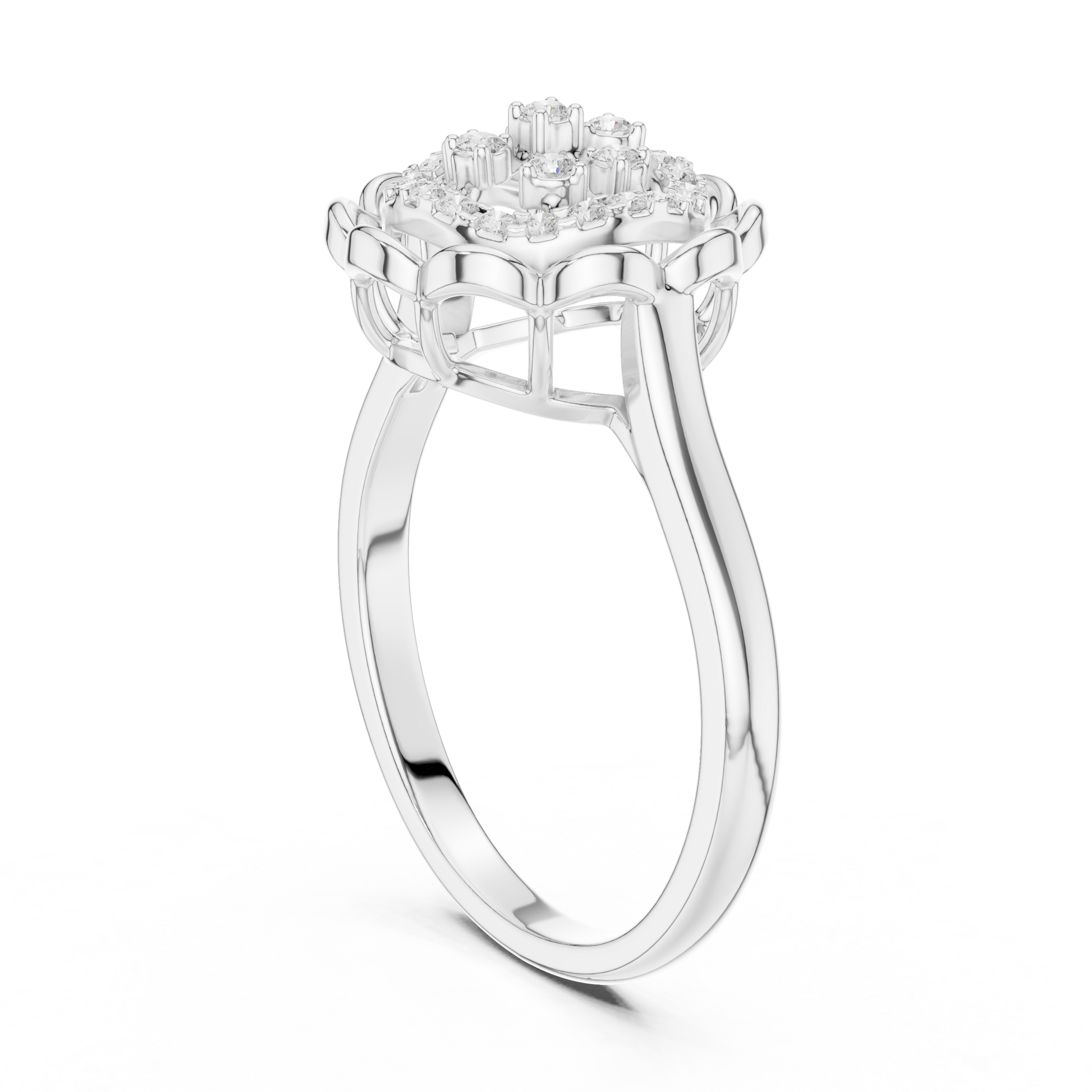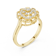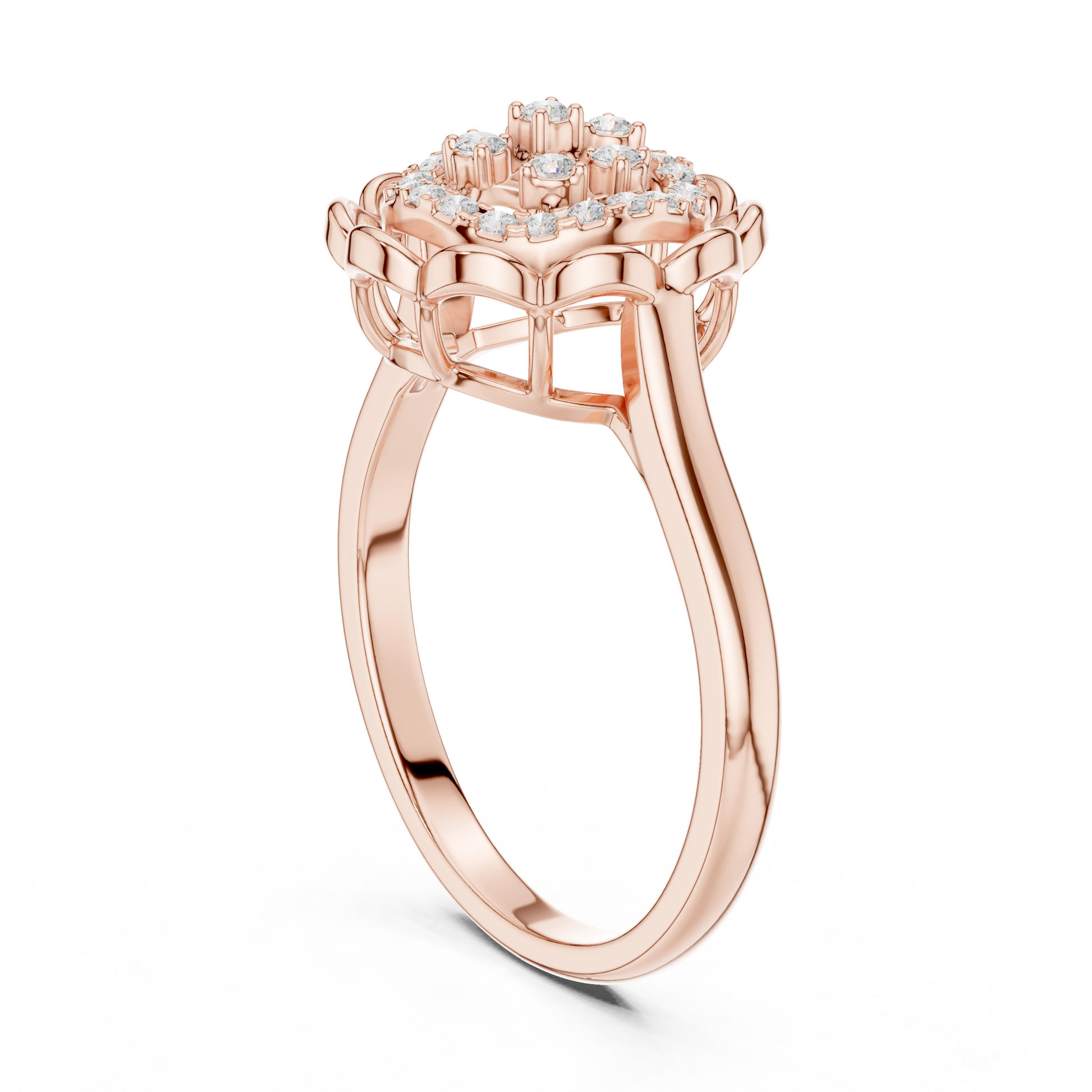 This stunning ring showcases a radiant floral medallion design, crafted with intricate petal-like detailing that surrounds a brilliant diamond cluster center. Each sparkling stone is meticulously set to create a harmonious blend of symmetry, elegance, and shimmering depth. The smooth gold band adds a warm, refined finish that elevates the piece’s overall charm.