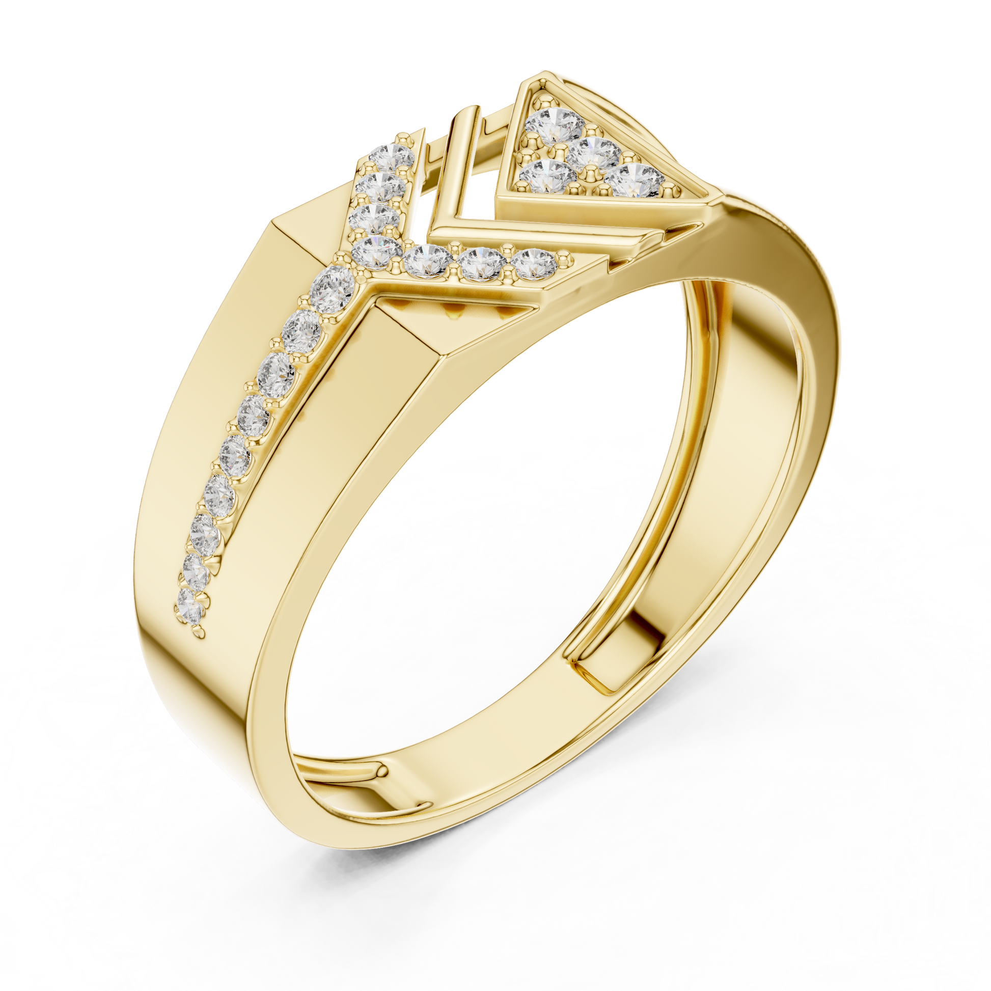 Crafted with precision and artistic vision, this statement ring from Ivevar Luxury showcases a bold geometric design enhanced by shimmering pave-set diamonds. The sleek gold band features sharp chevron and triangular elements that create a modern architectural silhouette with exceptional brilliance. Designed for those who appreciate refined craftsmanship, this ring balances strength and elegance effortlessly.
