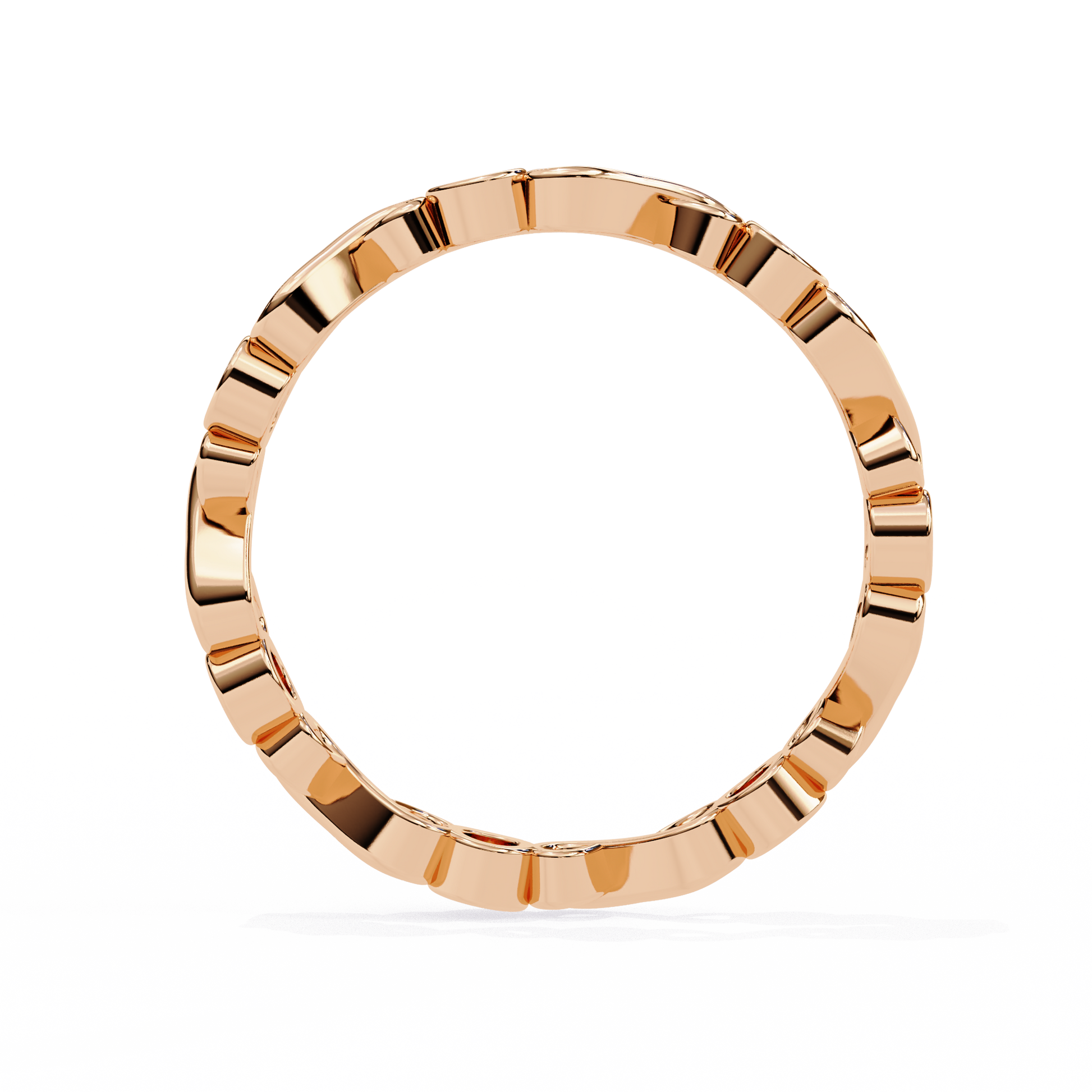 This exquisite ring features an unbroken infinity design crafted in Round gold, symbolizing everlasting love and timeless beauty. Each loop of the band is adorned with brilliant-cut diamonds set in smooth bezel settings, adding a touch of sparkle from every angle. Perfect as a promise ring, wedding band, or a meaningful anniversary gift, this piece blends delicate artistry with luxurious shine. Its intricate pattern and continuous diamond arrangement make it a truly unique and eye-catching accessory for any jewelry collection.