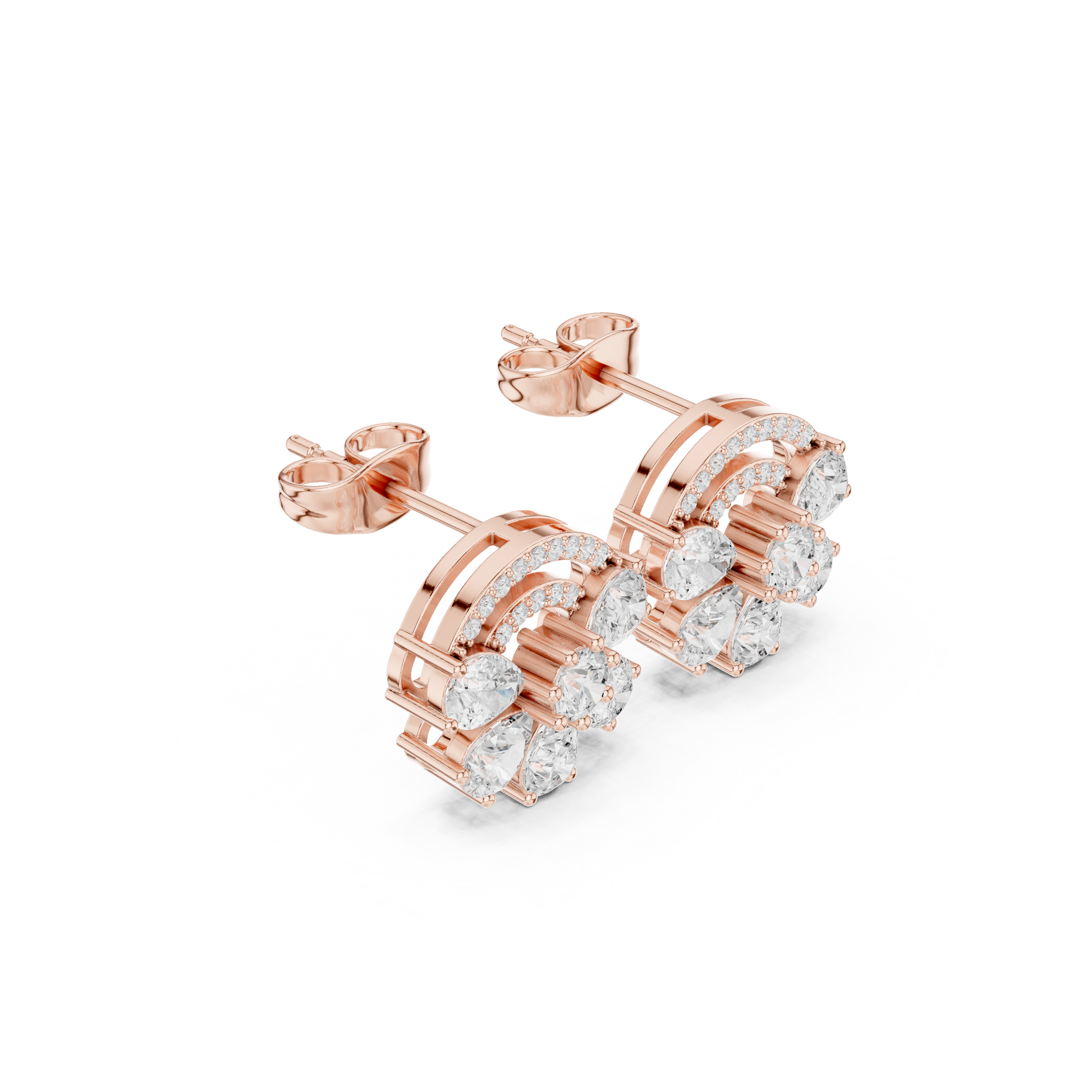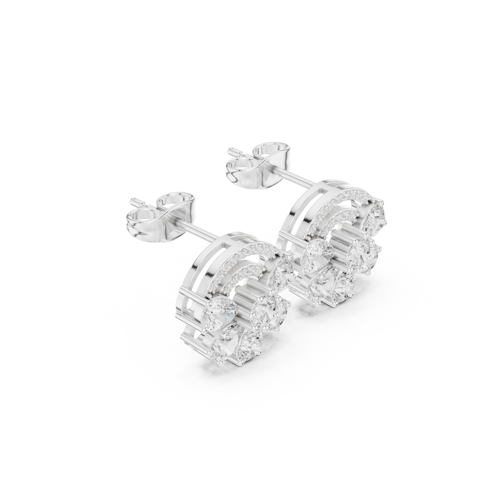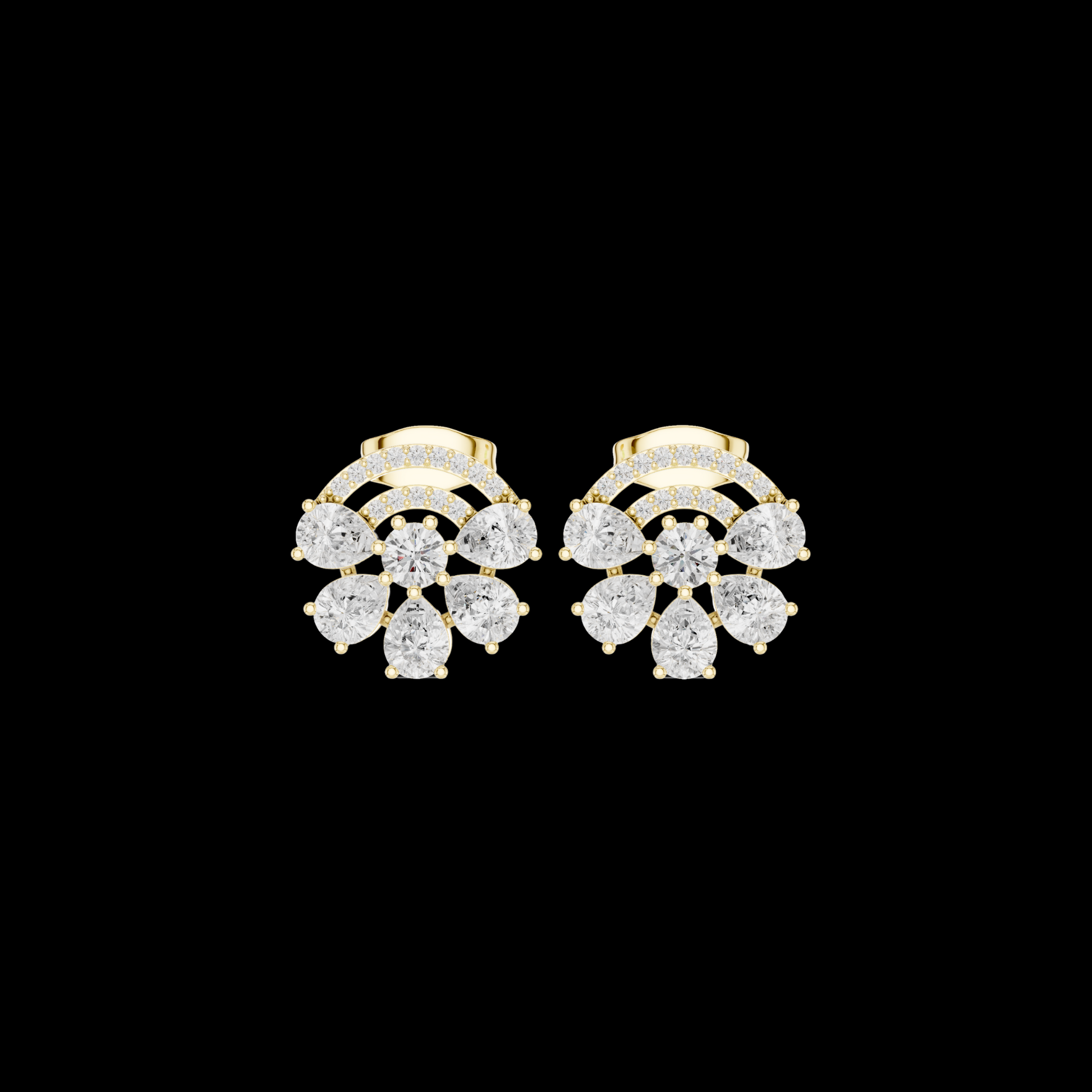 Channel timeless glamour with these artfully crafted diamond fan stud earrings, designed in and adorned with round brilliant-cut diamonds arranged in a graceful scalloped fan motif. A delicate pavé diamond arc crowns the design, adding layered sparkle and architectural depth.Perfect for elevated everyday wear or statement evenings, these luxury diamond studs blend vintage-inspired elegance with modern craftsmanship. Their radiant symmetry and bold silhouette make them an exquisite choice for those who appreciate refined artistry, brilliance, and enduring style.