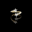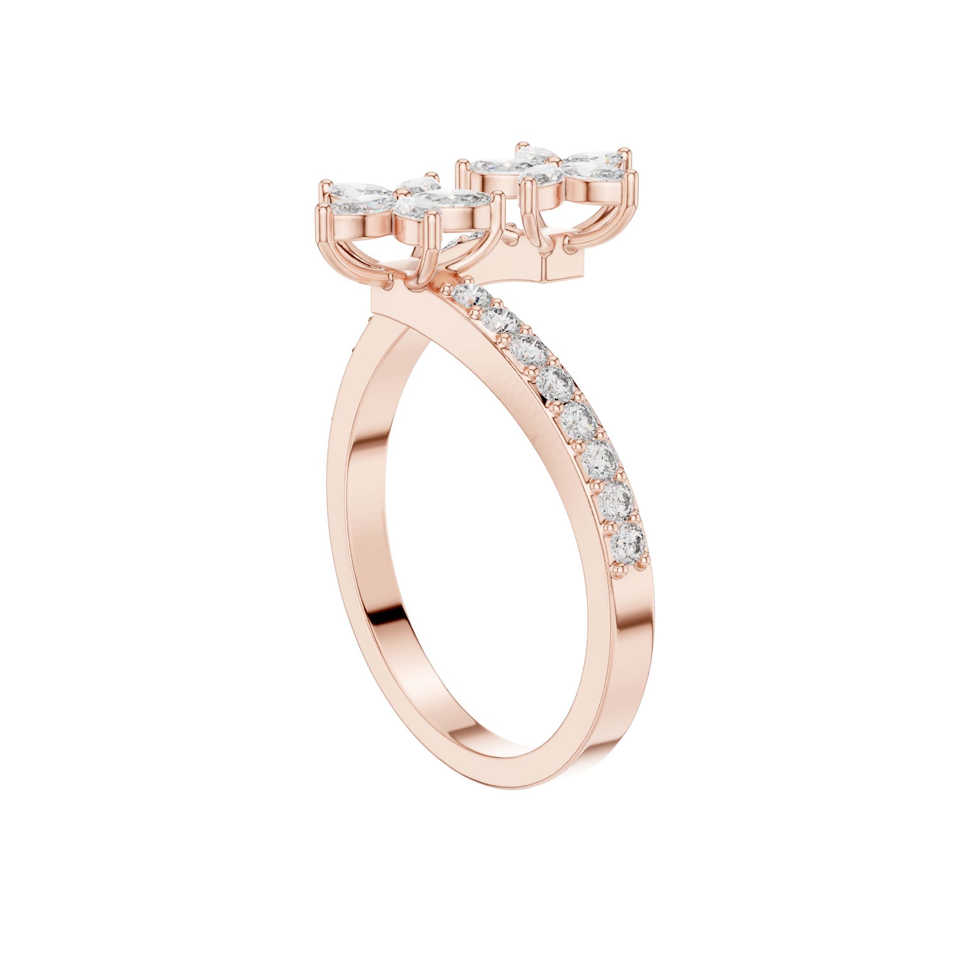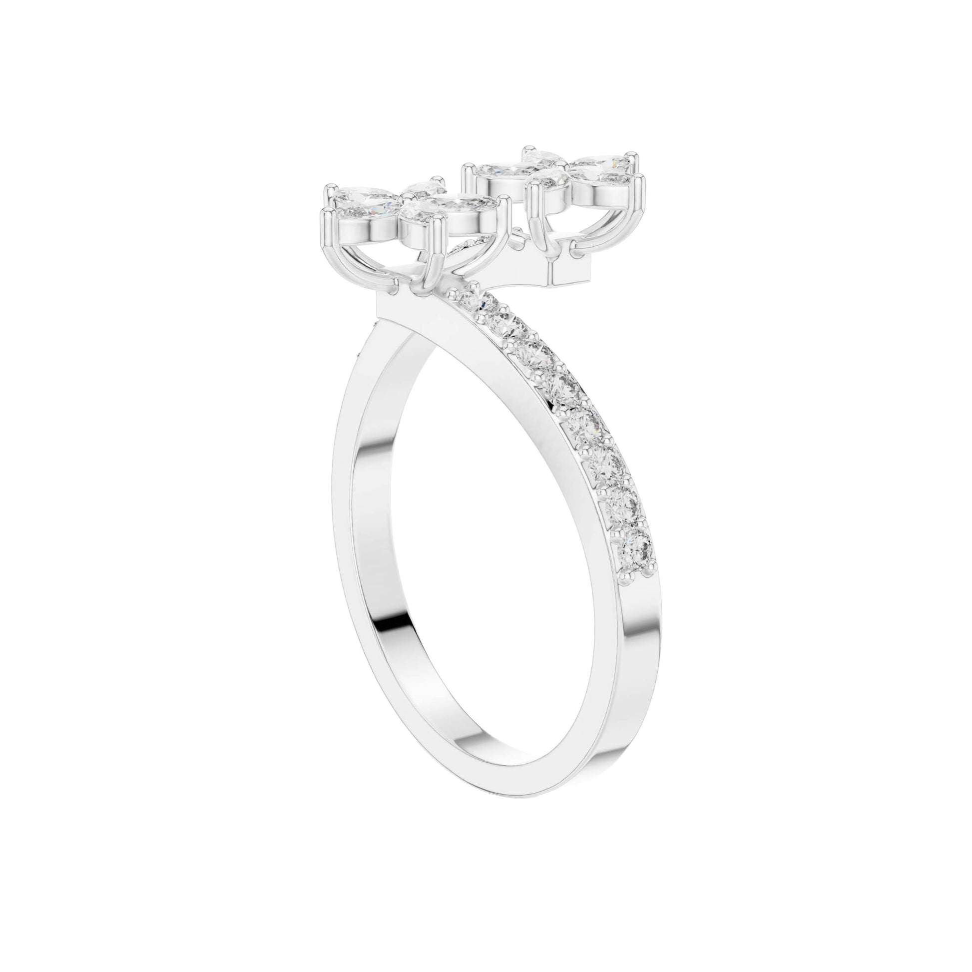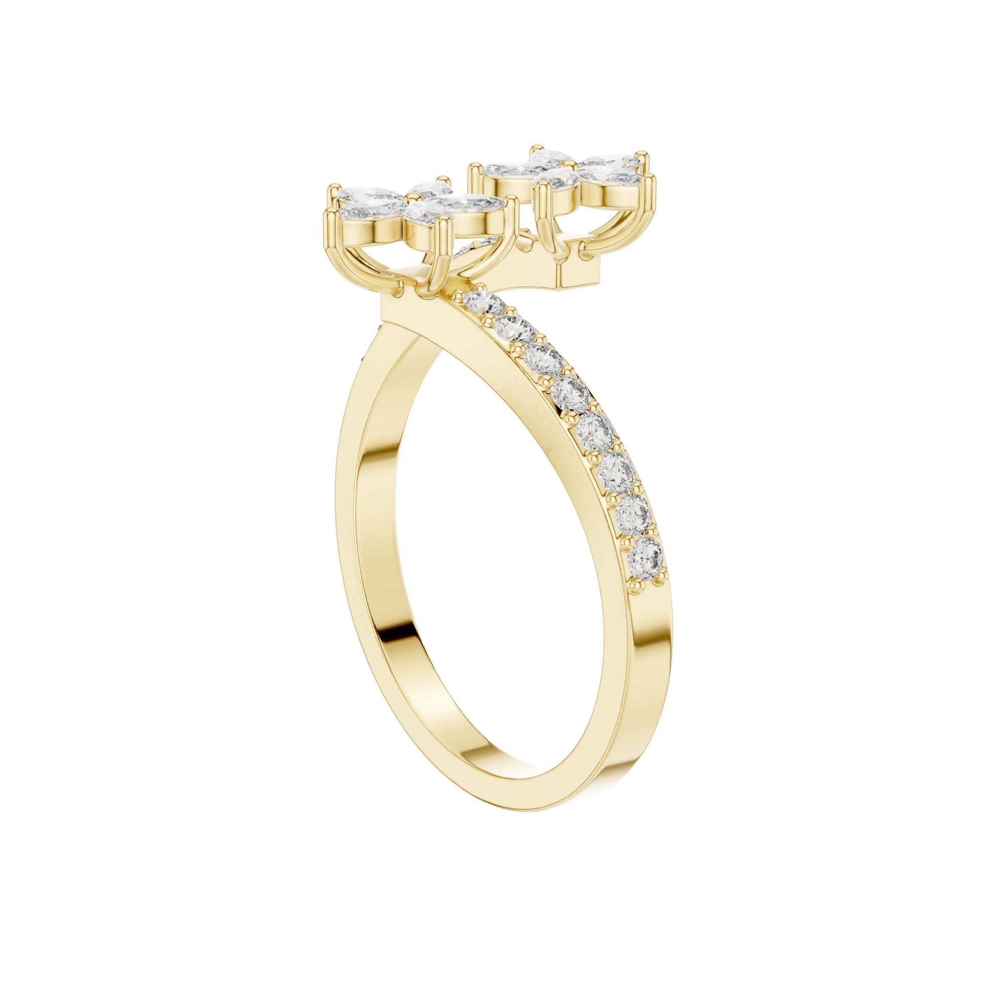 This elegant open ring is crafted in radiant gold and features two delicate floral motifs formed by sparkling marquise-cut diamonds, creating a graceful, nature-inspired design. Each flower is complemented by a slim pave-set diamond band that adds brilliance and refined detail from every angle. The open silhouette offers a modern, adjustable-style look while maintaining timeless sophistication, making this ring a beautiful statement piece for everyday elegance or a unique addition to a fine jewelry collection by Ivevar.