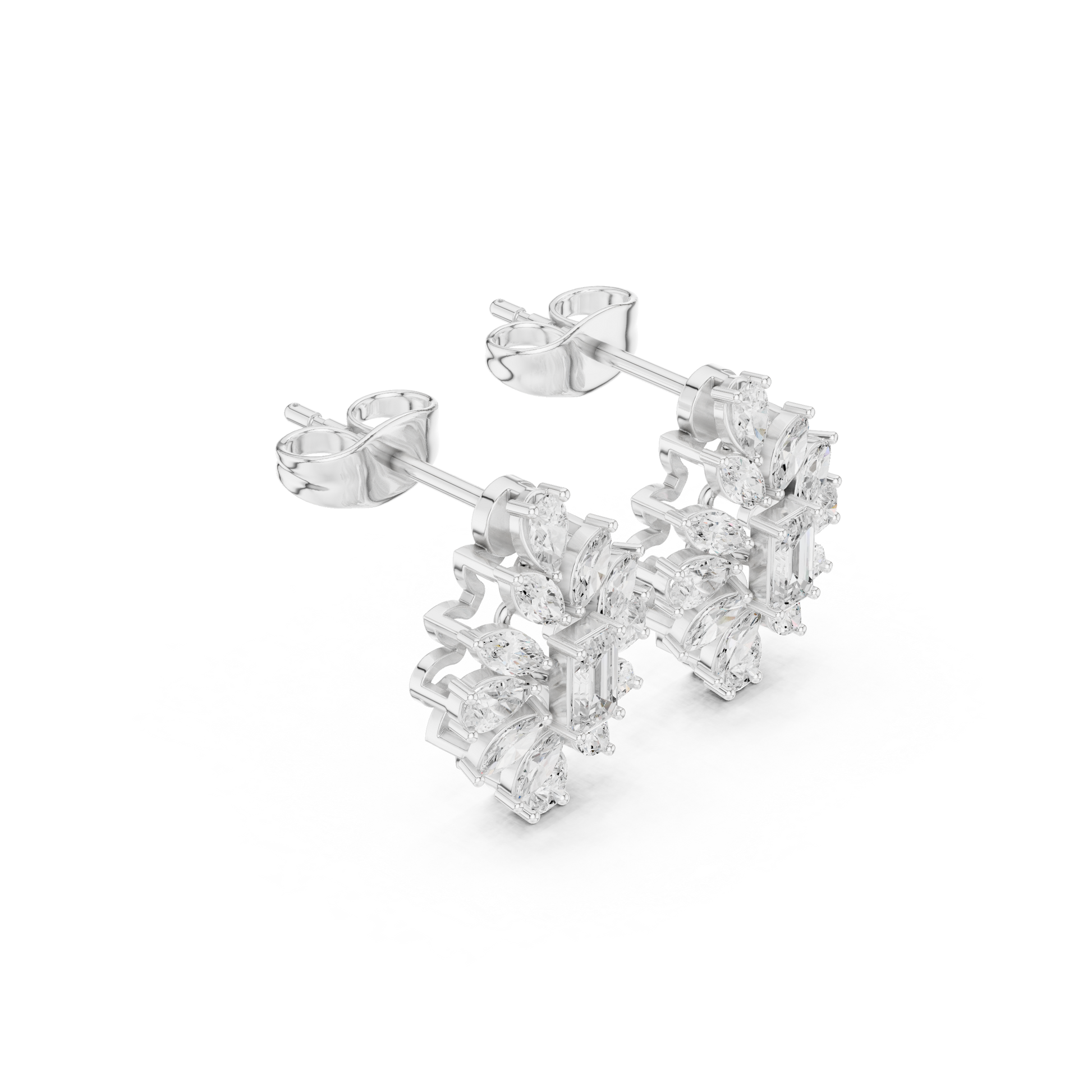 Make a bold yet elegant statement with these luxury emerald-cut diamond floral earrings, crafted in premium 18k yellow gold. The striking emerald-cut center diamond is surrounded by marquise-cut diamonds arranged in a radiant flower-inspired design, delivering exceptional brilliance and symmetry. Designed for women who appreciate distinctive design, high-shine diamonds, and luxury fine jewelry.