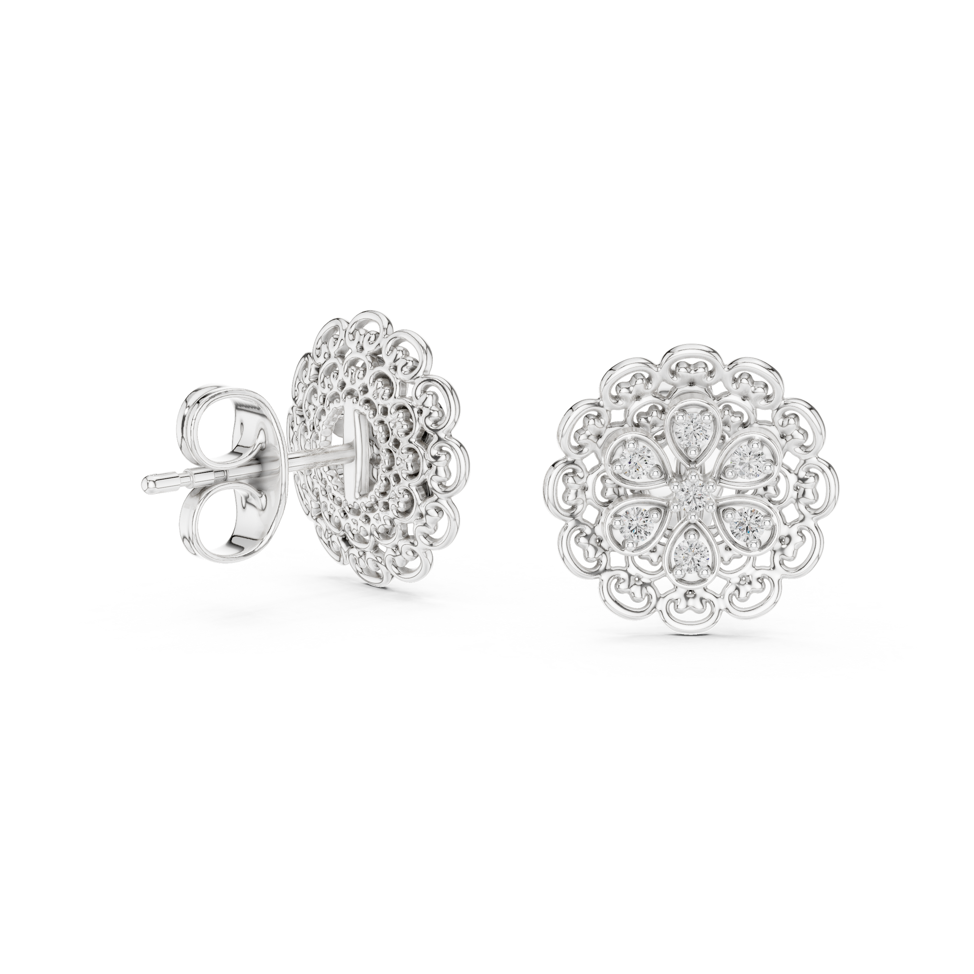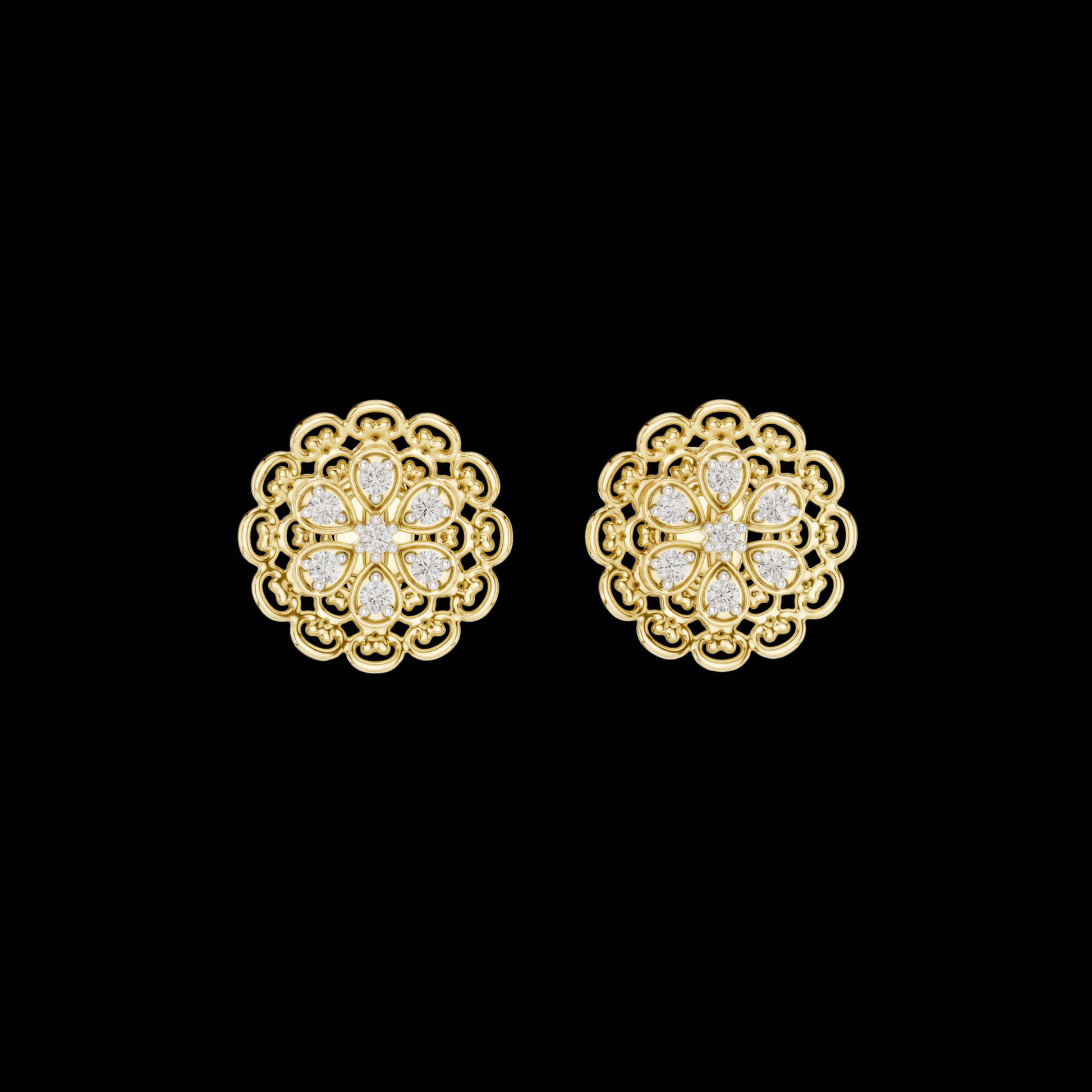 Celebrate classic artistry with these royal bloom-inspired diamond stud earrings, crafted to showcase exceptional craftsmanship and superior diamond quality. The design highlights a delicate openwork floral pattern, enriched with round brilliant cut diamonds that sparkle brilliantly from every angle.The finish framework adds warmth and depth, while the symmetrical floral arrangement reflects heritage elegance blended with modern sophistication.