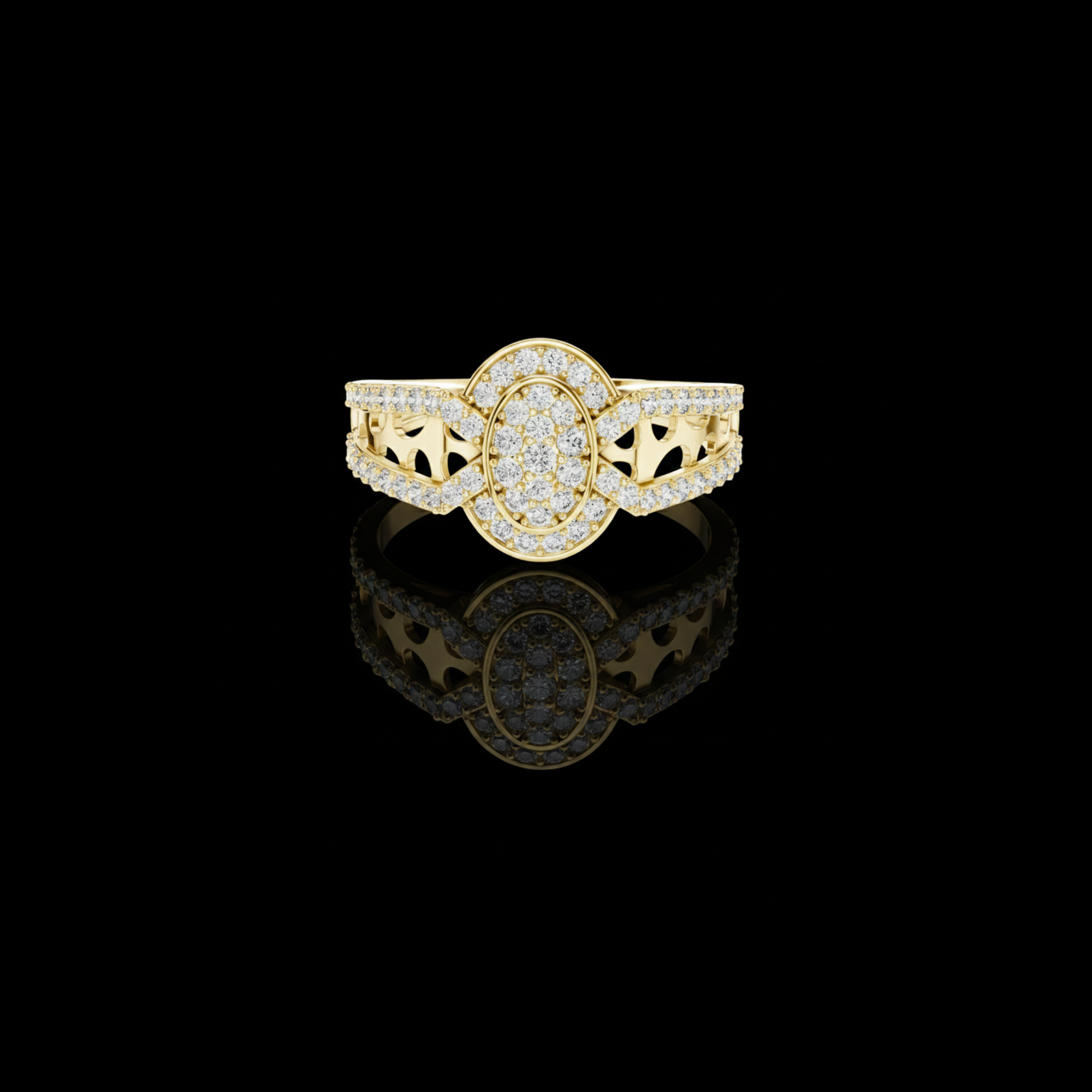 This breathtaking ring from Ivevar Luxury showcases a radiant oval-shaped halo design adorned with brilliant round-cut diamonds that sparkle from every angle. the split shank band features intricate openwork and pave set diamonds, creating a perfect balance of elegance and modern luxury. The elevated double-halo setting enhances brilliance while offering a bold yet refined statement for engagements, anniversaries, or special celebrations.