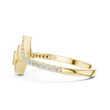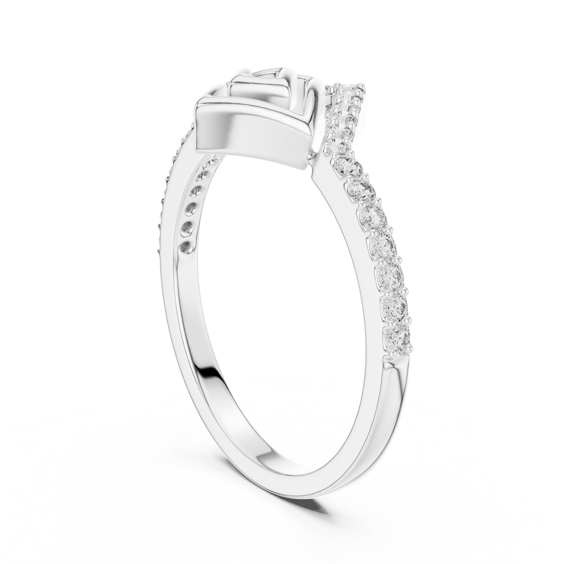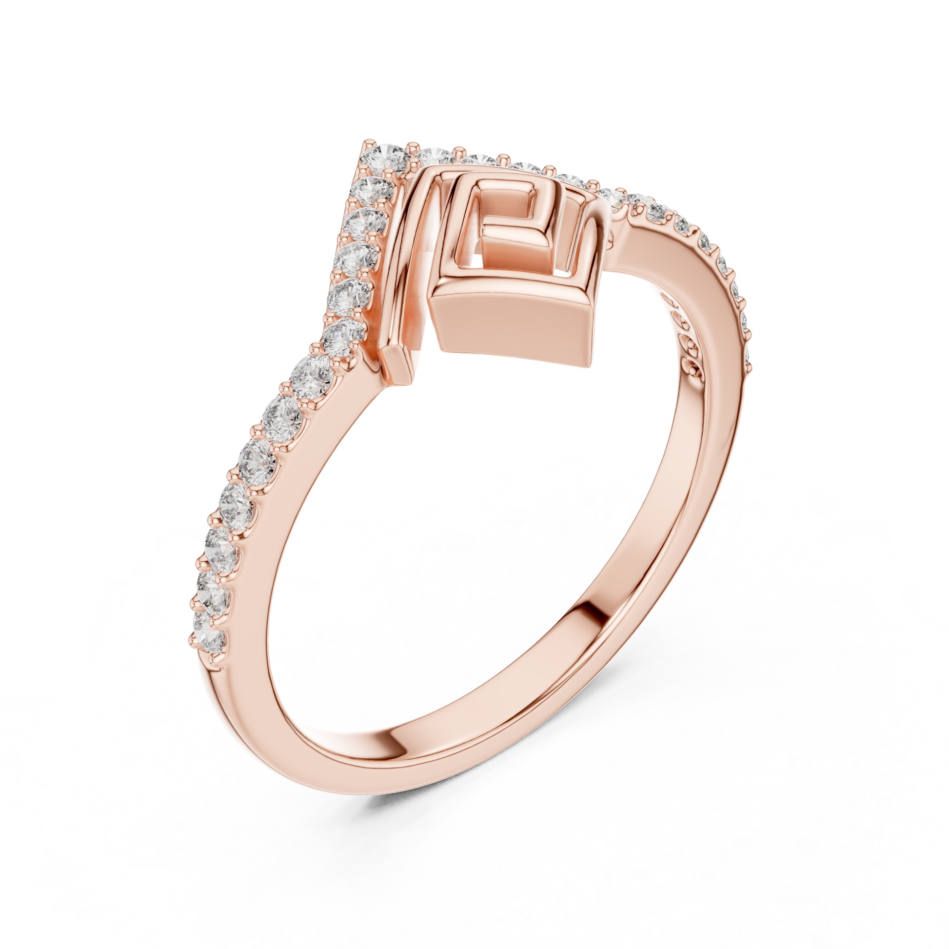 This sophisticated diamond ring blends contemporary artistry with timeless luxury. The shimmering chevron-shaped pavé diamonds form a graceful crown, while the suspended geometric maze centerpiece adds depth, symbolism, and modern flair. Designed with precision and balance, this ring reflects strength, direction, and individuality, making it a perfect statement piece for those who appreciate architectural beauty and refined craftsmanship.
