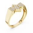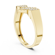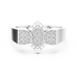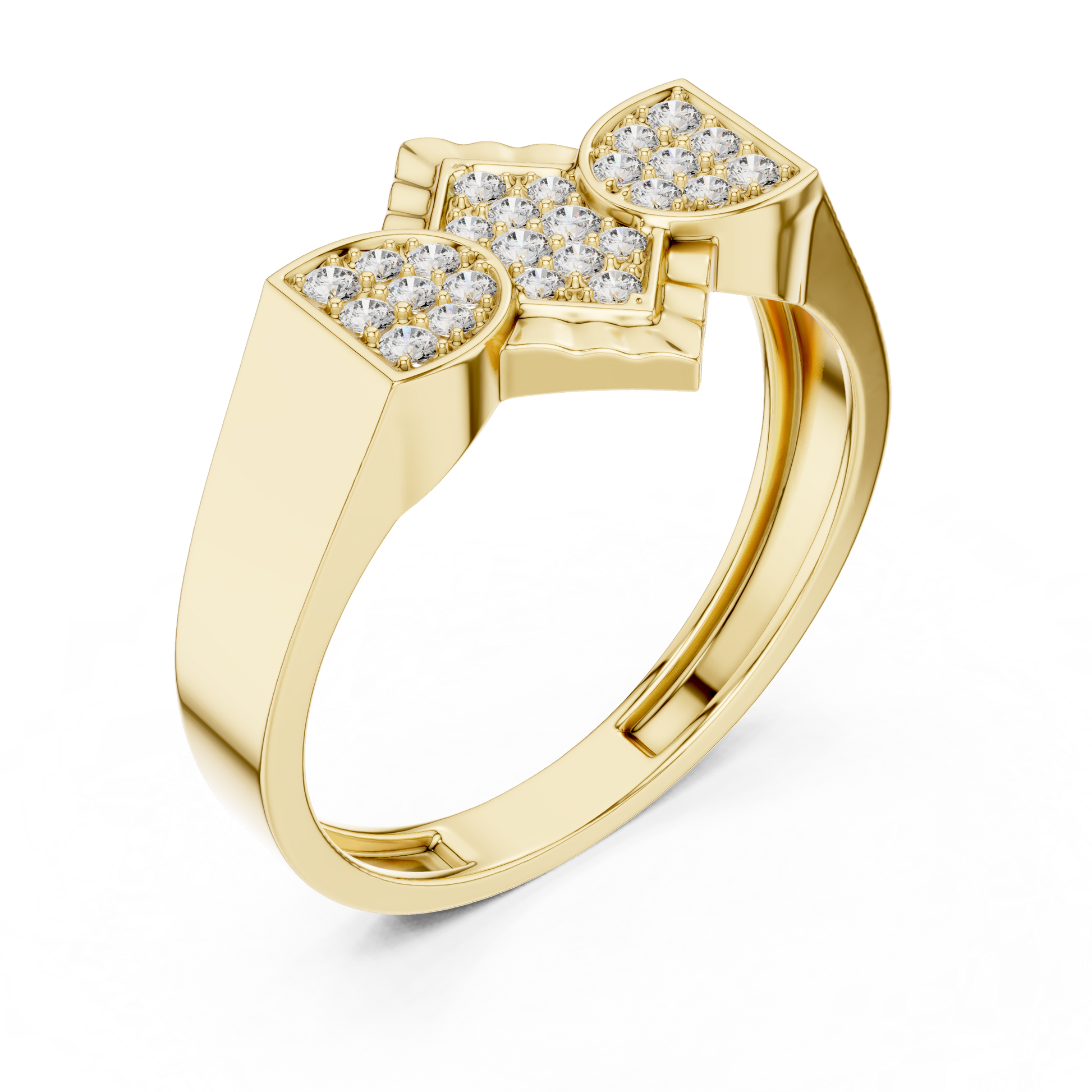 Crafted to make a powerful impression, this exquisite round diamond ring from Ivevar Luxury showcases a bold triple-cluster geometric design that blends modern architecture with timeless elegance. The ring features three distinct diamond pave shapes set in high-polish  gold, creating depth, brilliance, and a striking visual balance. Designed with a wide, smooth gold band, it offers both durability and supreme comfort for everyday luxury wear.