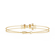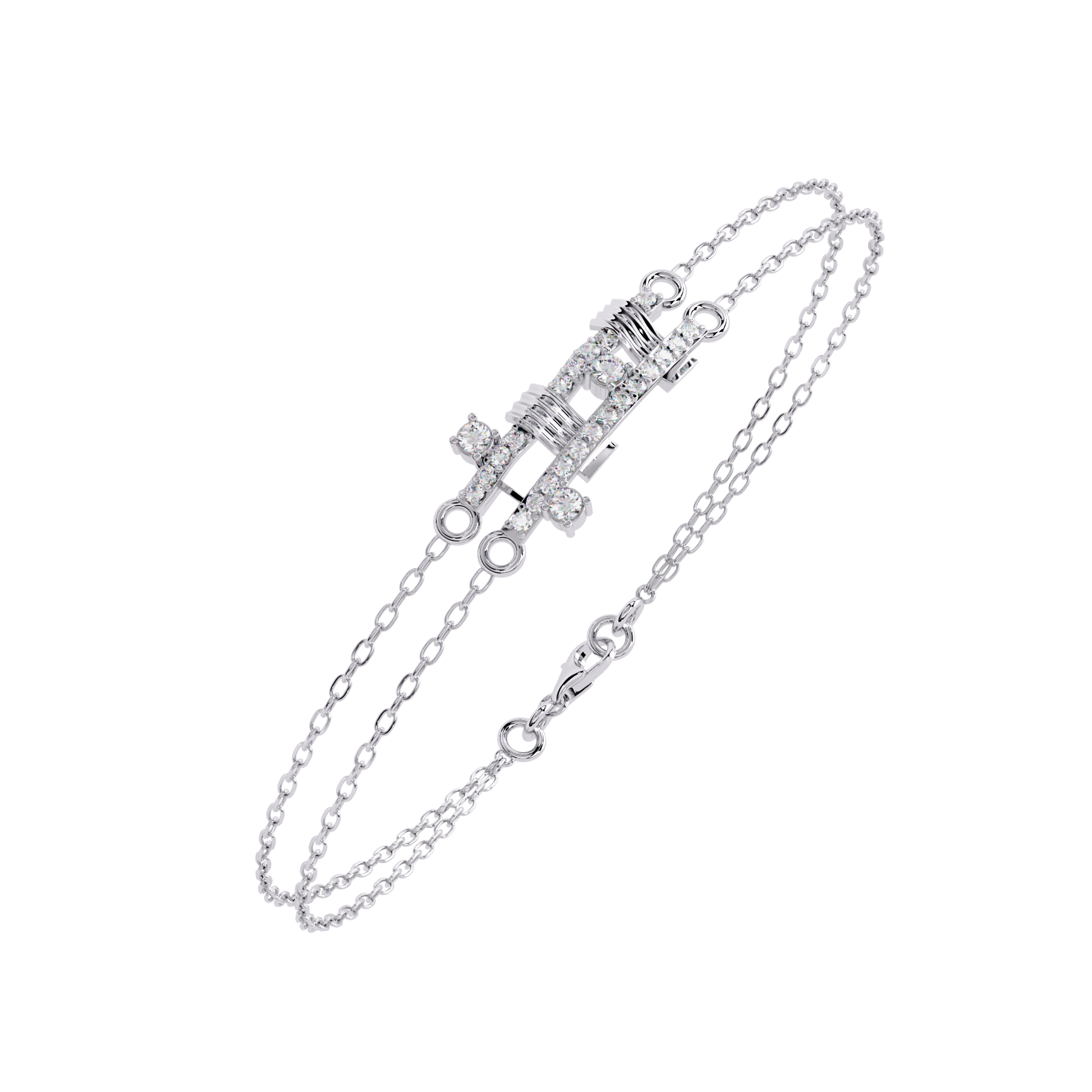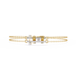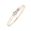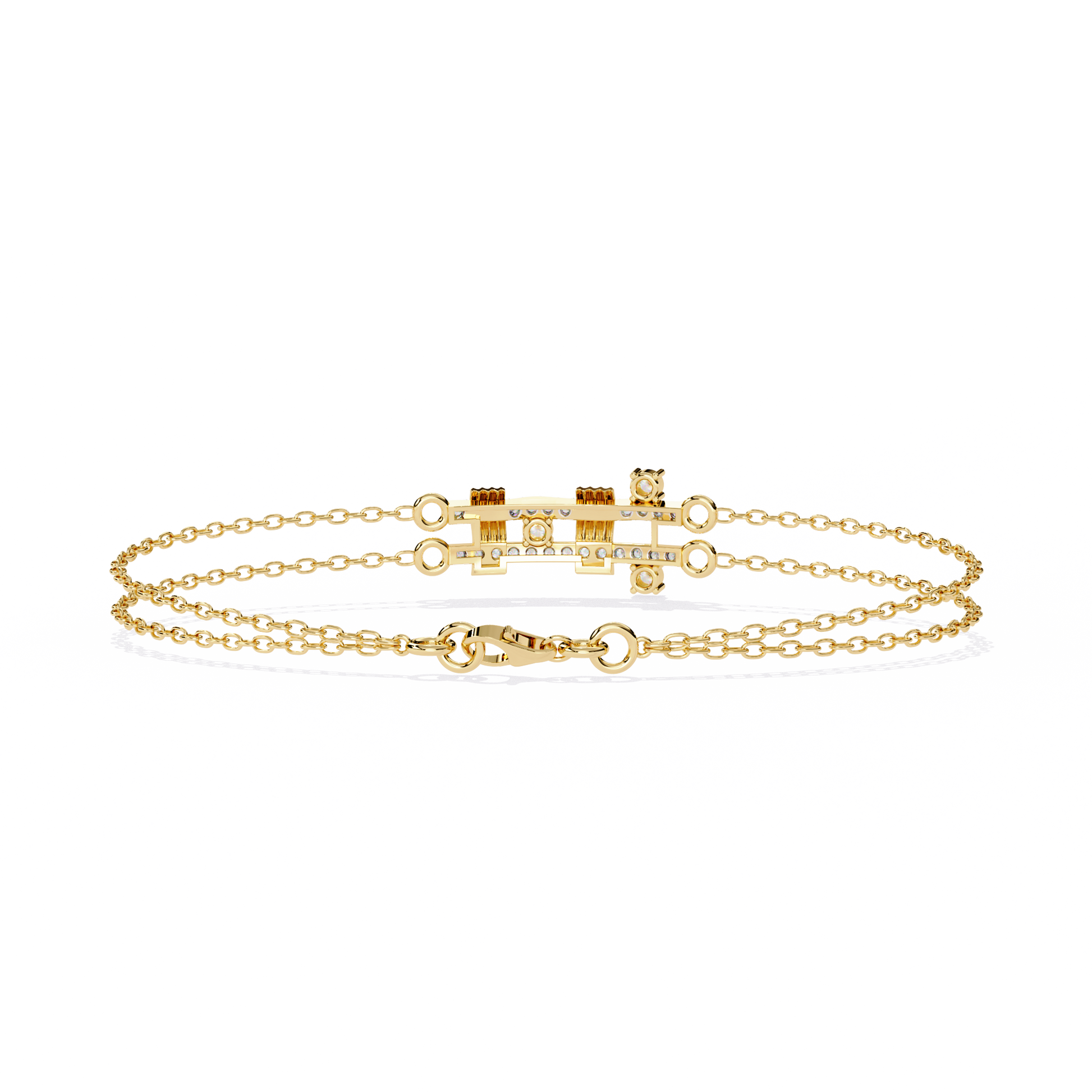 This elegant bracelet showcases a double-layered gold chain that adds depth and sophistication to your wrist. The centerpiece features geometric motifs adorned with brilliant diamonds, enhancing its luxurious appeal. Crafted with precision, this bracelet effortlessly combines modern design with timeless elegance, making it perfect for both special occasions and everyday wear.