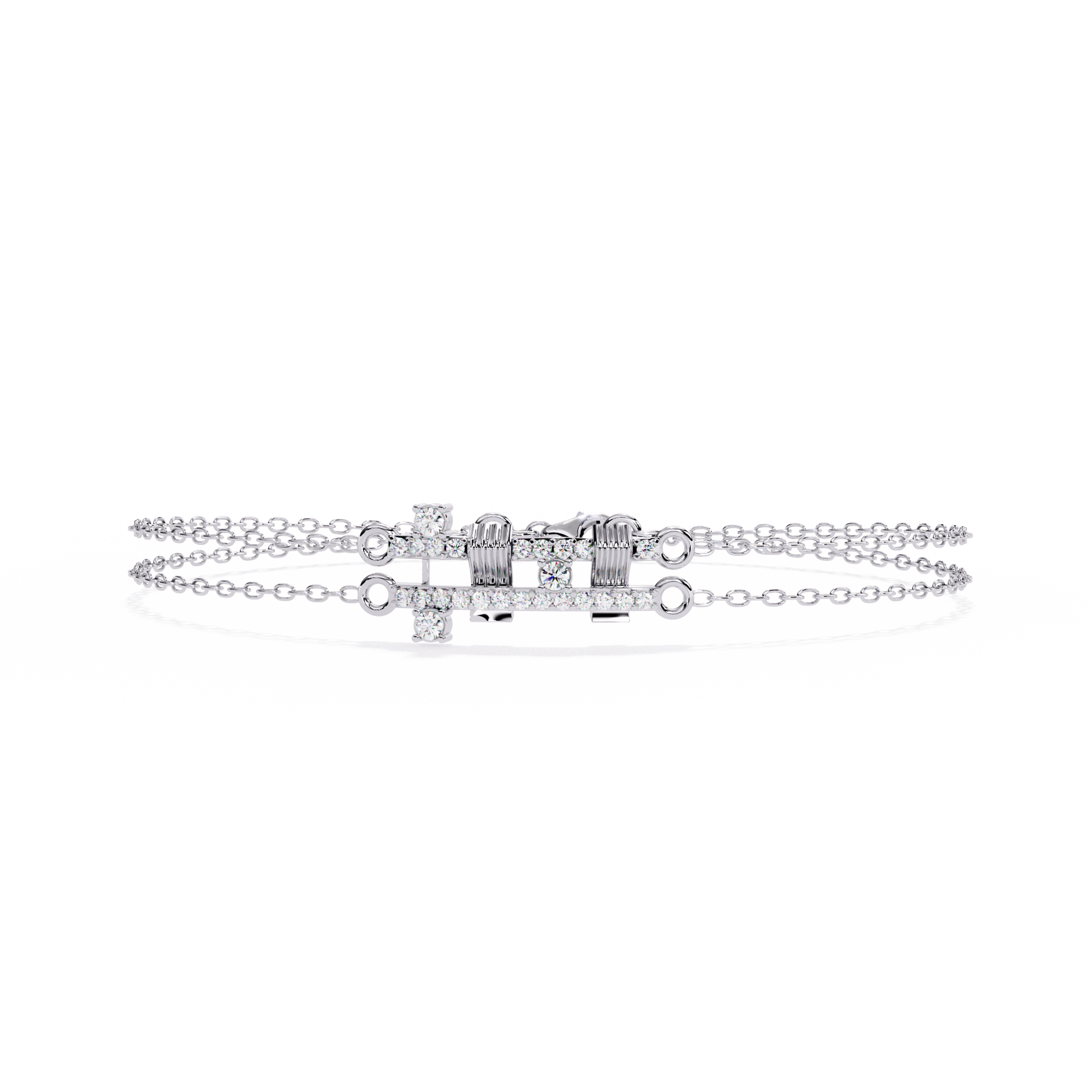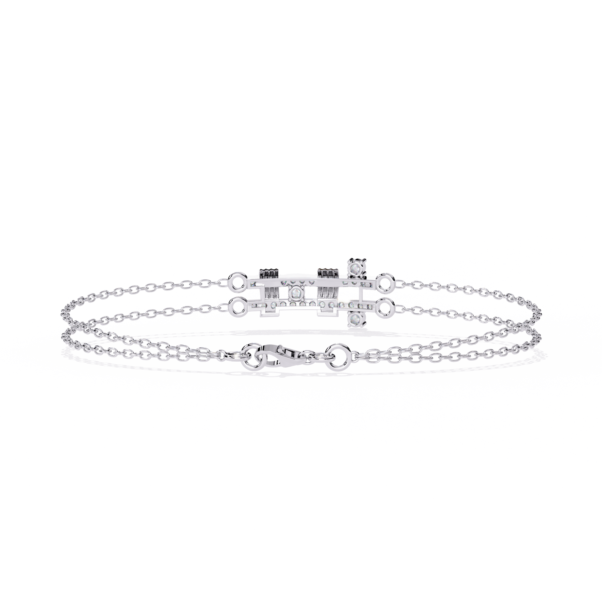 0.27 TCW Exquisite Moissanite Double Layered Bracelet with Sparkling Diamond Studded Geometric Motif and Delicate Chain Design