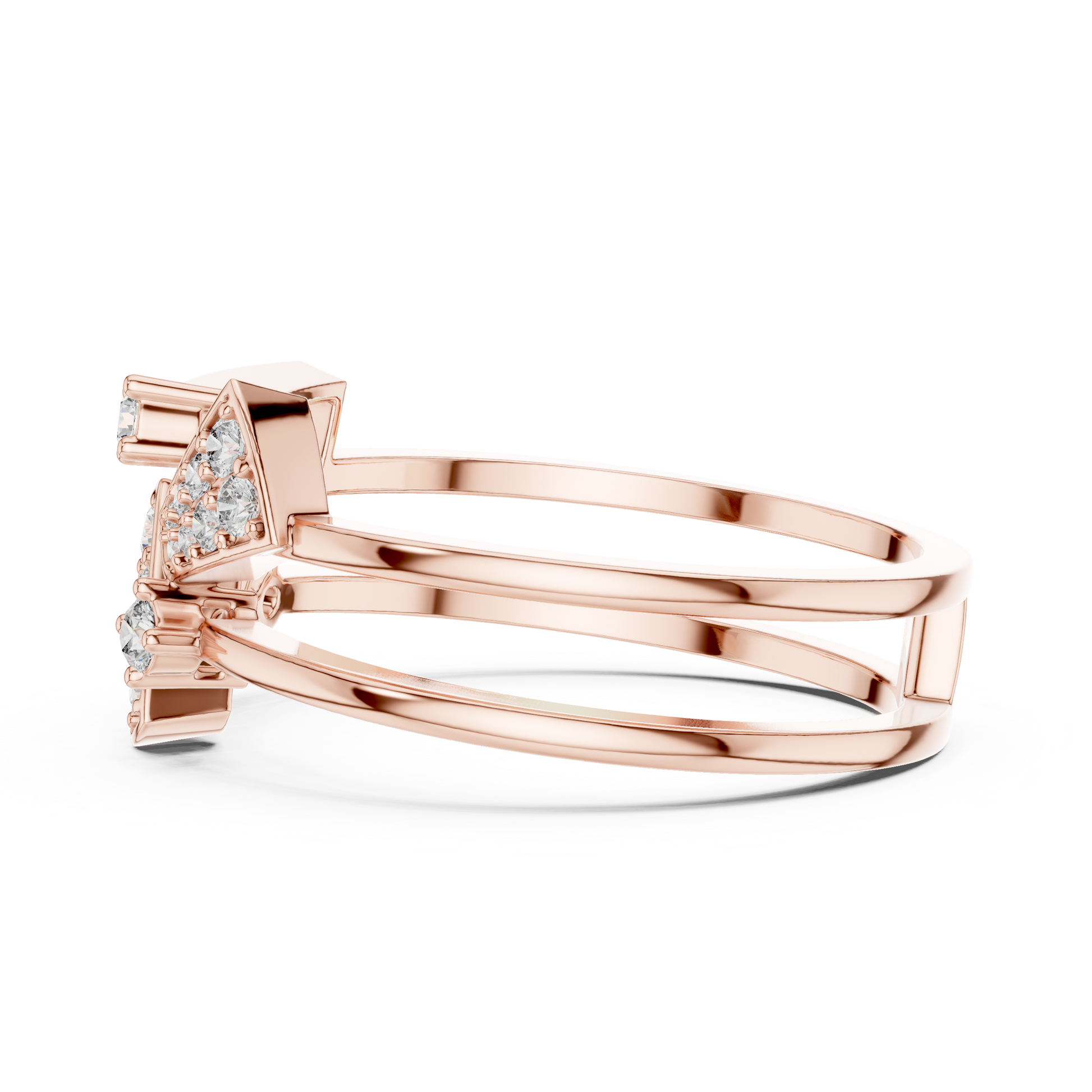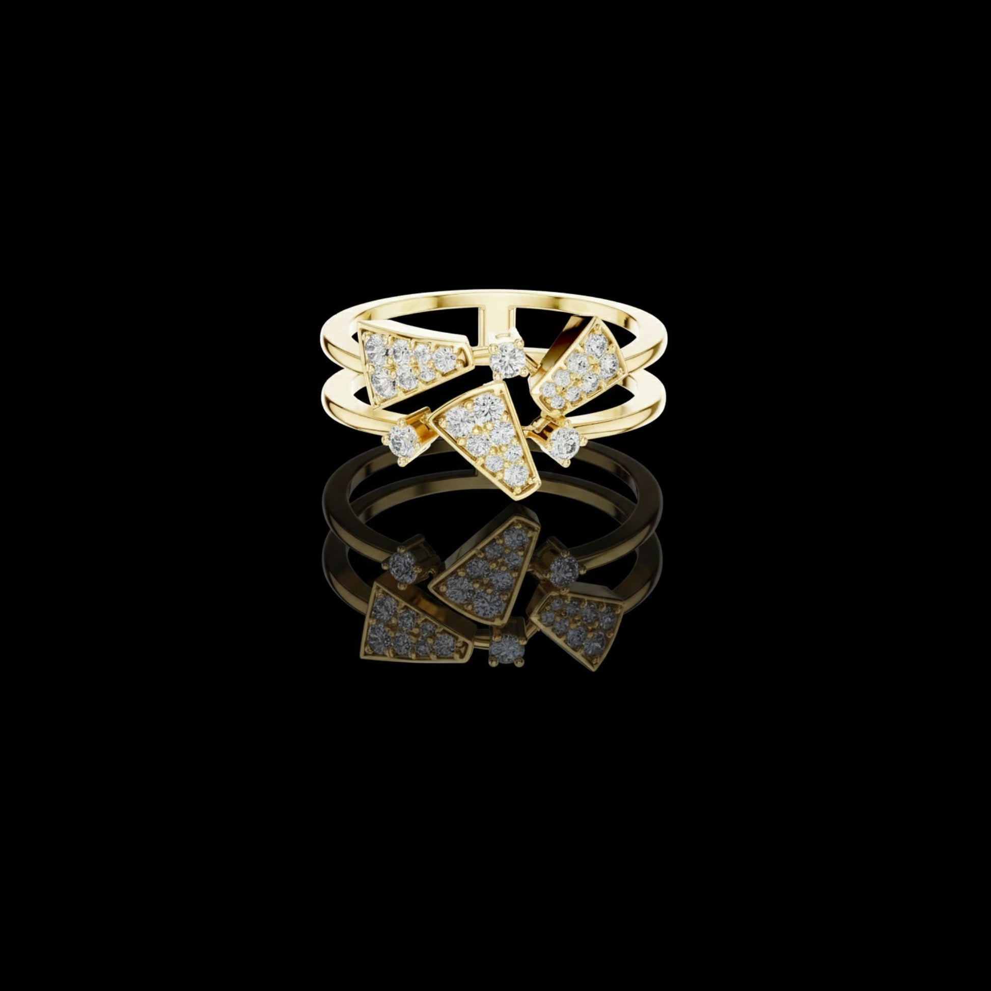 Bold, modern, and unmistakably luxurious, this gold geometric diamond ring is designed for those who love contemporary elegance with an artistic edge. Featuring a refined double-band structure, the ring is highlighted by striking triangle-shaped pavé diamond motifs, delicately balanced with brilliant round diamonds for added sparkle. Perfect as a fashion-forward statement piece or a distinctive everyday luxury, this ring embodies modern craftsmanship and timeless sophistication, proudly crafted under the signature excellence of Ivevar Luxury.