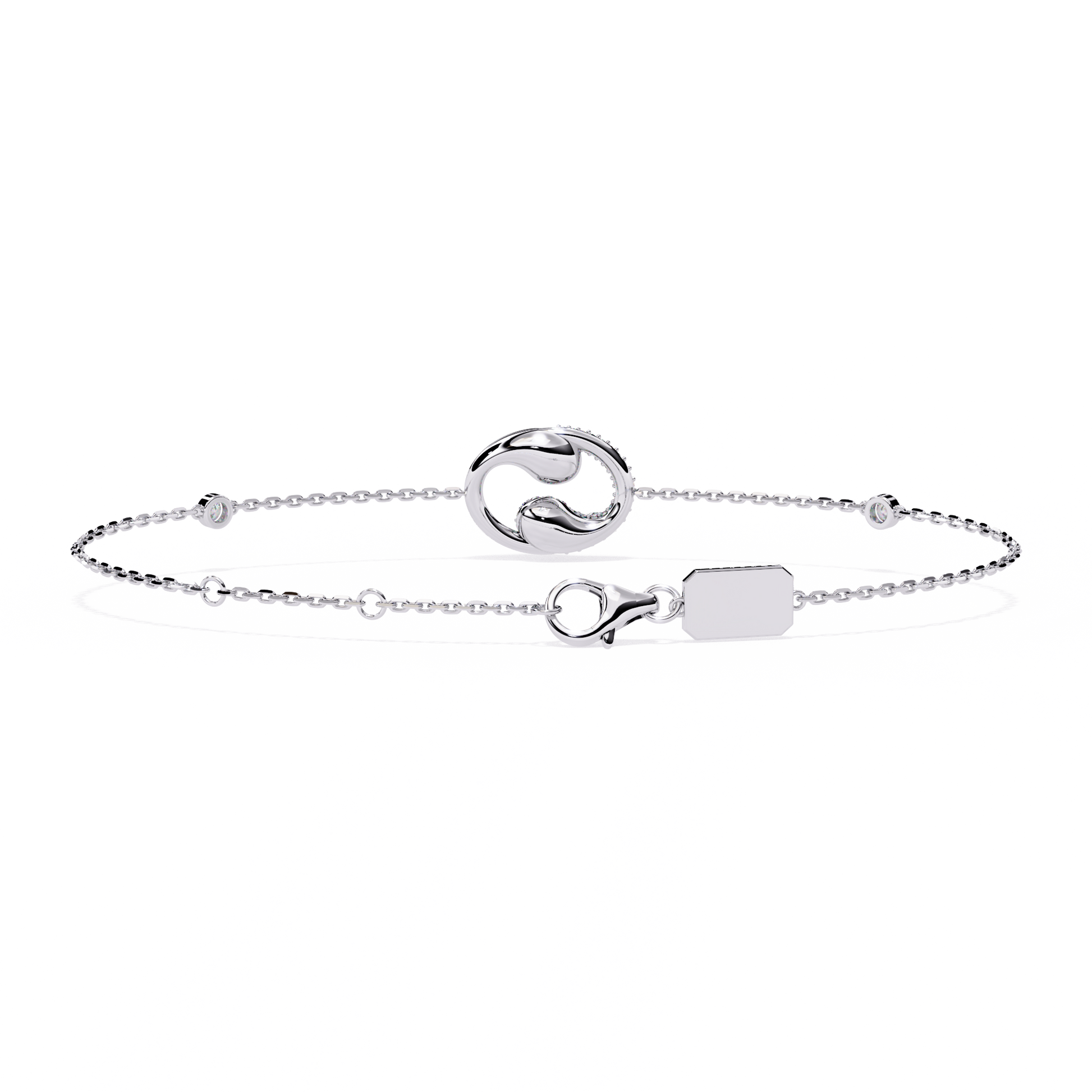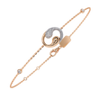 This exquisite bracelet showcases timeless elegance with its delicate chain design crafted in radiant gold. At its center lies an interlocking infinity-inspired motif, adorned with shimmering pavé-set diamonds that add a touch of brilliance and sophistication. The subtle diamond accents along the chain enhance its refined charm, making it a perfect piece for both everyday wear and special occasions.