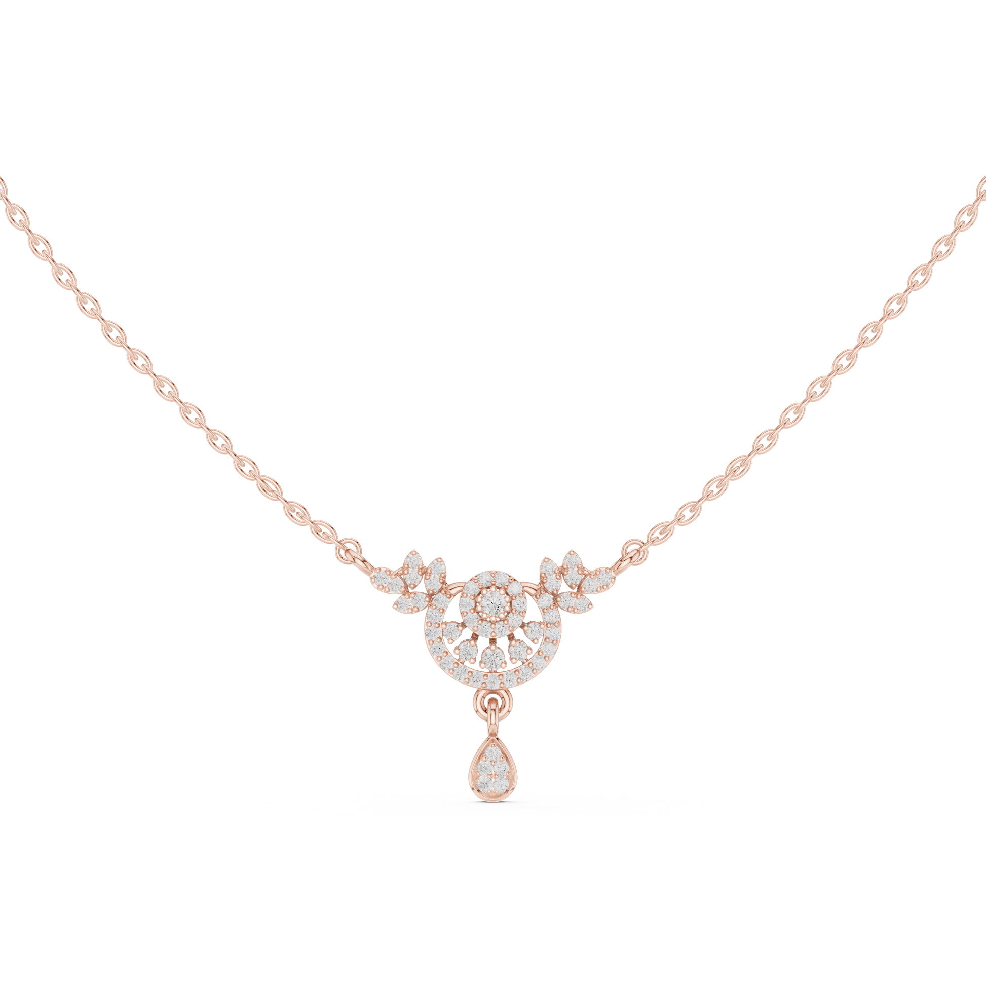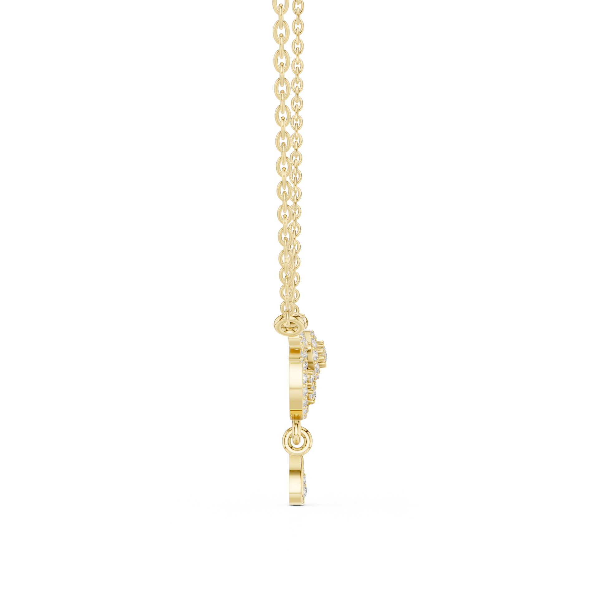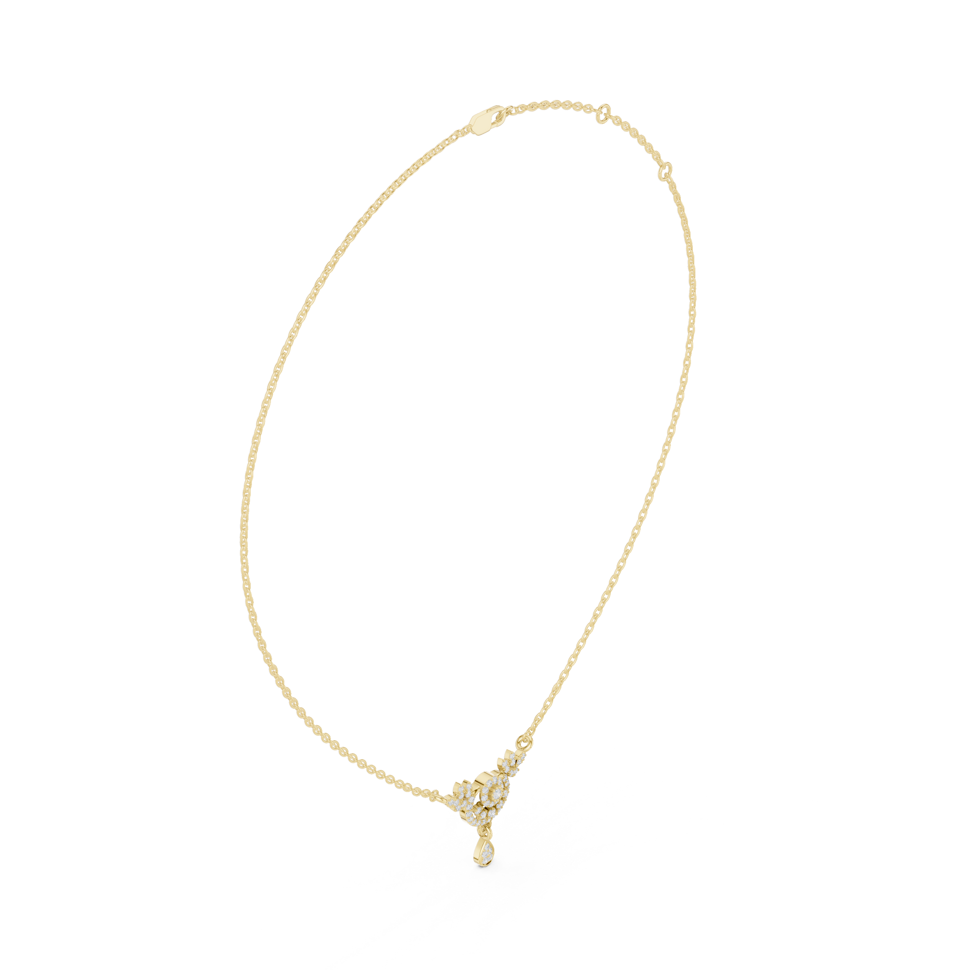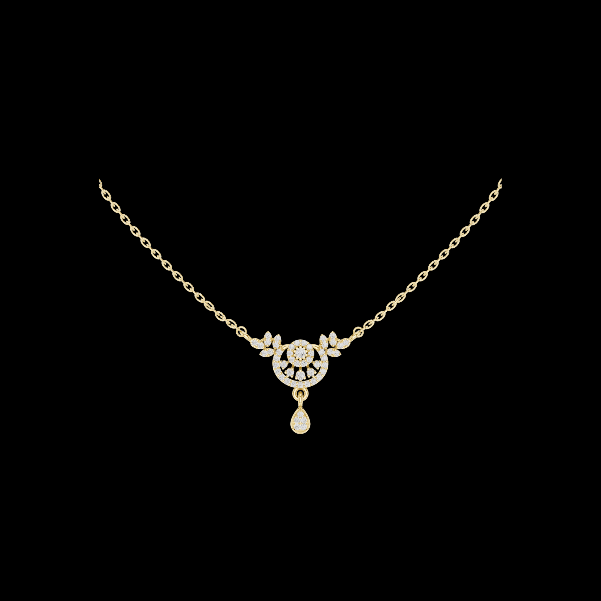 Experience timeless elegance with this exquisitely crafted gold diamond pendant designed to radiate sophistication and grace. The centerpiece features a crescent moon silhouette adorned with sparkling diamonds, symbolizing beauty and harmony, while delicate floral leaf accents add a touch of natural charm. A brilliant teardrop diamond charm gracefully dangles below, creating subtle movement and an eye-catching sparkle with every turn.