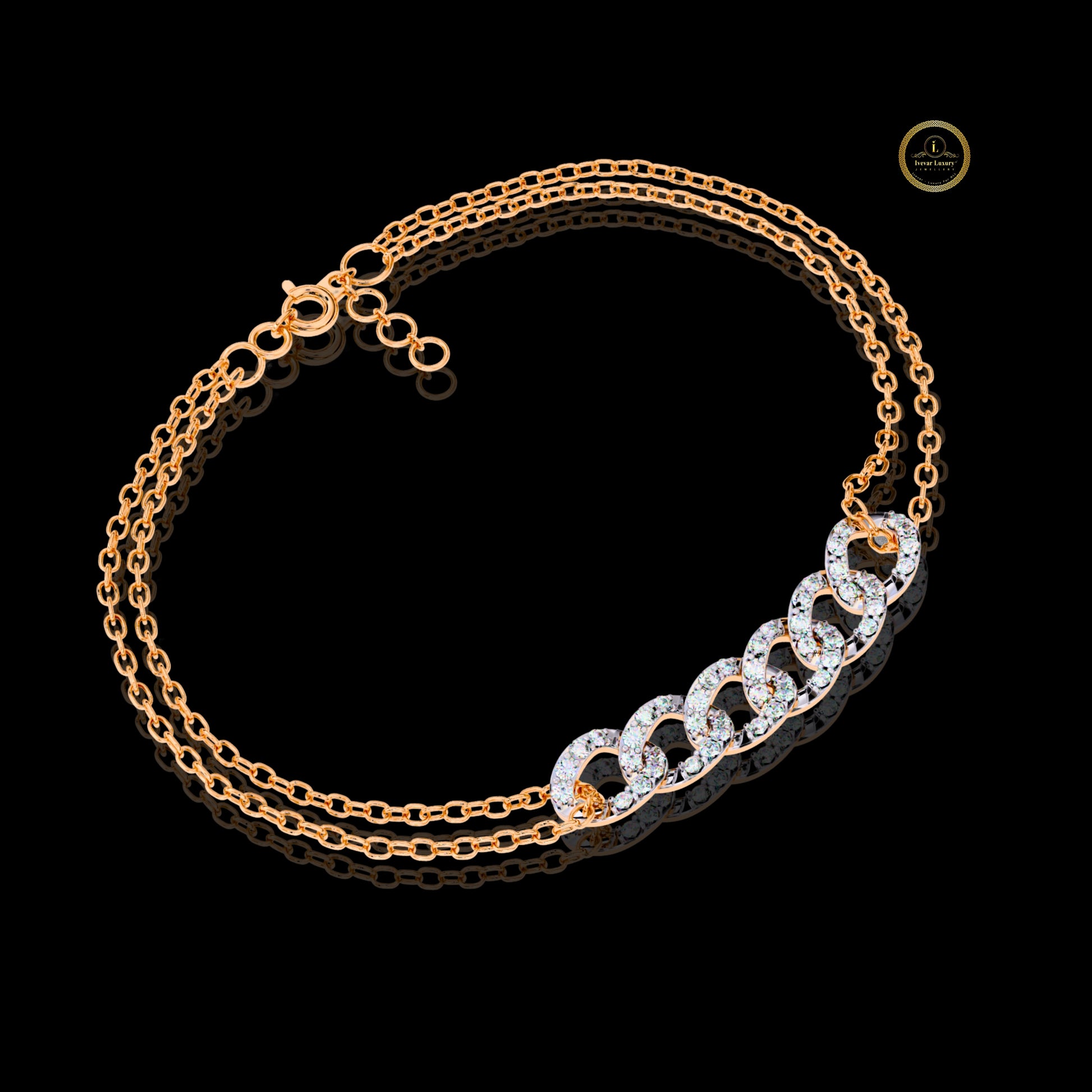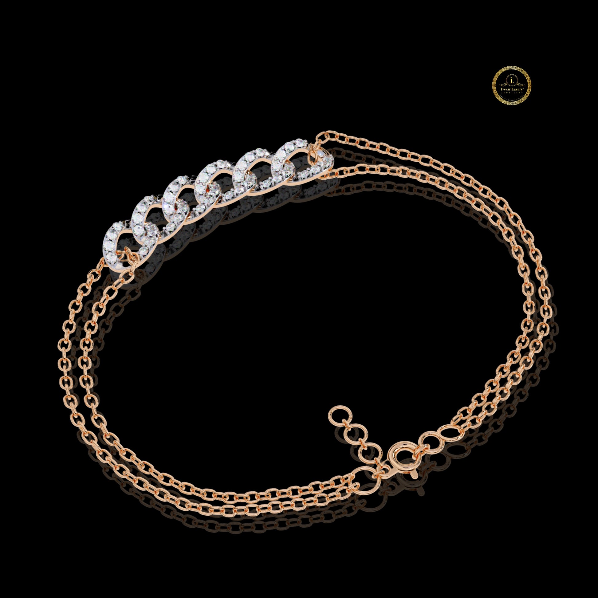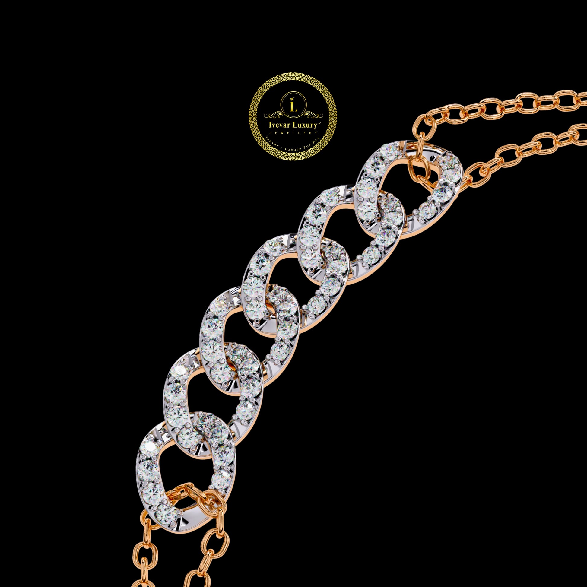 A stunning fusion of craftsmanship and elegance, this gold chain-link bracelet showcases a contemporary design enriched with luxurious sparkle. Every link is meticulously set with shimmering natural diamonds, creating a continuous stream of brilliance around the wrist. The warm glow of yellow gold enhances the radiance of the diamonds, offering an elevated, high-end appeal.