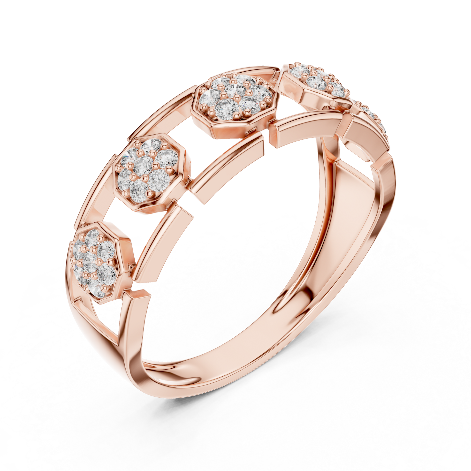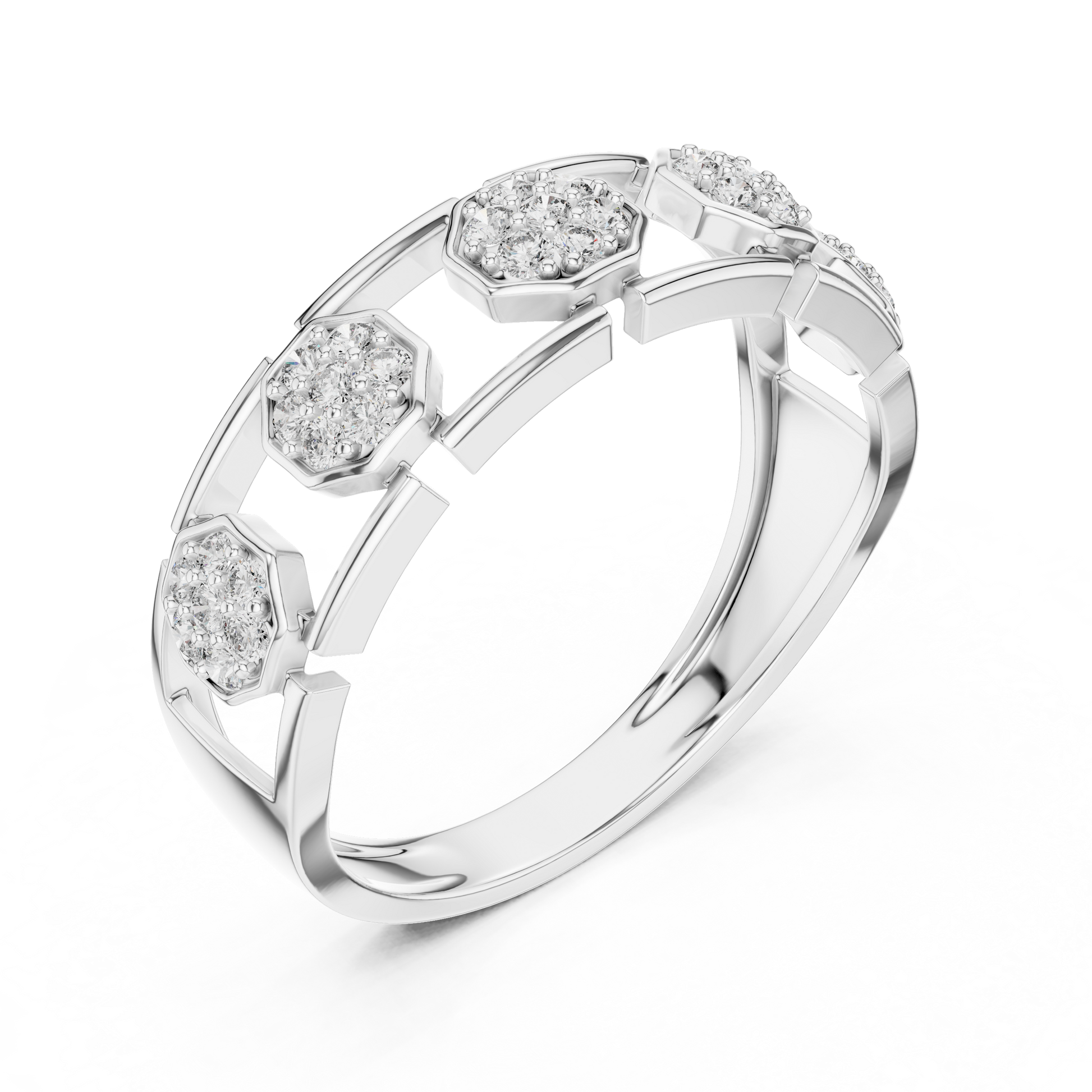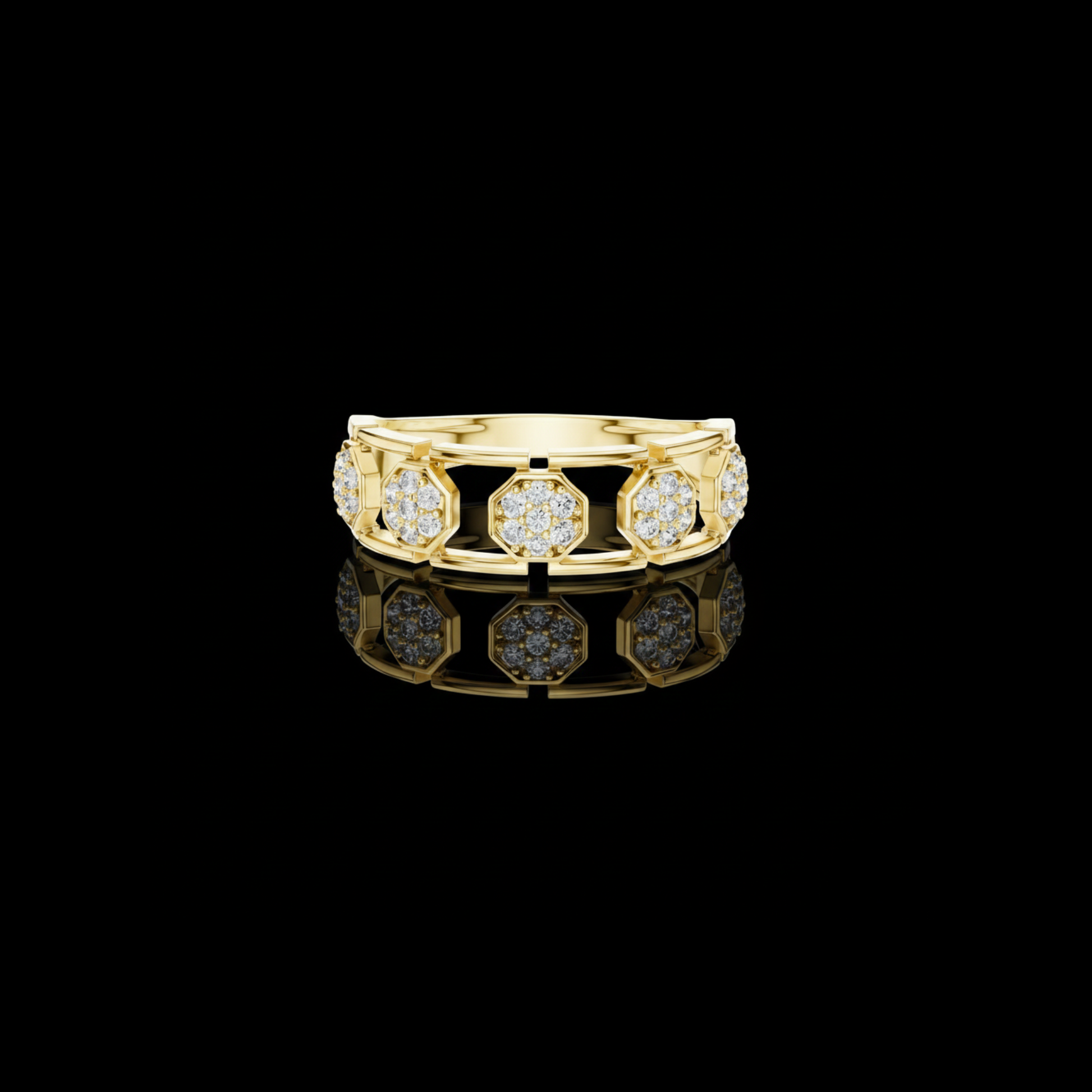 This elegant ring from IVEVAR Luxury features a striking geometric design highlighted by shimmering diamond clusters set in a high-polish gold finish. The openwork band adds a modern, airy feel while enhancing comfort and wearability. Its bold yet refined silhouette makes it perfect for both everyday luxury and special occasions. Designed to stand out, this ring reflects timeless craftsmanship with a contemporary edge.