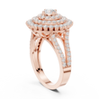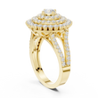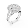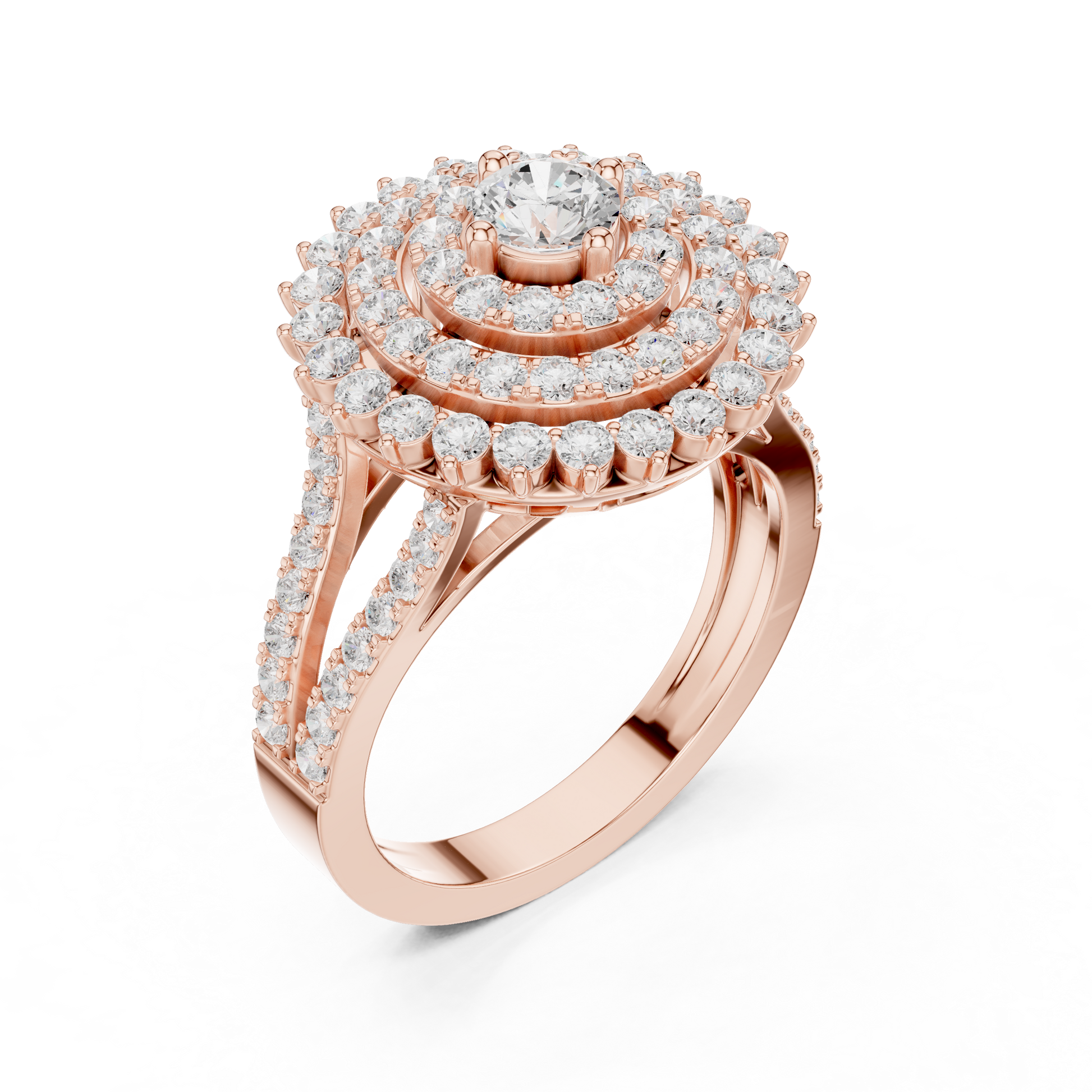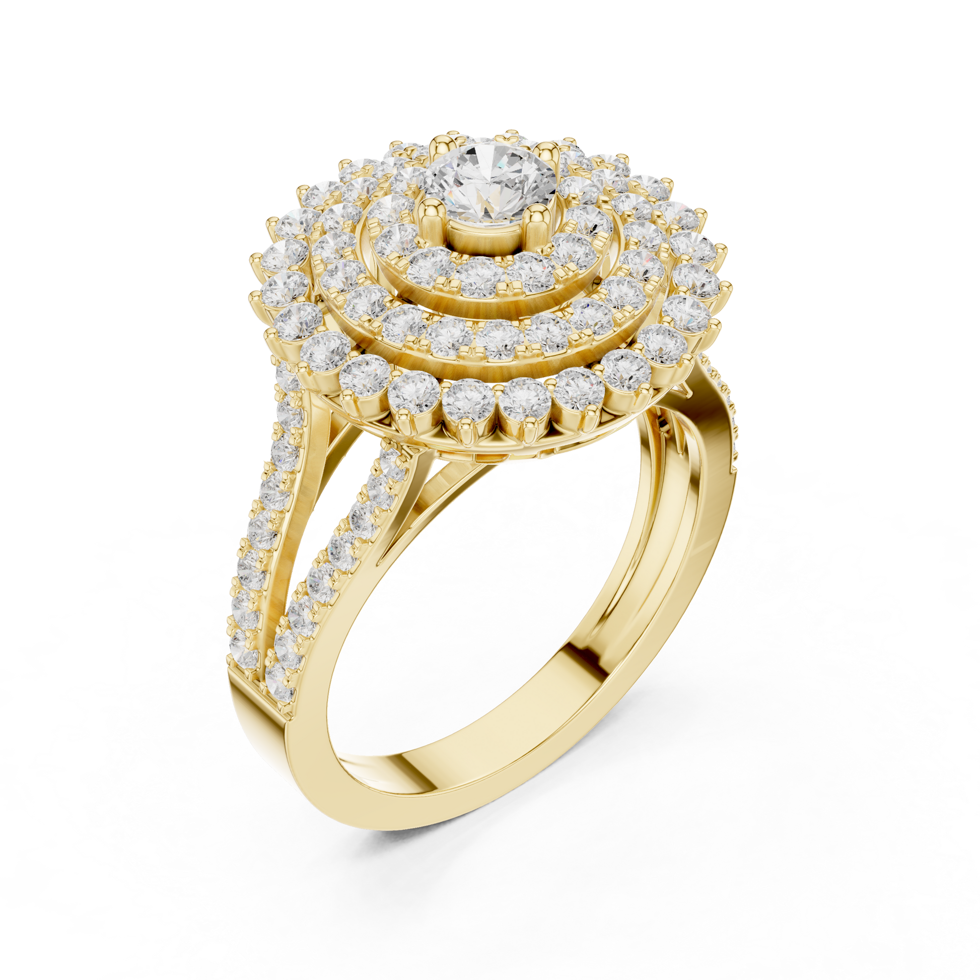 This exquisite ring is a true masterpiece of luxury craftsmanship, designed to captivate with its breathtaking radiance. At its heart lies a brilliant round-cut center diamond, framed by concentric halo layers of sparkling diamonds that amplify its fire and brilliance. Set in  the intricate arrangement forms a stunning sunburst-like motif, blending bold glamour with refined sophistication. Perfect for special occasions, proposals, or milestone celebrations, this ring embodies opulence, timeless beauty, and unforgettable shine.