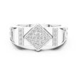 This bold geometric design from IVEVAR LUXURY features a striking square diamond cluster set in a square style orientation, creating a powerful and modern statement. The center is adorned with multiple round brilliant diamonds in a pavé setting, enhanced by diamond-accented side panels that add depth and symmetry. the wide band showcases elegant openwork cutout detailing along the sides, blending architectural beauty with refined luxury.