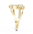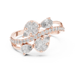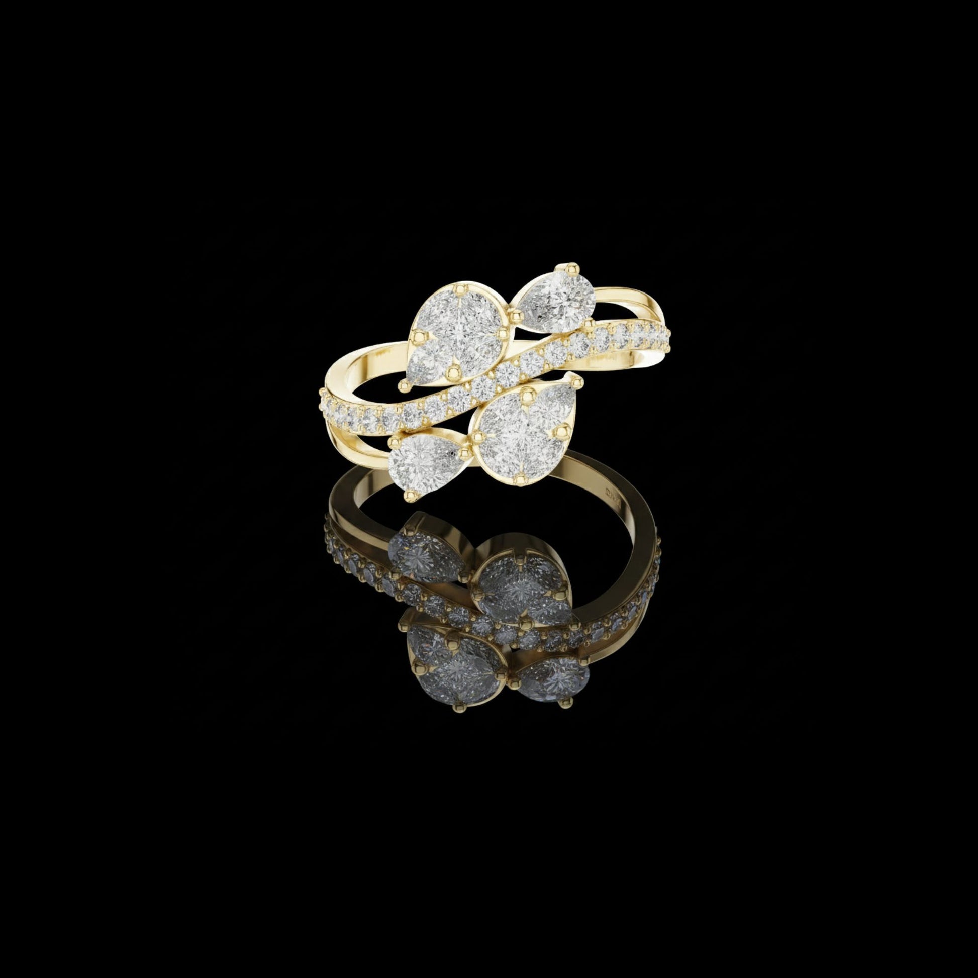 This captivating ring features an artistic overlap of pear-shaped and round diamonds, creating a dynamic wrap-style silhouette. Accented with pave-set diamonds along dual gold bands, the design delivers layered brilliance and modern elegance. Perfect as a statement piece or a unique engagement alternative, this ring celebrates movement, sparkle, and contemporary luxury craftsmanship.