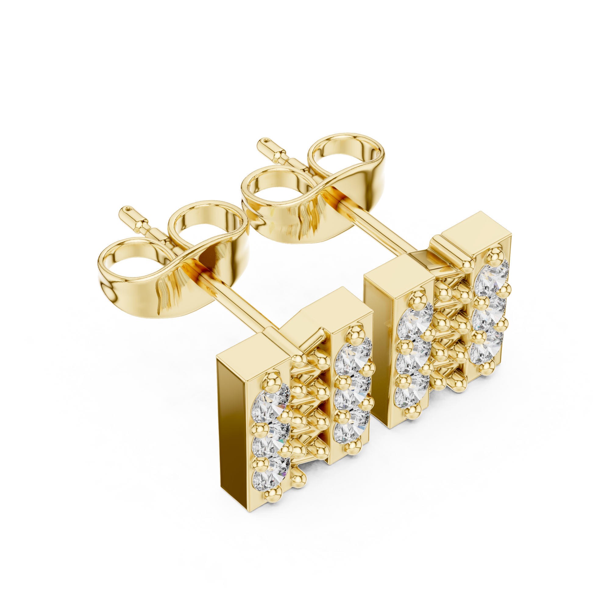 Celebrate refined craftsmanship with these floral cross diamond stud earrings, beautifully designed in radiant gold. Each earring features a symmetrical cross-inspired flower shape, accented by sculpted gold petals that surround a luminous cluster of round brilliant diamonds. The balanced design blends soft botanical curves with structured geometry, creating a look that feels elegant yet distinctive. Perfect for everyday sophistication or special occasions, these diamond studs offer timeless charm with a modern floral twist.