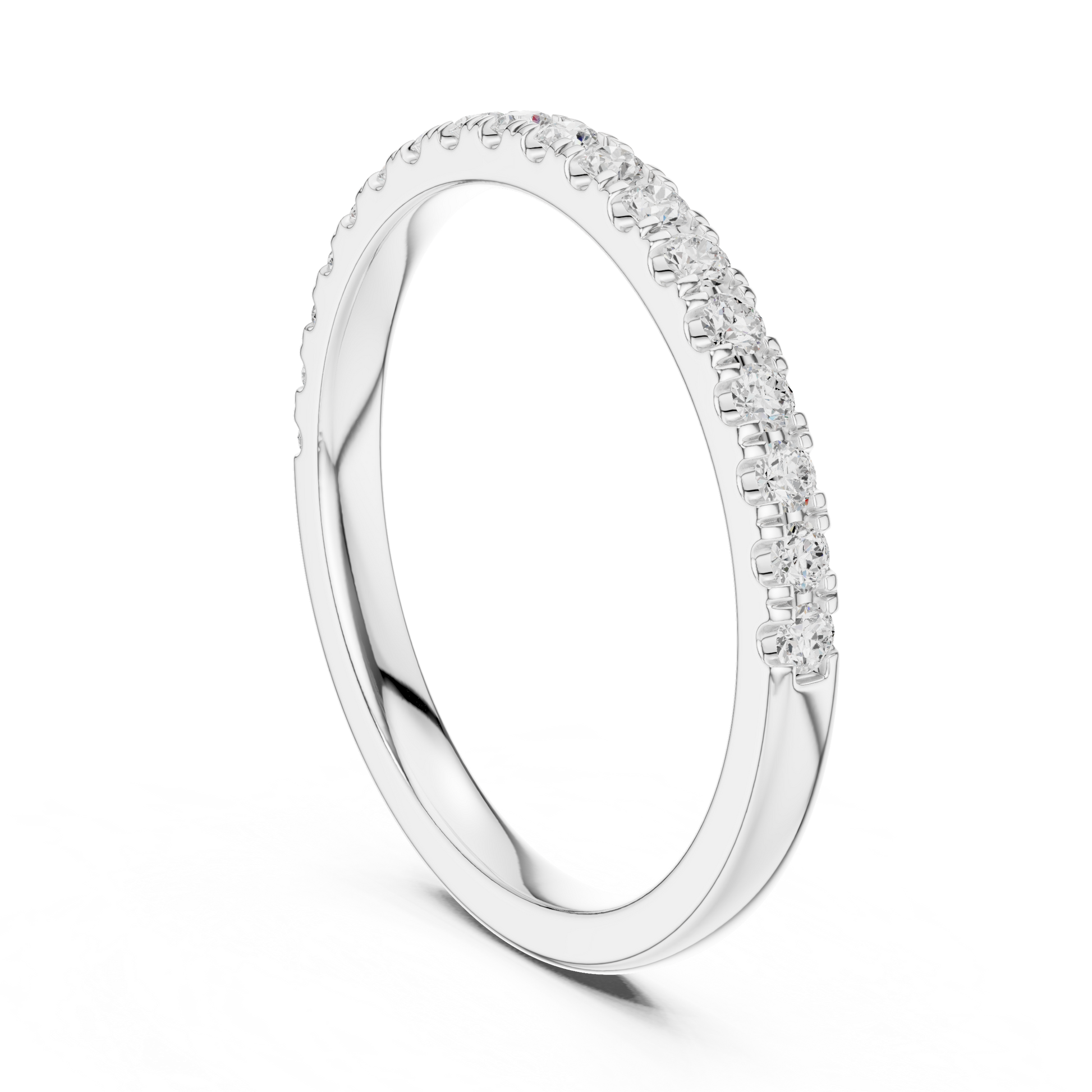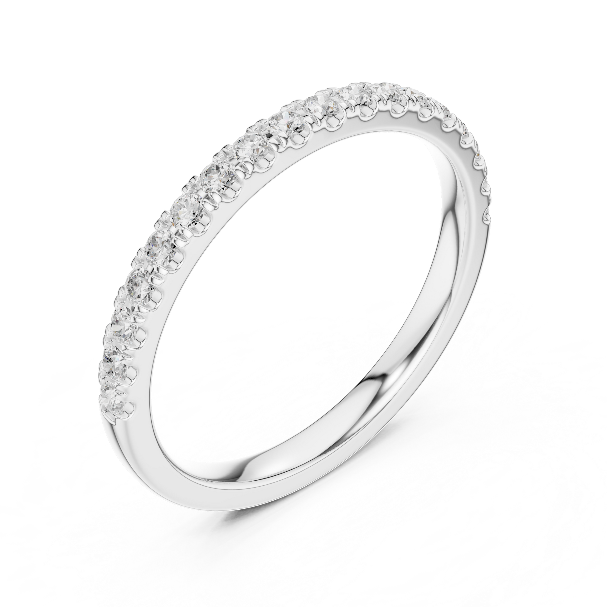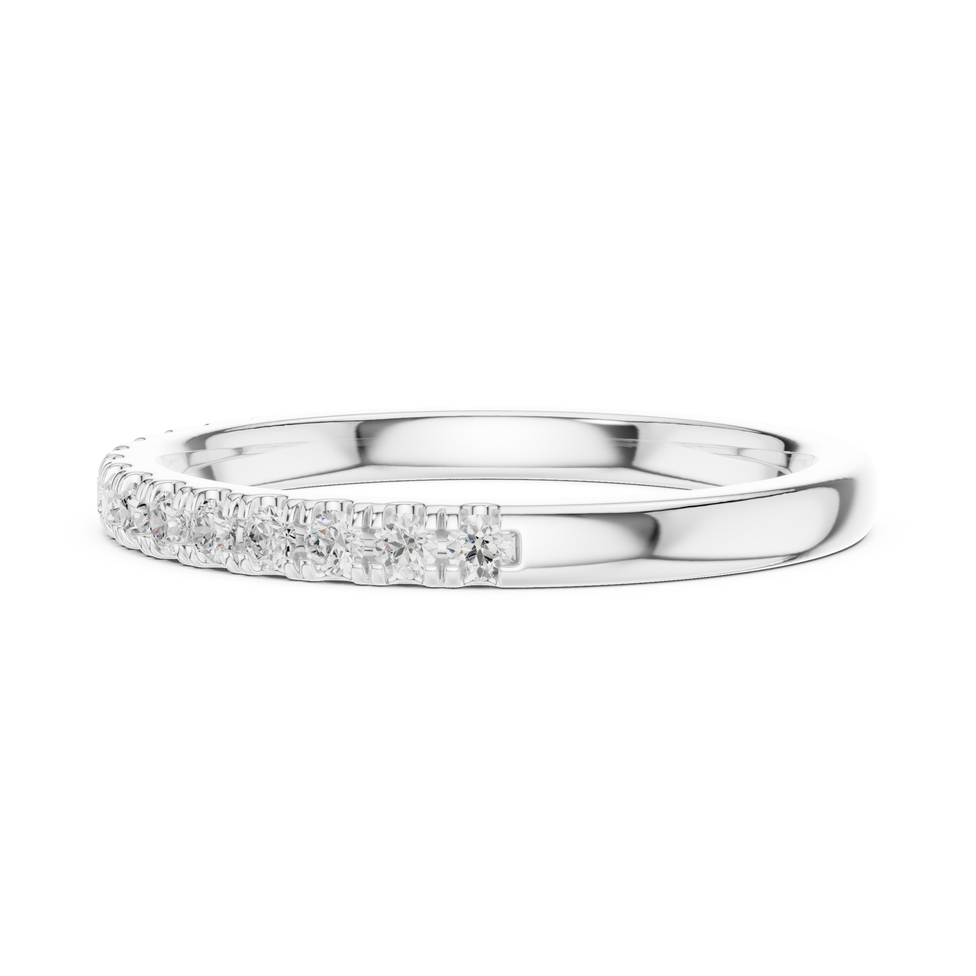 This refined band features a full circle of sparkling round-cut diamonds, each set perfectly within a sleek frame. The eternity design symbolizes unending love, while the pavé-set stones create a radiant shimmer that catches the eye from every angle. Crafted with precision and luxury, this ring serves beautifully as a wedding band, anniversary piece, or a timeless addition to any fine jewelry collection.