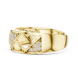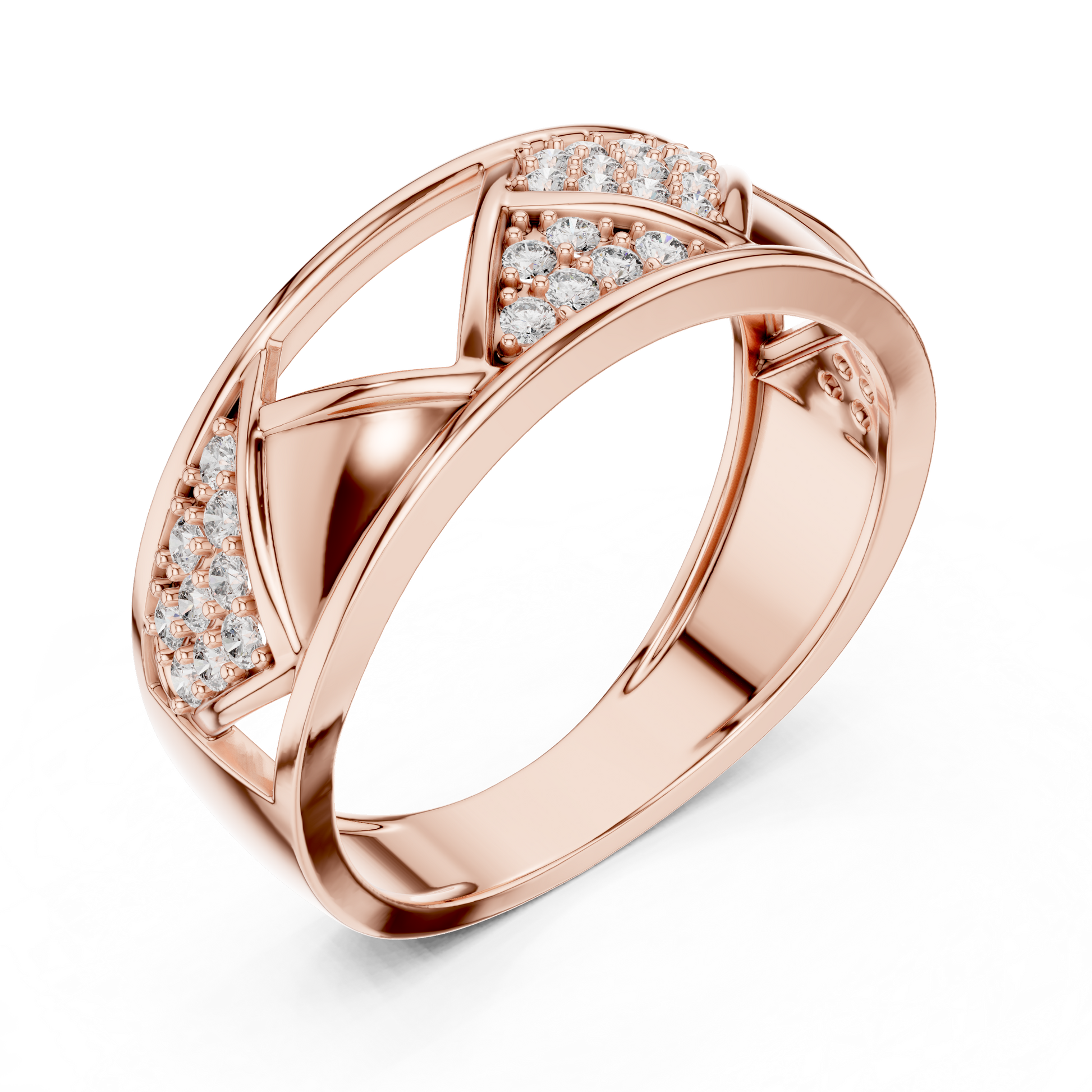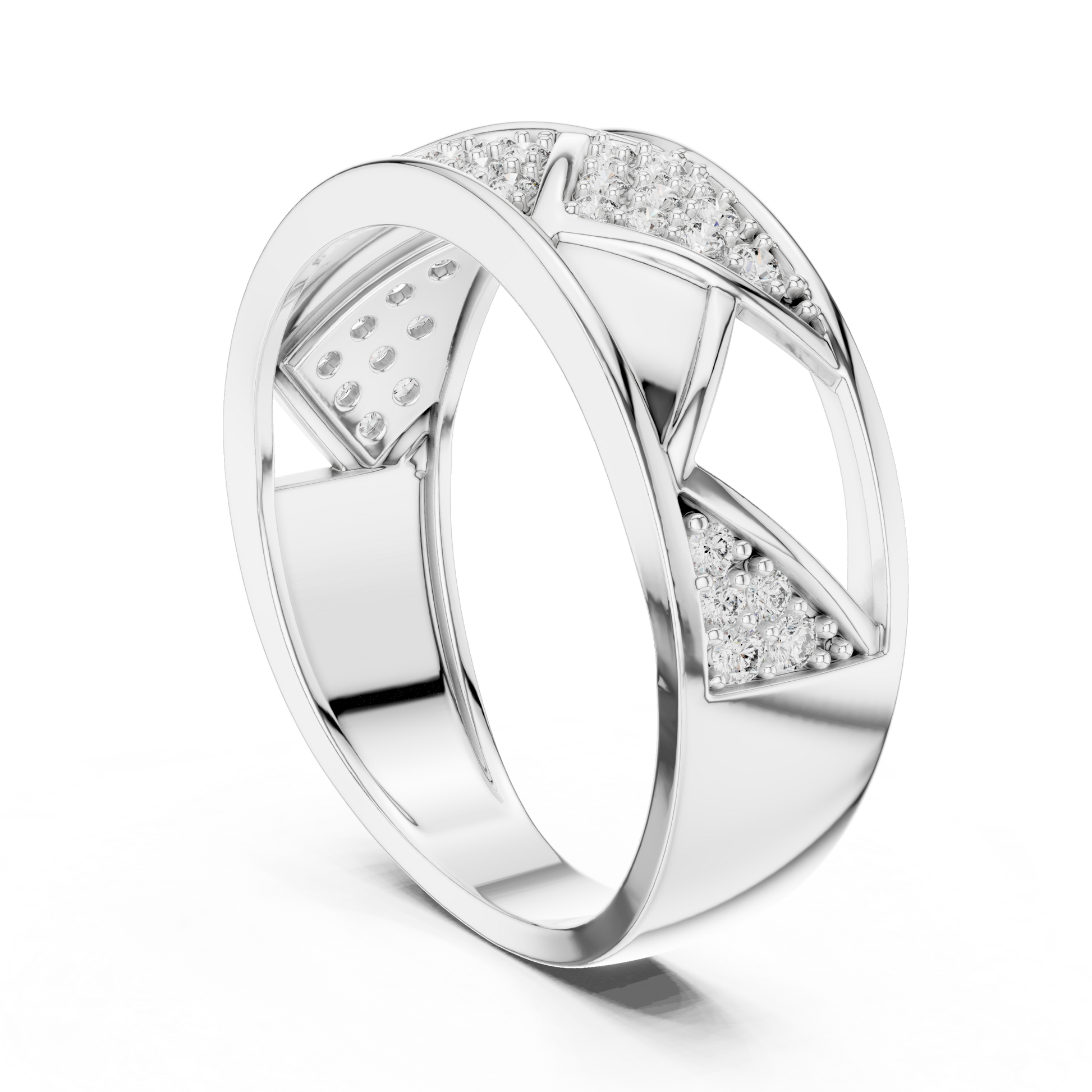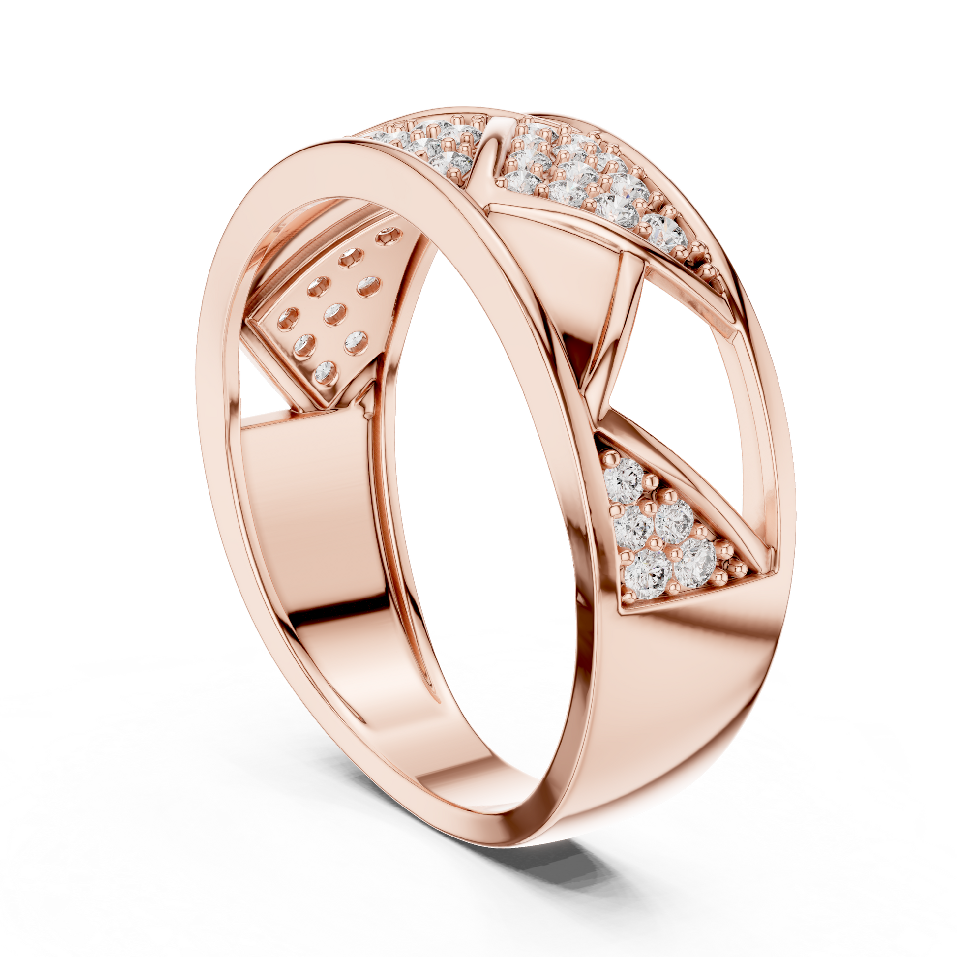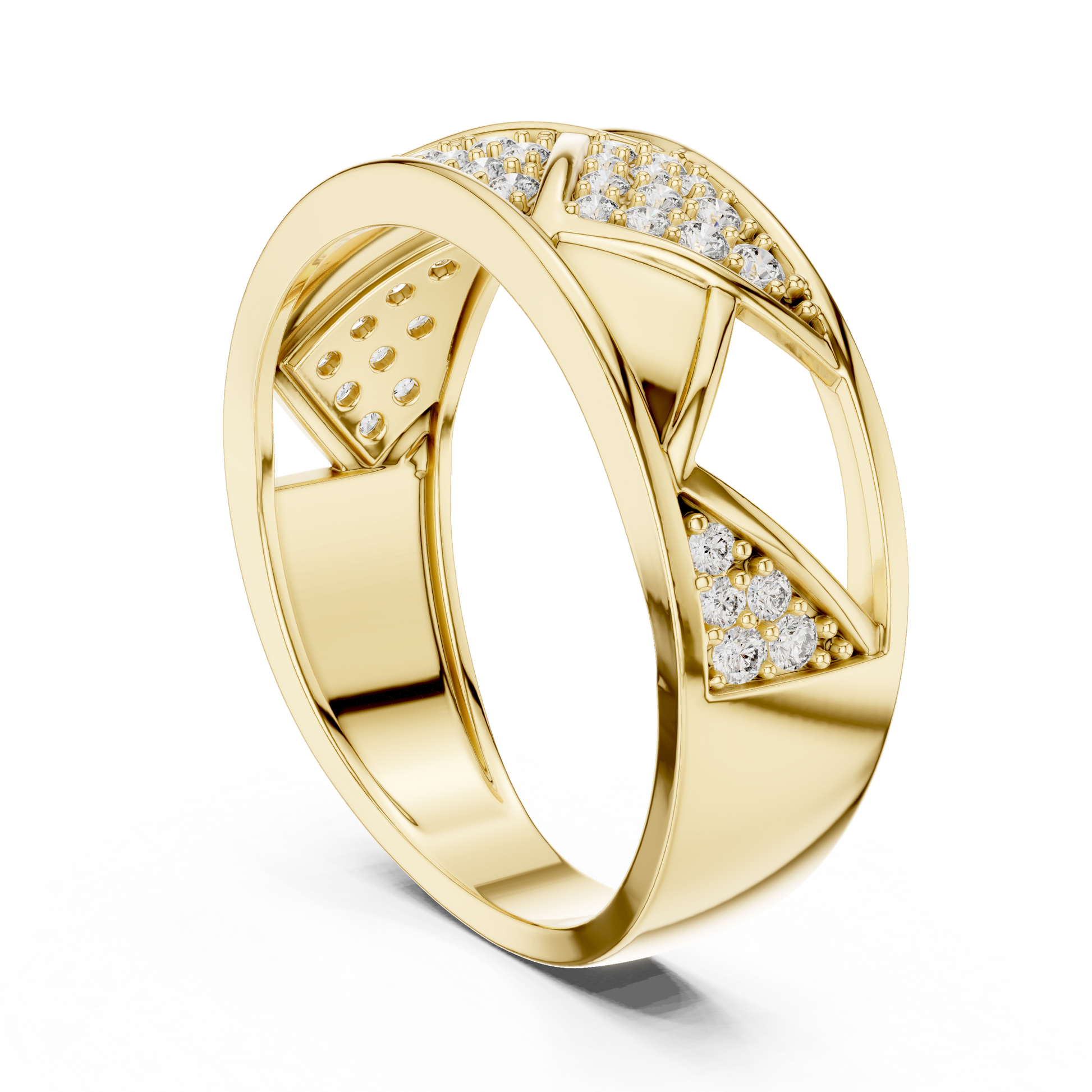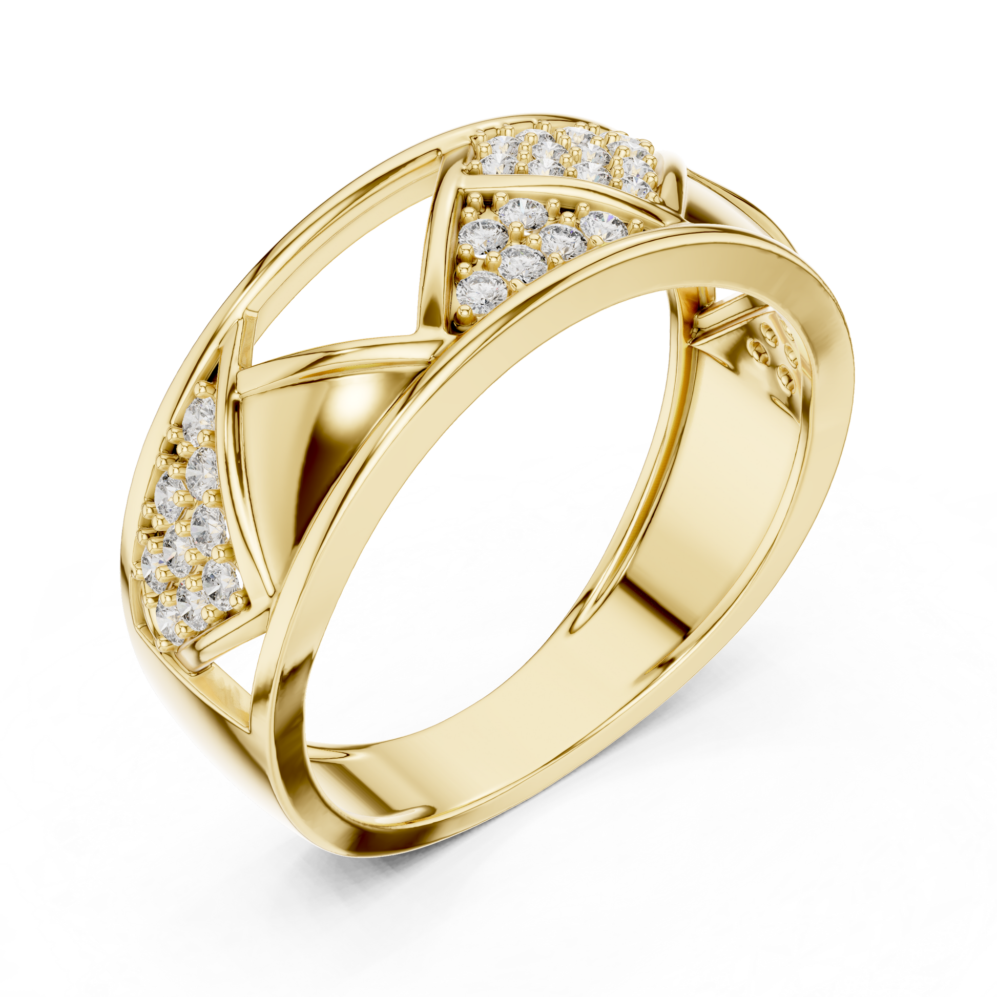 this exclusive ring from Ivevar Luxury showcases a bold architectural design that blends modern geometry with timeless brilliance. The polished gold band features striking openwork sections, beautifully accented by pave set round diamonds arranged in sleek triangular and linear patterns. Designed for those who appreciate contemporary luxury, the ring delivers both visual depth and refined comfort through its smooth inner finish.
