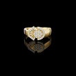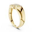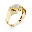 This striking statement ring from IVEVAR LUXURY features a radiant round diamond cluster center, beautifully surrounded by a shimmering pave for maximum brilliance. The design is elevated with a bold geometric split accent on one side, creating a modern asymmetrical silhouette that stands out from every angle. the wide high-polish band provides a strong, luxurious presence while ensuring a smooth and comfortable fit.