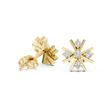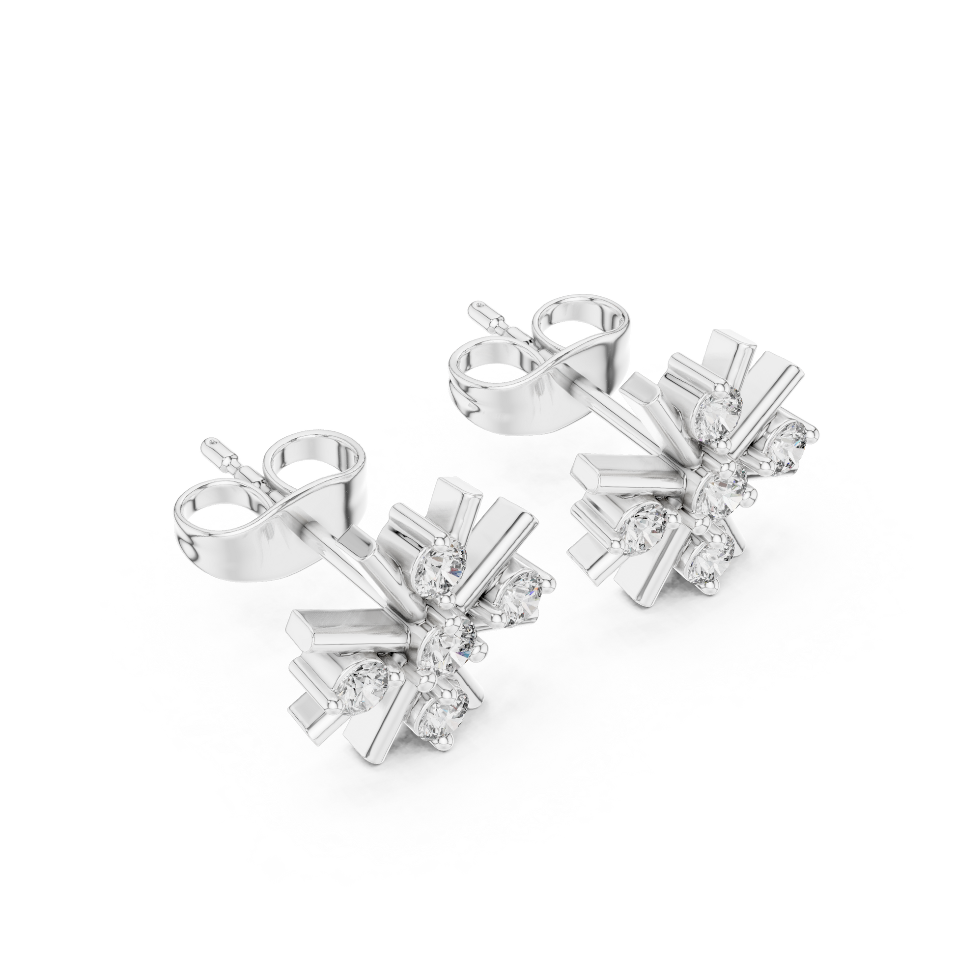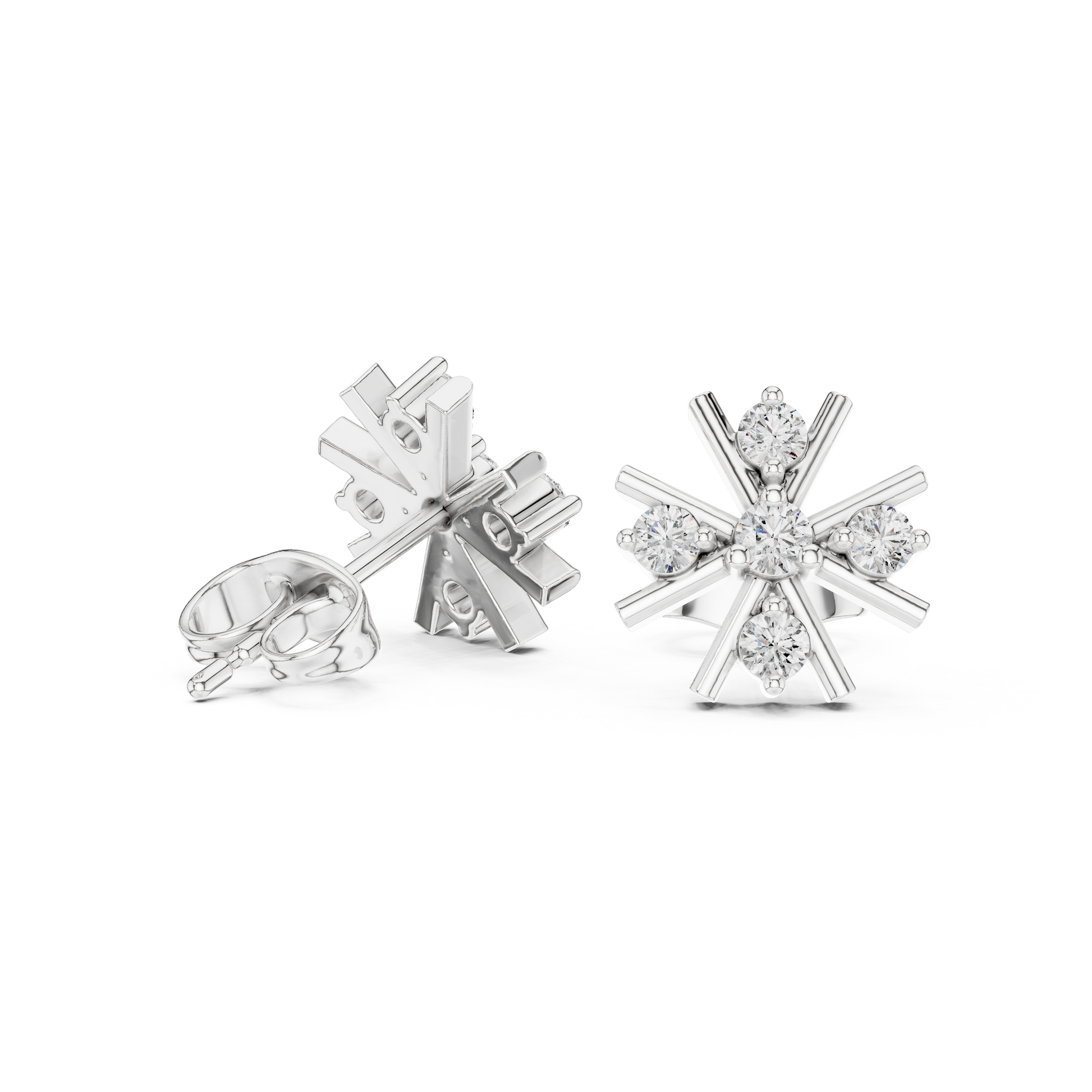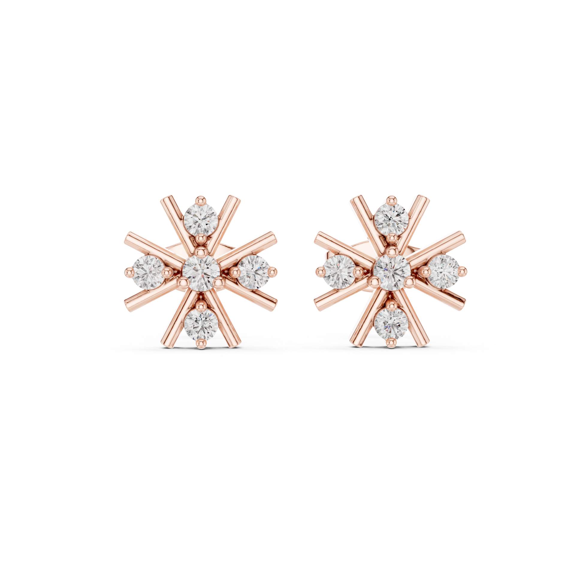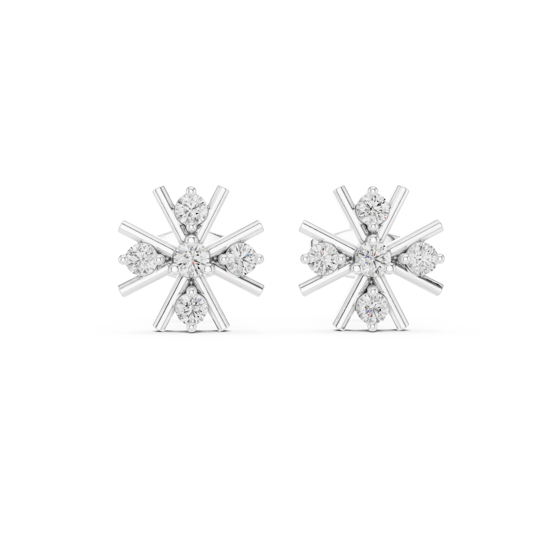 These modern starburst diamond stud earrings are crafted in polished gold, featuring a striking geometric design that radiates brilliance. A central round diamond is surrounded by precisely placed accent diamonds, framed by sleek gold beams that create a bold yet refined starburst effect. Lightweight and versatile, these earrings offer a perfect balance of contemporary style and timeless elegance, making them ideal for everyday wear, gifting, or layering with other fine jewelry pieces.