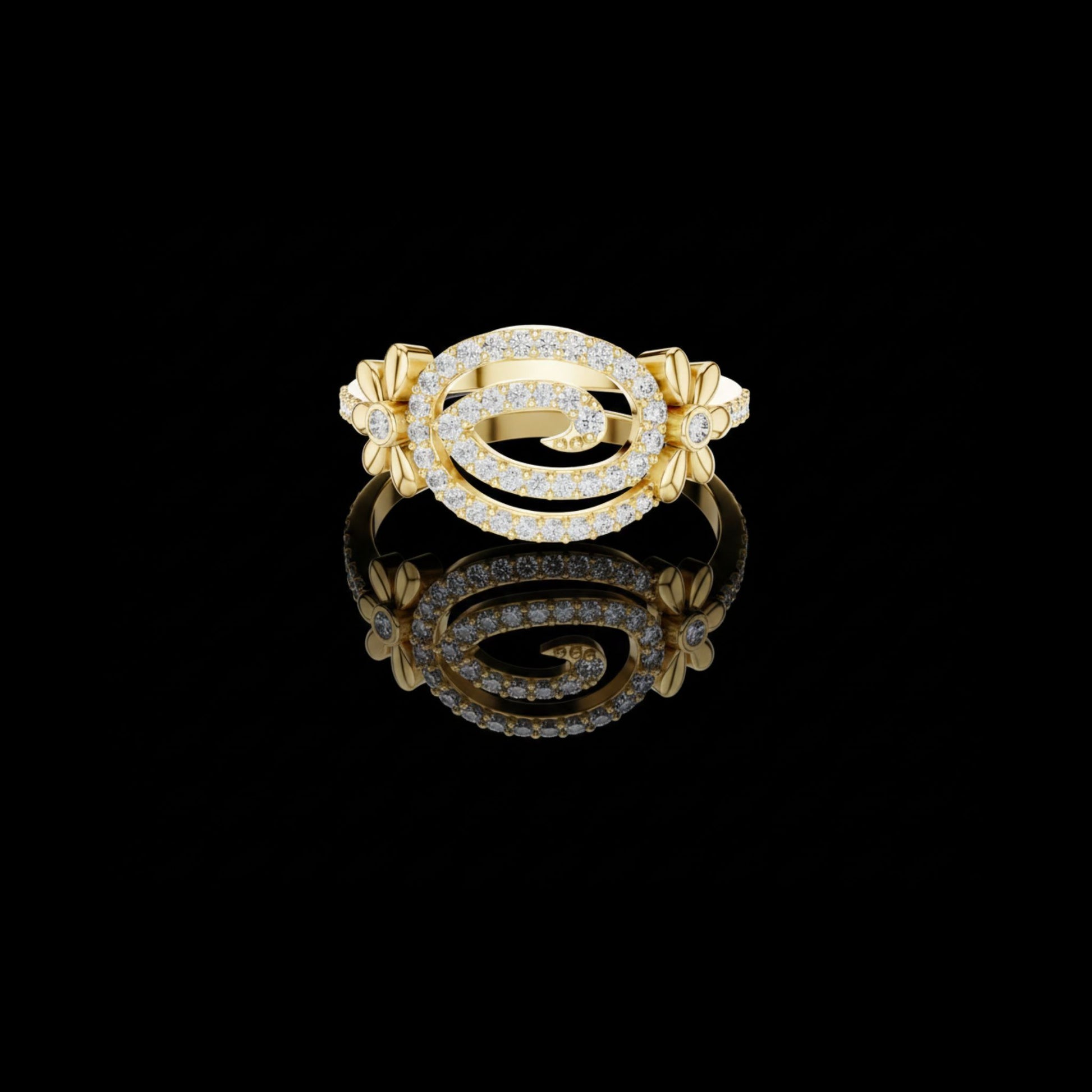 Celebrate timeless elegance with this luxury gold diamond ring, featuring a captivating spiral centerpiece that symbolizes eternity, continuity, and grace. The spiral is beautifully highlighted with pavé-set diamonds, creating a radiant flow of sparkle that draws the eye instantly. Delicate floral gold motifs on both sides add a touch of romantic charm and royal detailing, Designed for women who love refined luxury with artistic expression, this ring embodies elegance without limits.