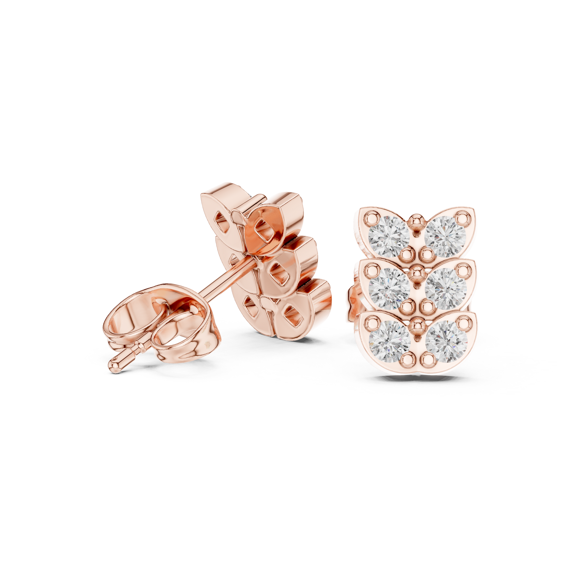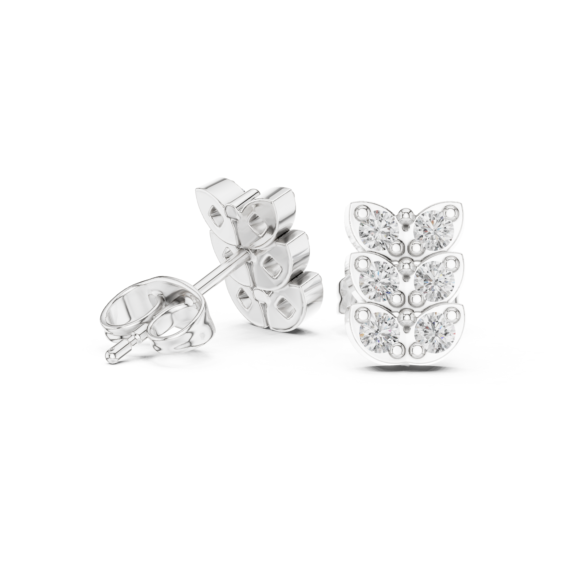 Delicate yet striking, these stacked butterfly diamond stud earrings are crafted in luminous  to create a distinctive layered silhouette. Featuring three gracefully aligned butterfly-inspired motifs, each adorned with round brilliant-cut diamonds, the design delivers a harmonious blend of playful elegance and modern structure. The polished gold detailing enhances depth while allowing the diamonds to shine with captivating brilliance.