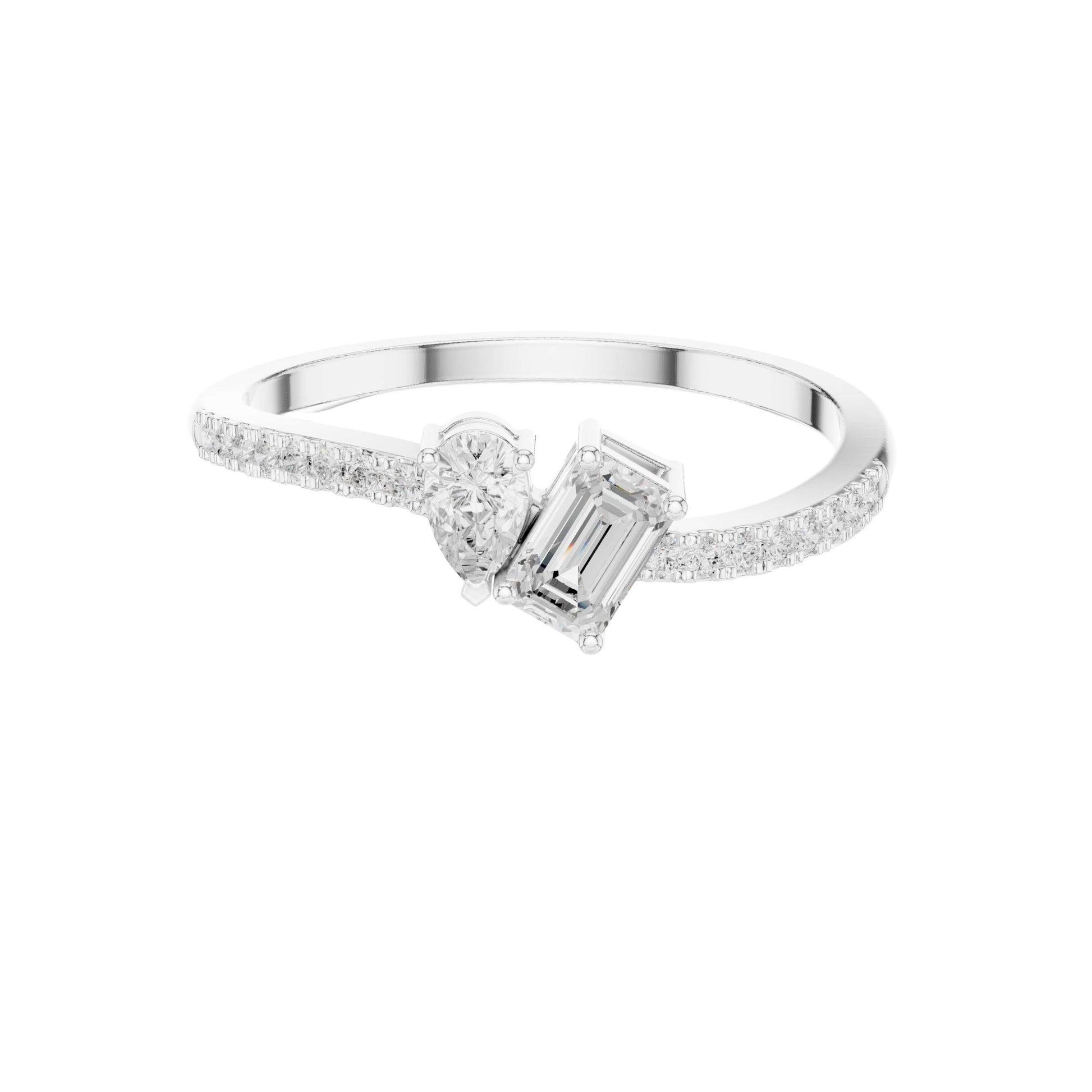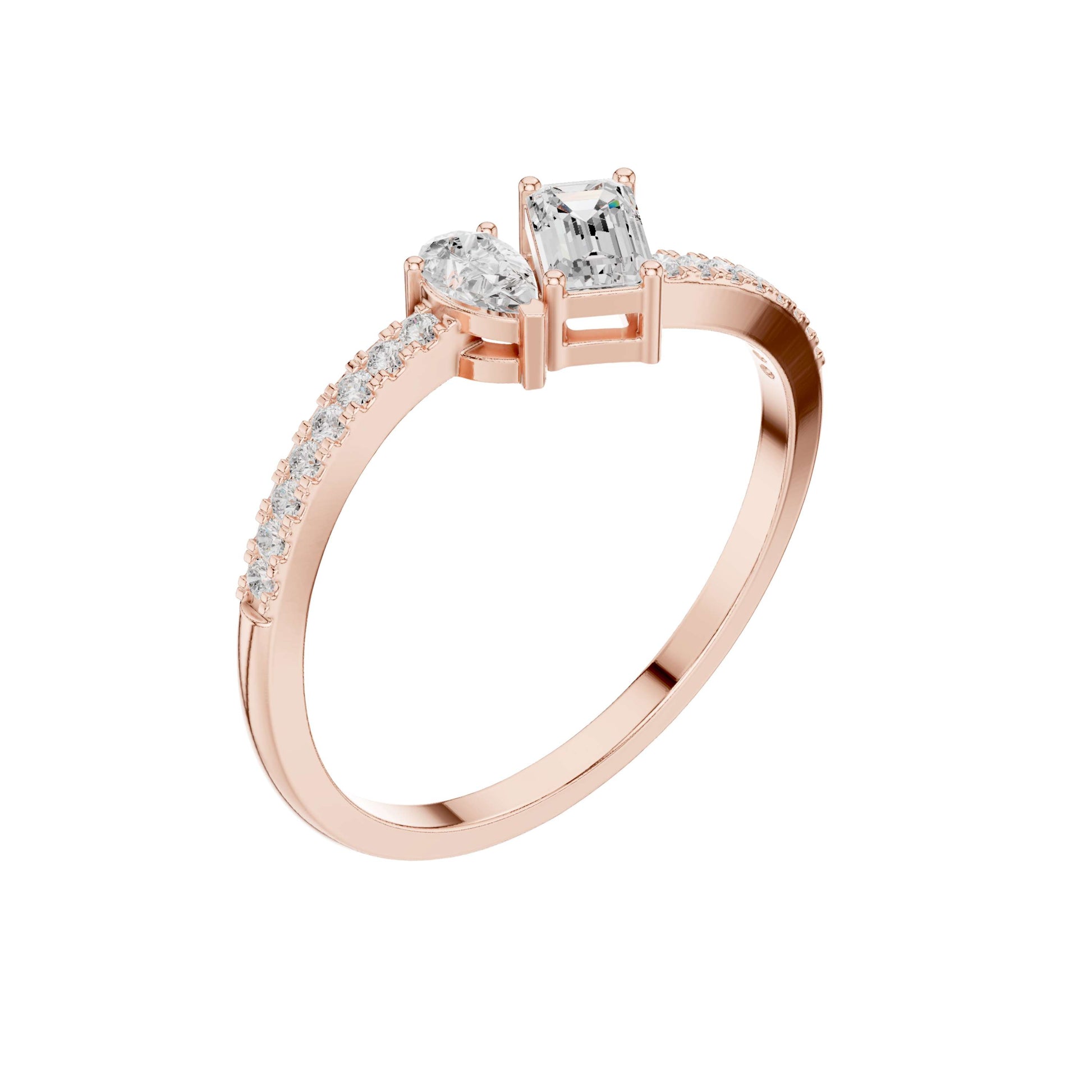 0.34 TCW Exclusive Toi et Moi Lab Grown Ring with Pear Cut and Emerald Cut Diamonds