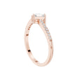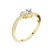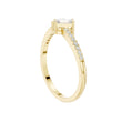 This refined Toi et Moi ring showcases a striking pairing of a pear-cut diamond and a sleek emerald-cut diamond, symbolizing two paths beautifully joined as one. Set in warm gold, the slim band is adorned with delicate pave diamonds that add continuous sparkle without overpowering the center stones. The balanced contrast between the soft curves of the pear shape and the clean lines of the emerald cut creates a modern yet timeless design, perfect as an engagement ring or a meaningful statement of connection and love.