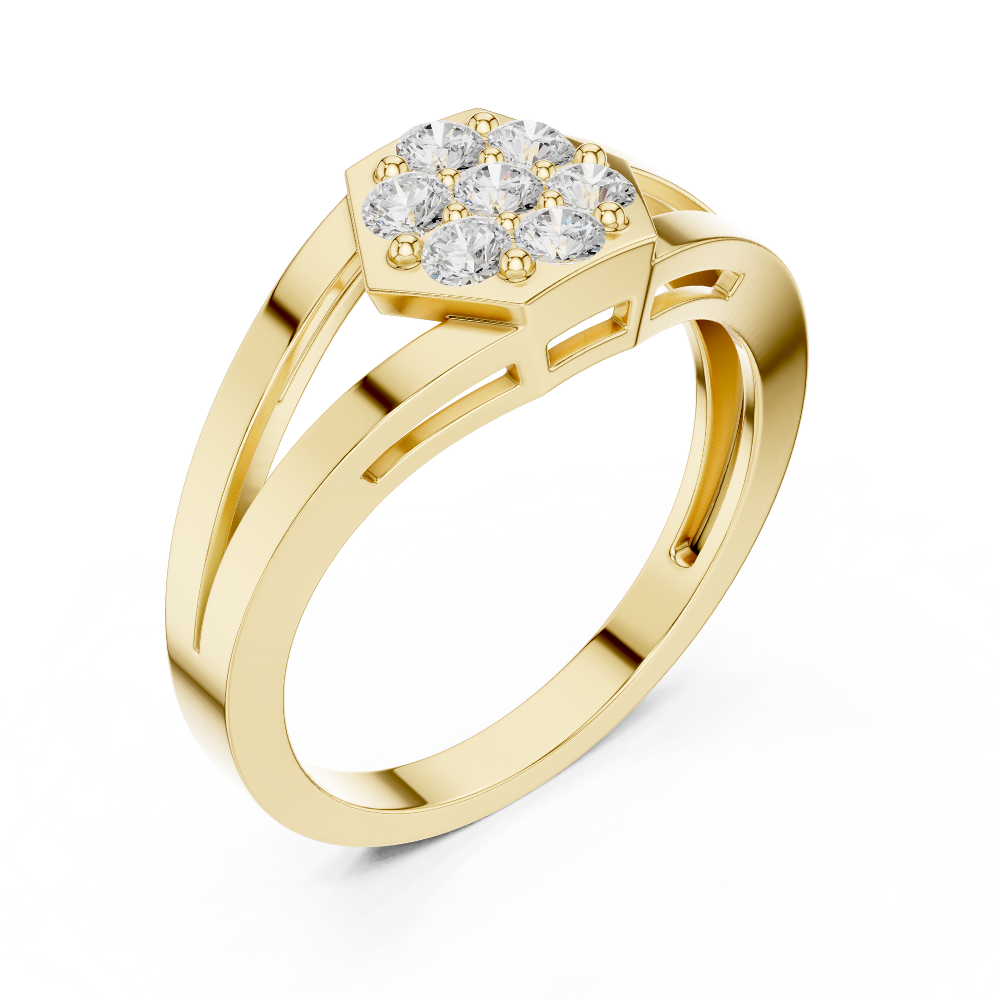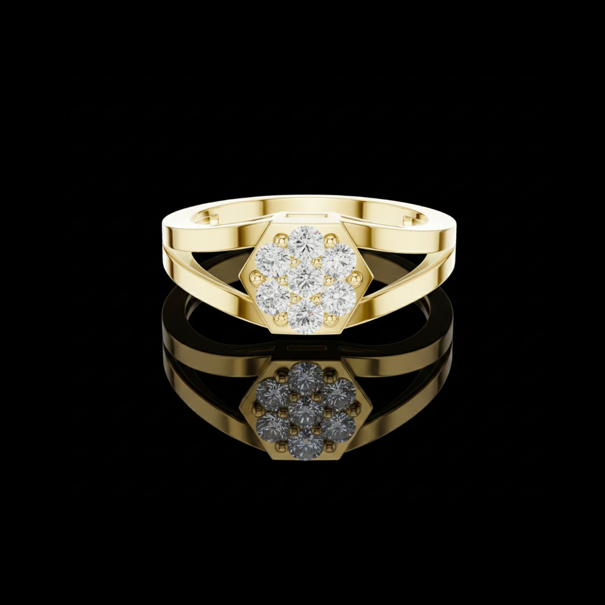 This striking men’s diamond ring showcases a bold hexagon-shaped cluster of brilliant round diamonds, creating a powerful and eye-catching sparkle. Crafted in lustrous yellow gold, the ring features a sleek design that enhances its modern, masculine appeal. Perfect as a fashion statement, special gift, or symbolic celebration piece, this ring blends strength, style, and sophistication in one distinctive design.